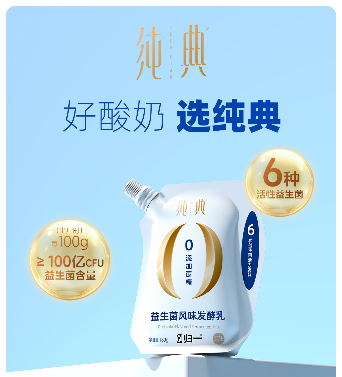 【预售】归一纯典益生菌风味发酵乳低温酸奶180g*12袋原味【7天内发货】