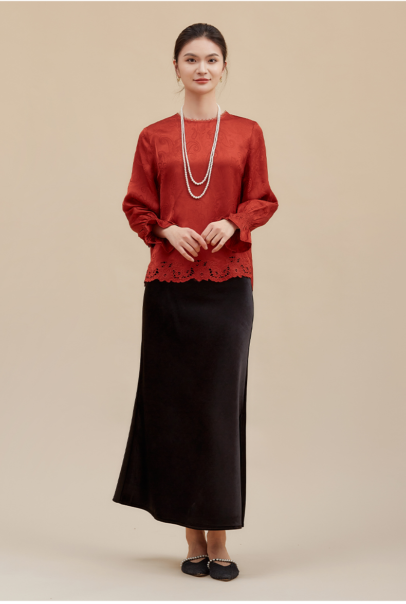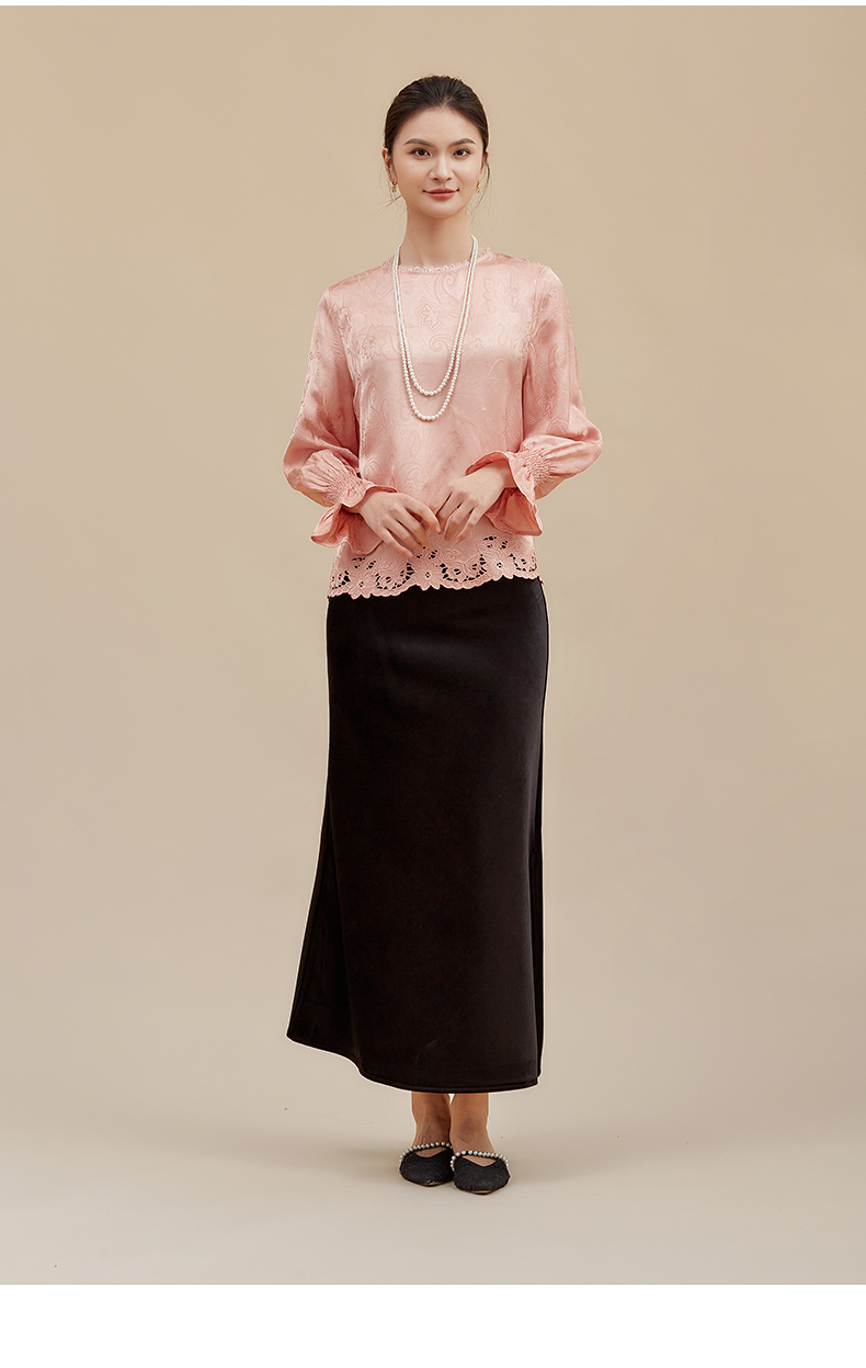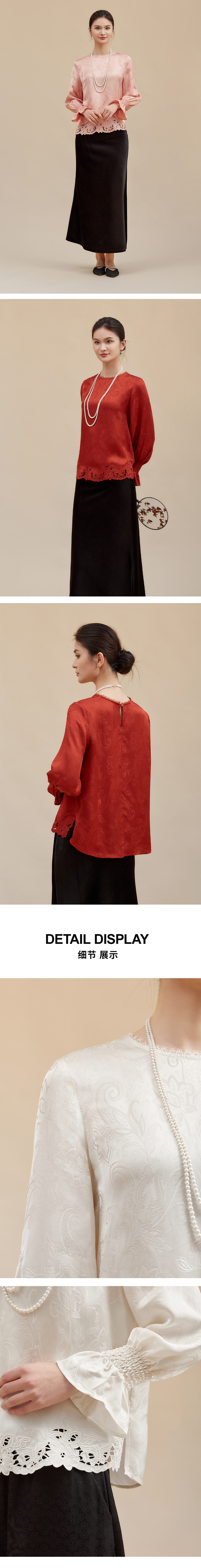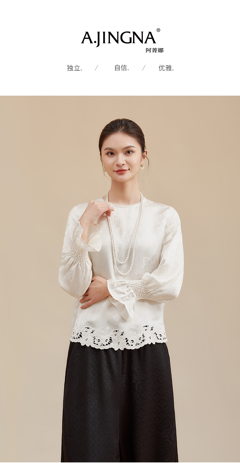 【佩斯利纹蕾丝】阿菁娜冬季新款新中式提花上衣佩斯利纹蕾丝拼接轻奢通勤设计复古显贵内搭F30D202003