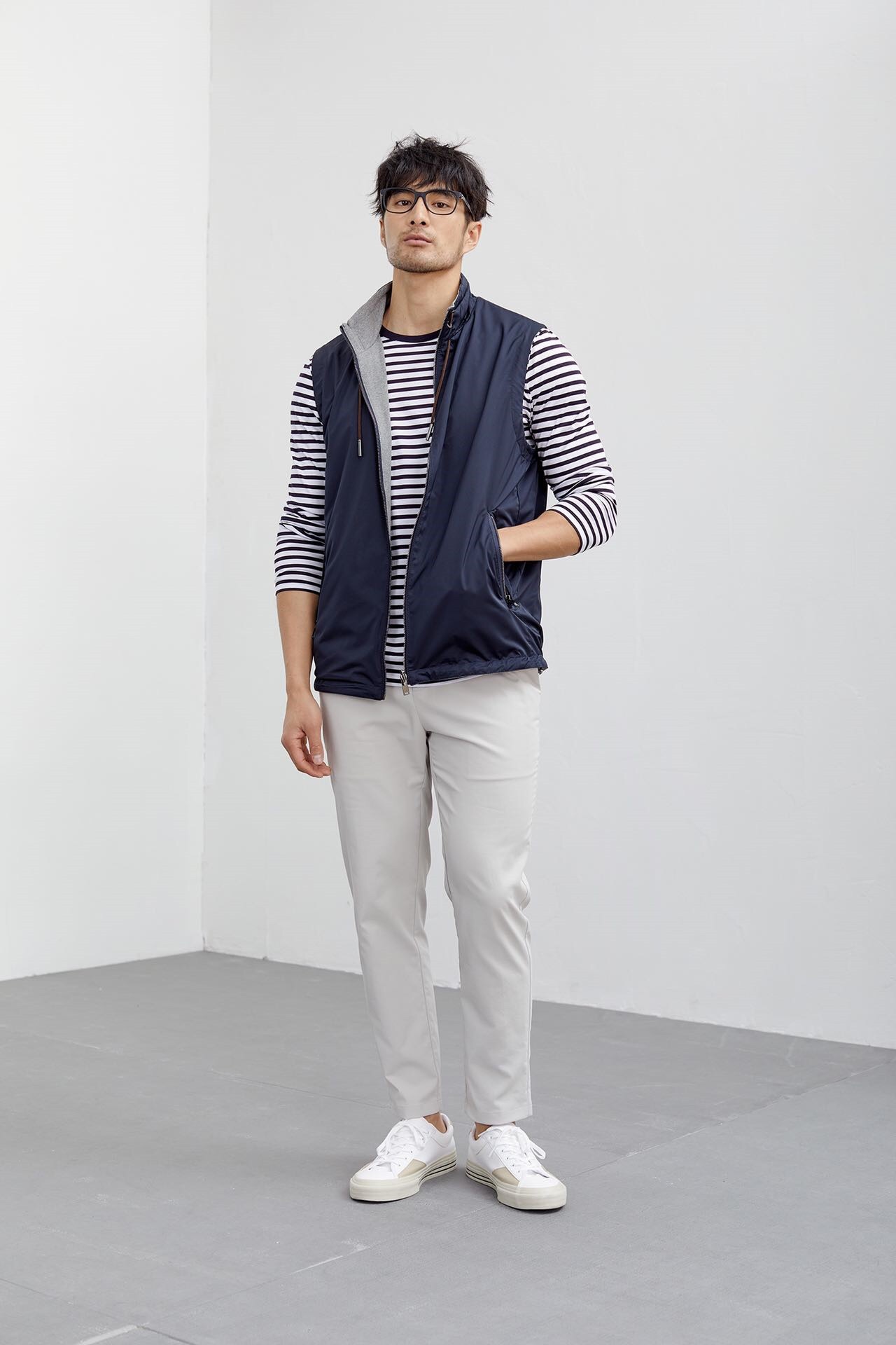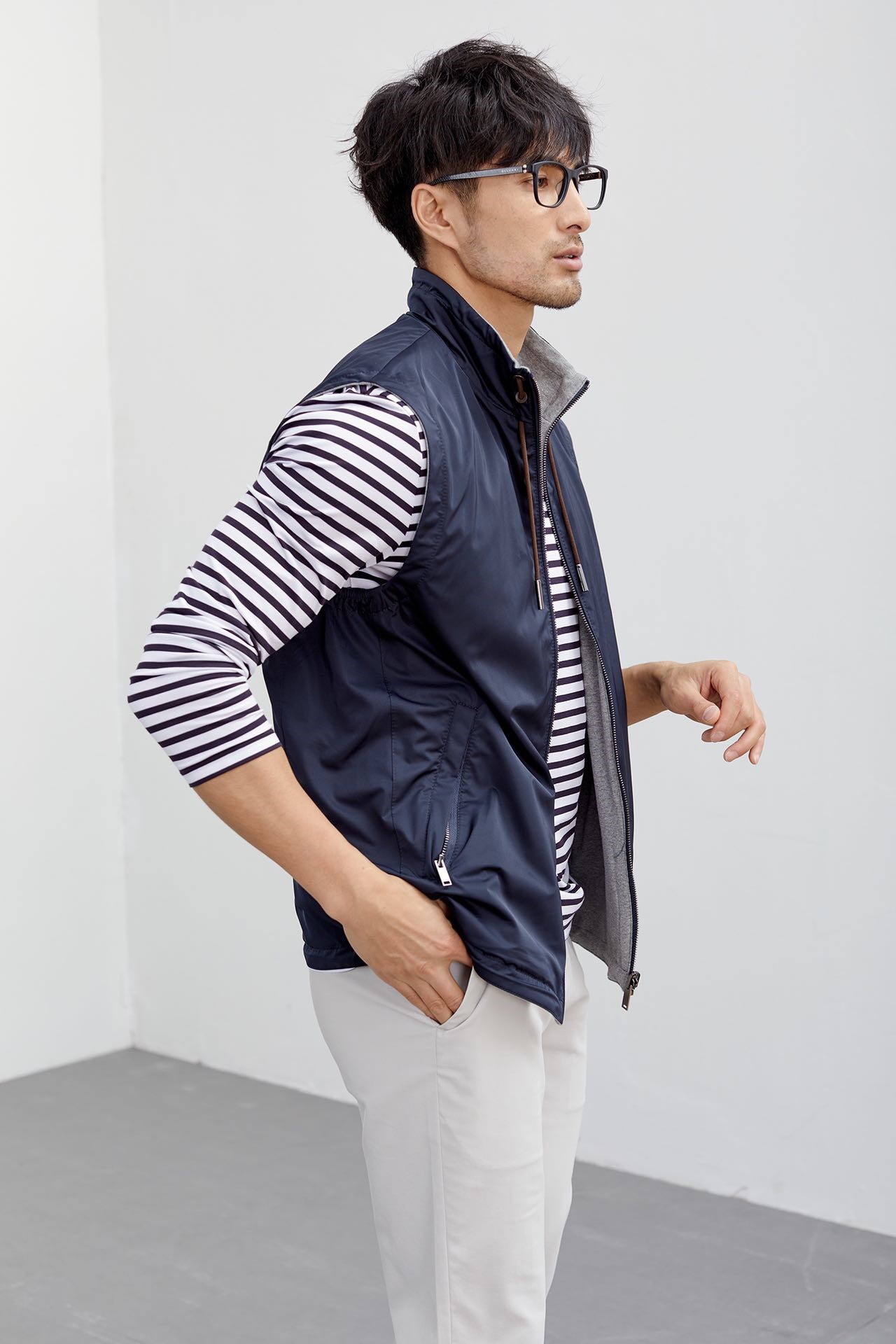 6. 下摆隐藏式弹簧抽绳,可收缩可装饰。