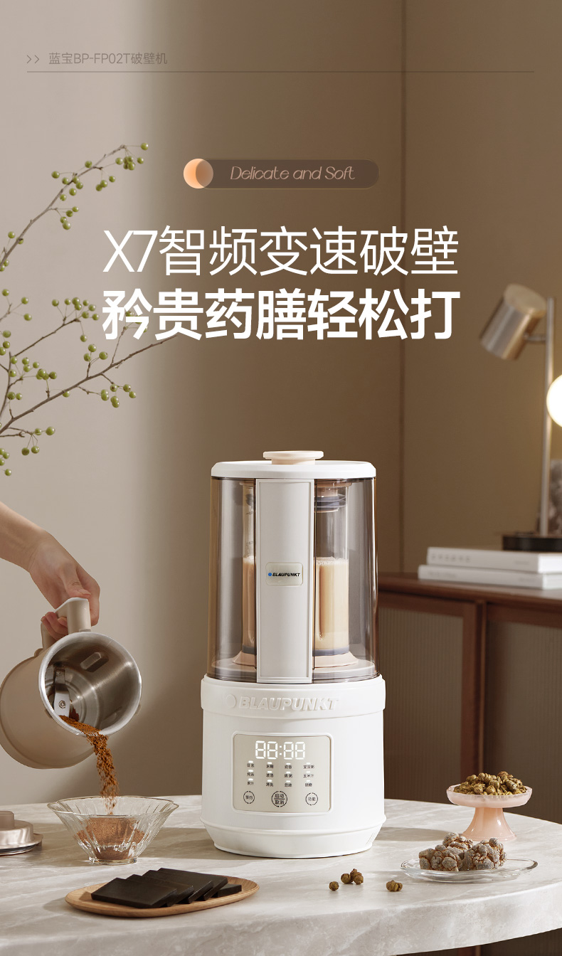 德国蓝宝柔音破壁机家用全自动豆浆机静低噪音无渣BP-FP02T