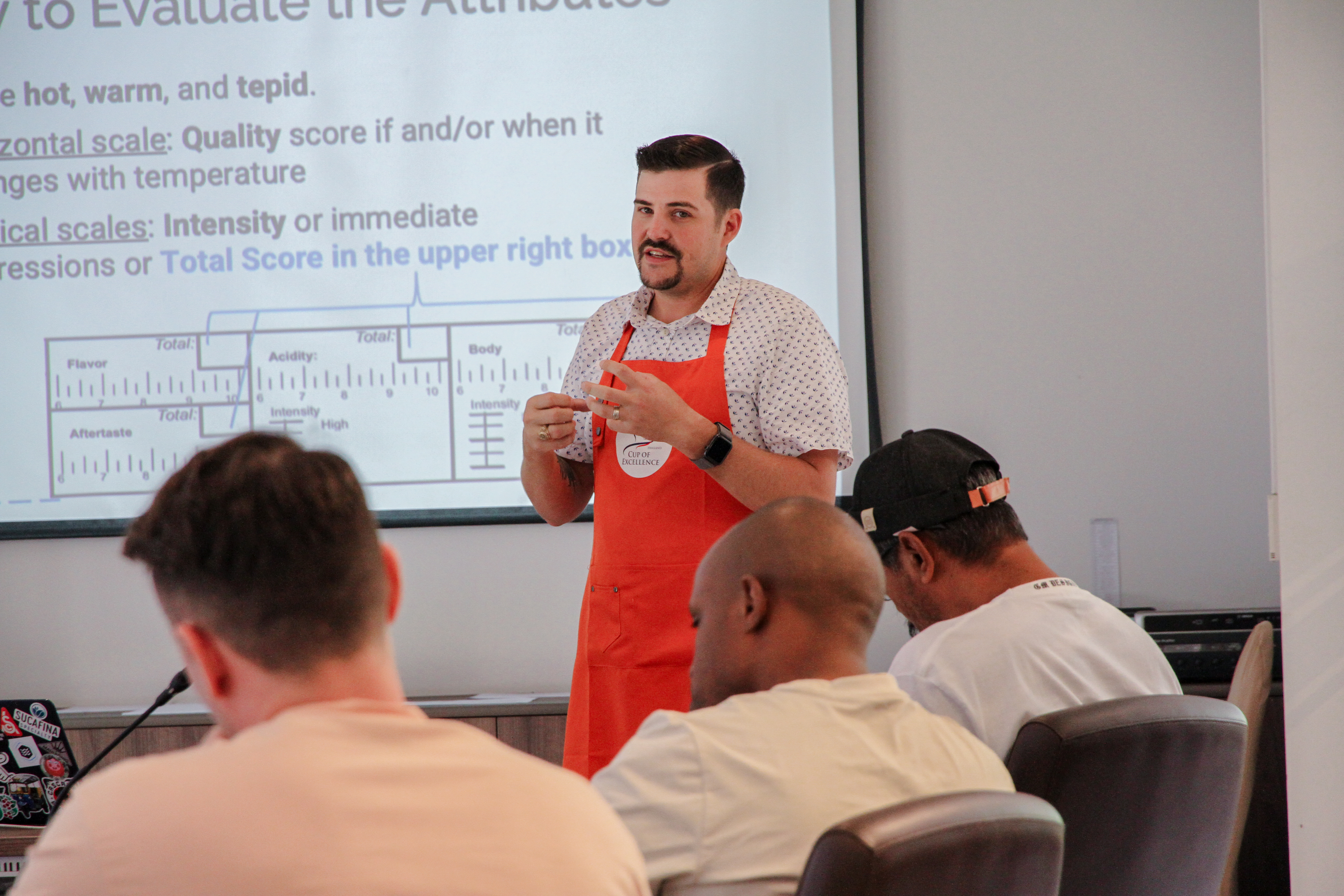 Q-Grader 首先需要参与者掌握足够扎实的杯测逻辑和实操能力。你会经历 4 轮大杯测和 4 组三角杯测,分别对 2 个特定产区和 2 种特定处理法的咖啡豆进行品鉴。你将在 CQI 导师指导下,逐一完成不同项目训练和考核。