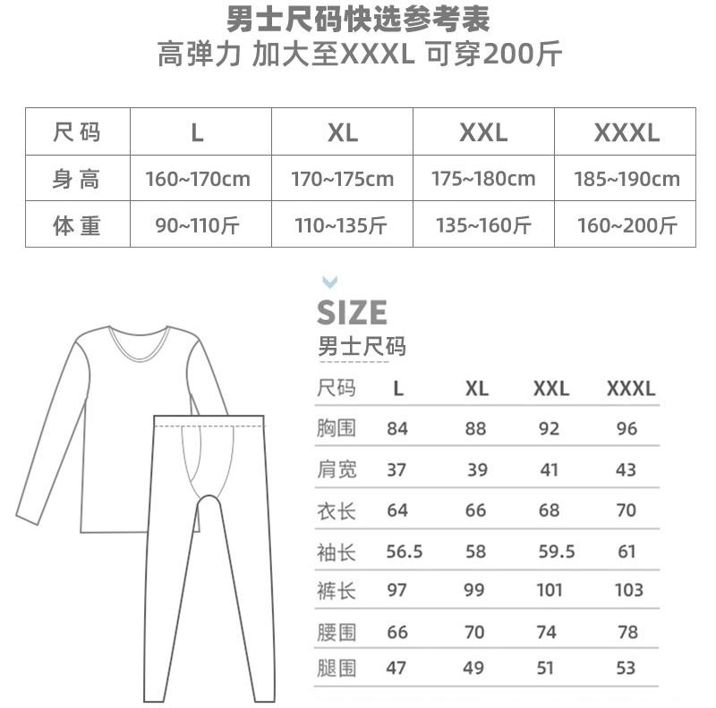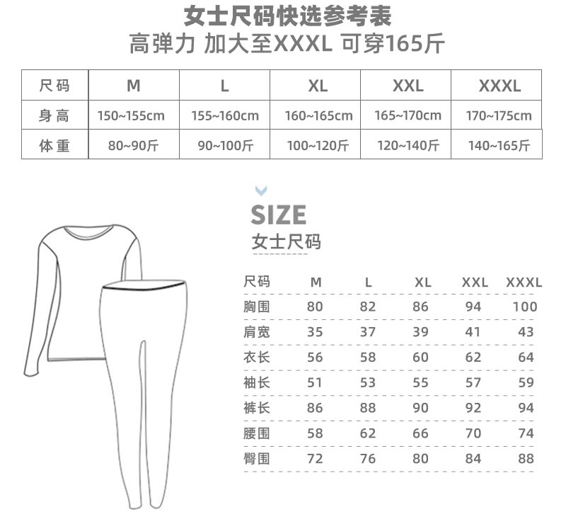 【女黑XL1XXL1男紫灰L1】炫彩养肤绒发热套装(女)S214270649女/S214270749男