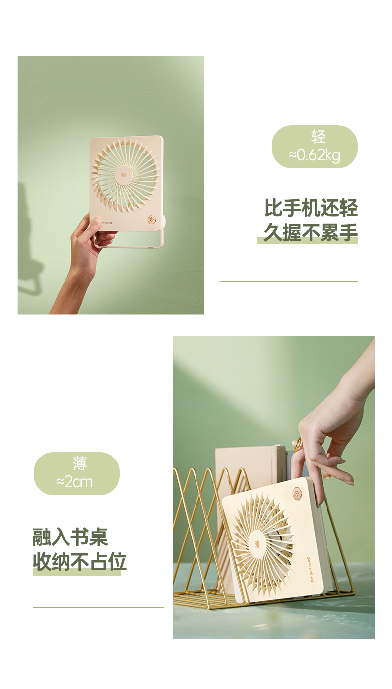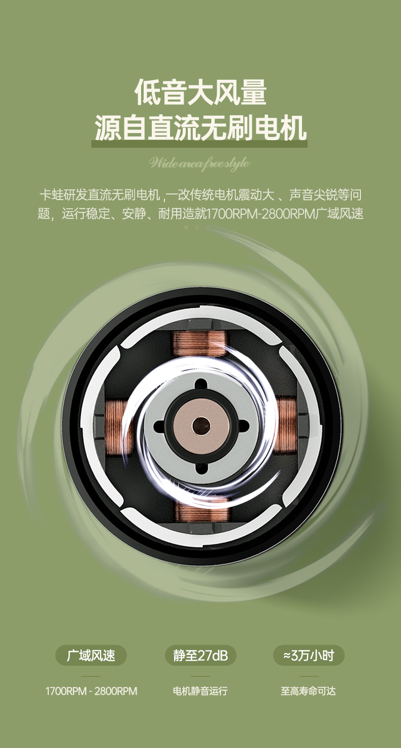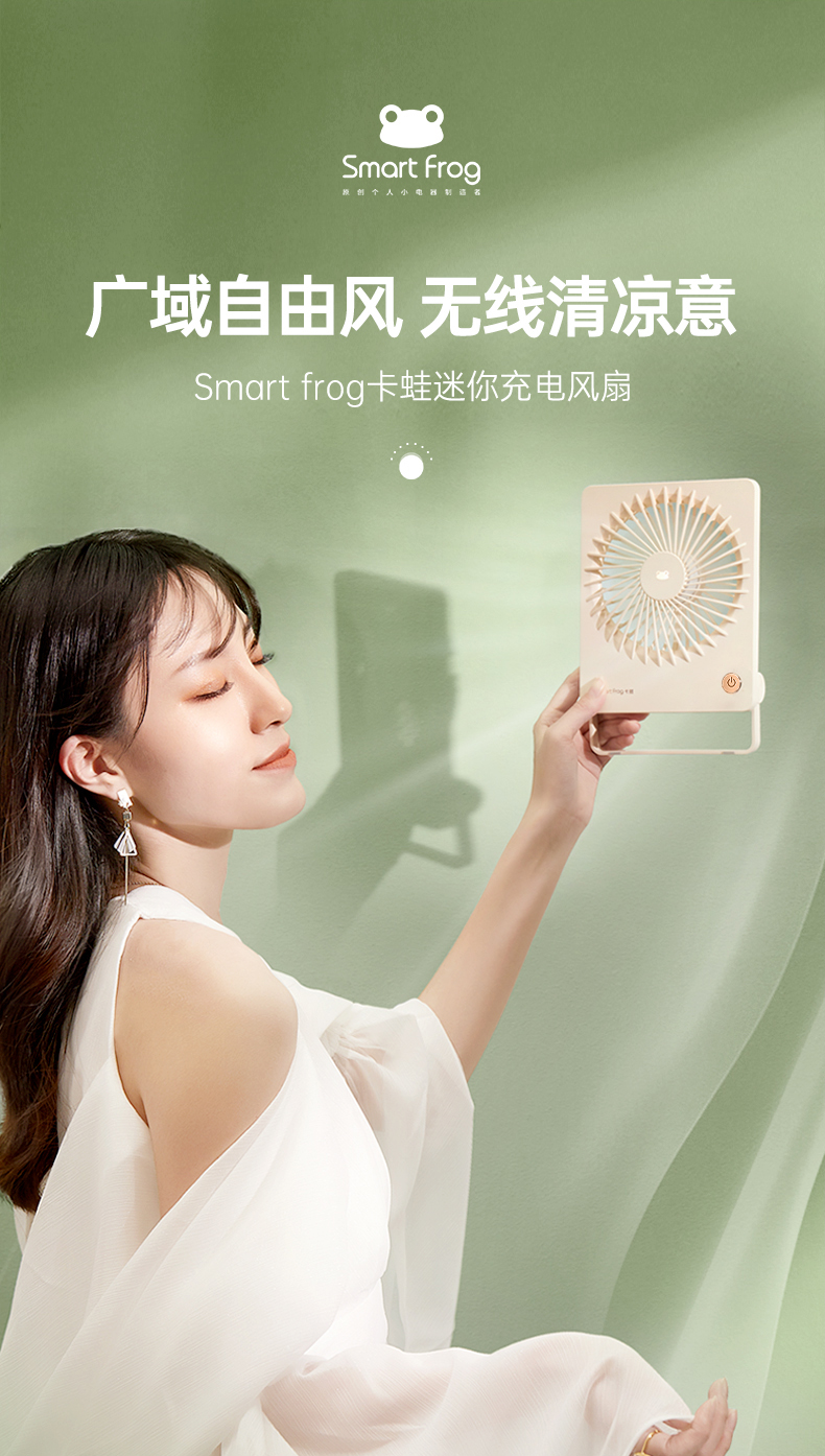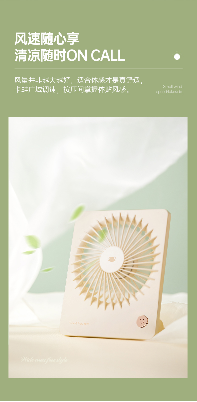 【德国红点设计大奖】卡蛙无极风桌面风扇 挂立两用 可106°自由旋转 迷你轻薄 自然柔风 3档可选 持久续航