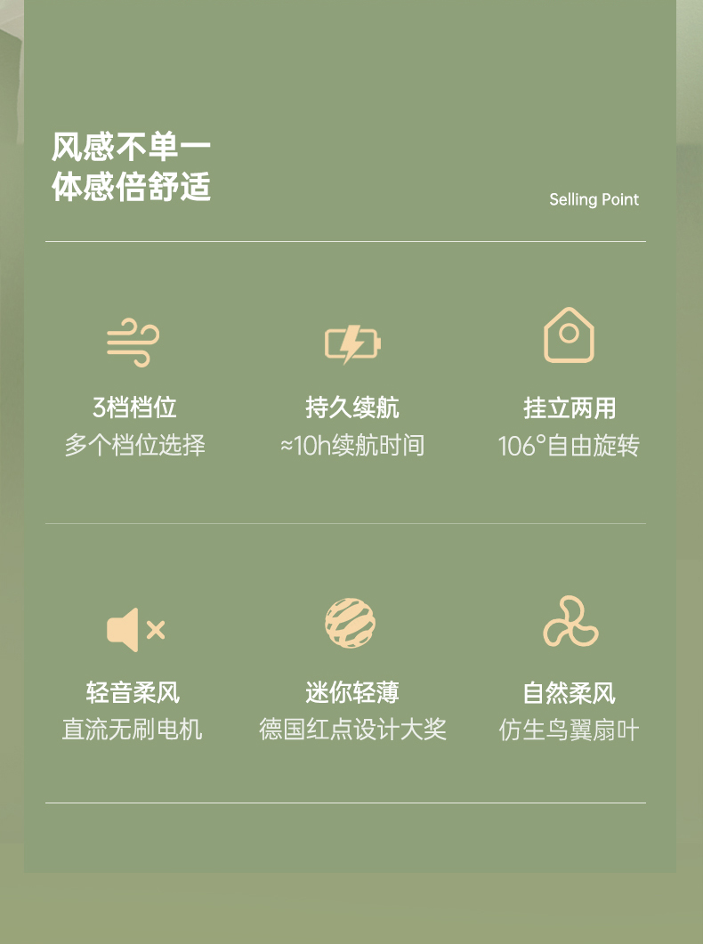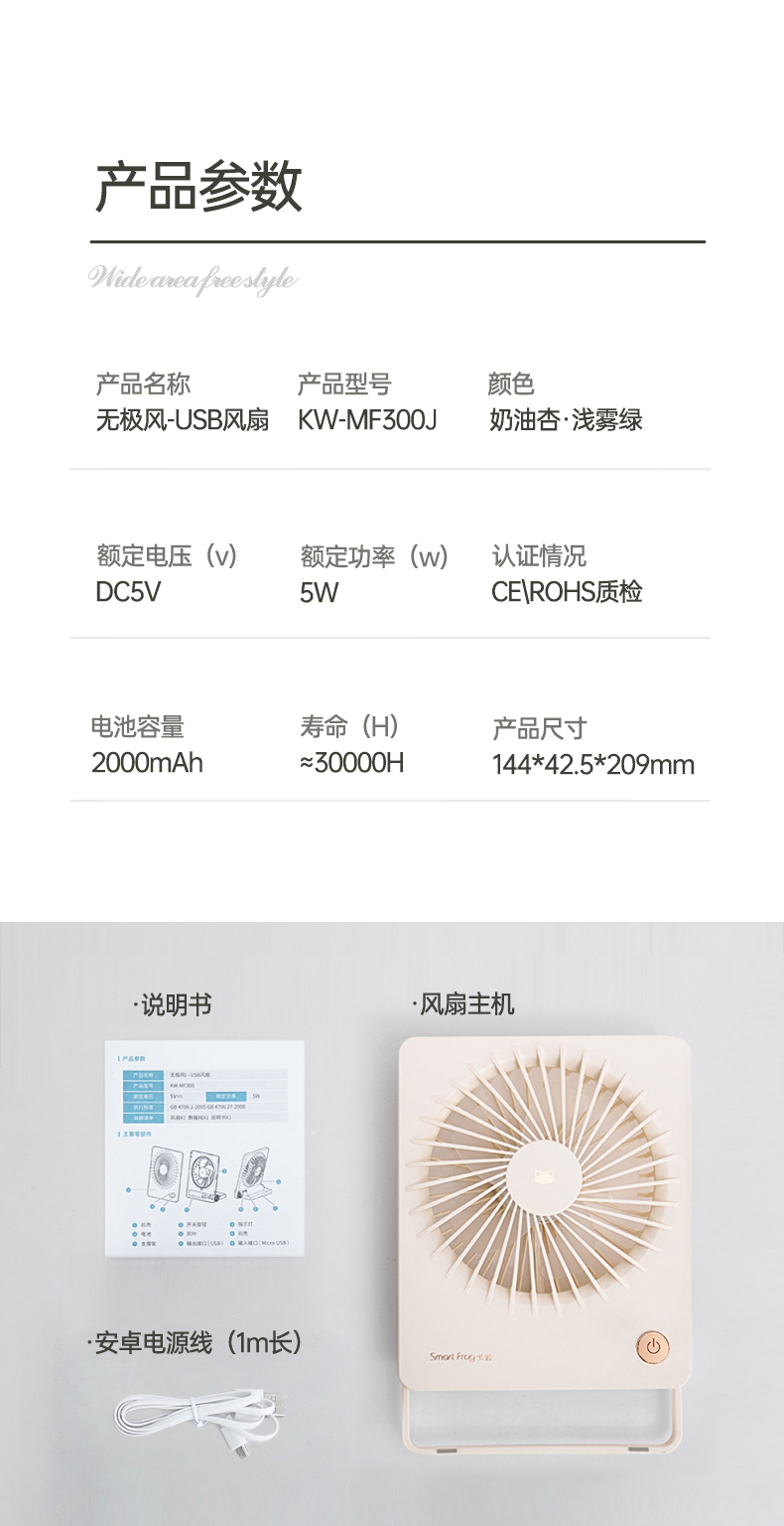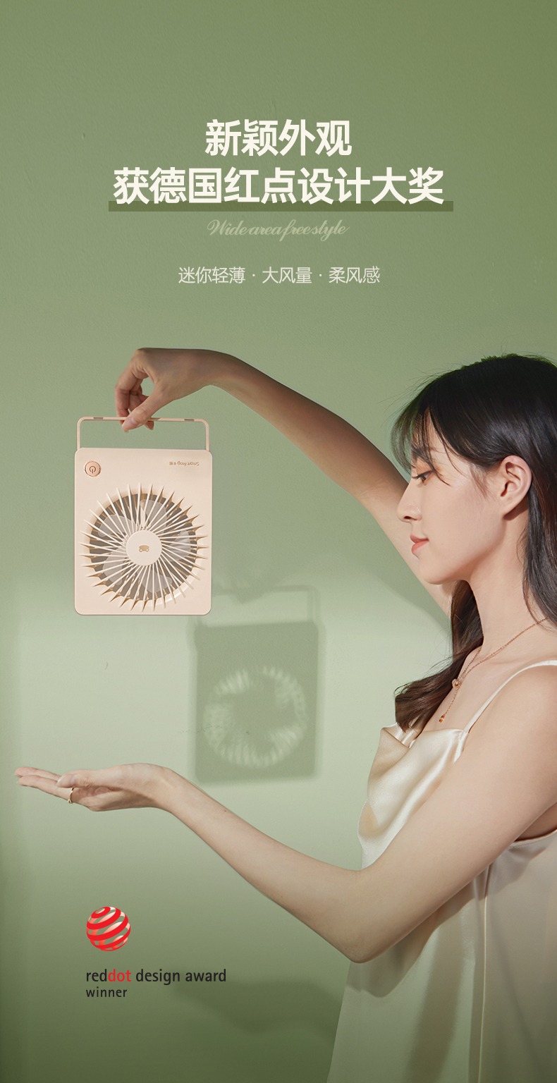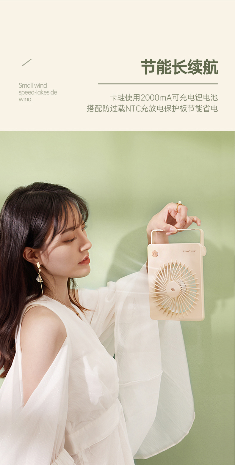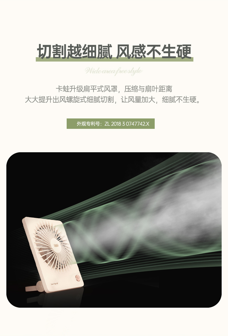 【德国红点设计大奖】卡蛙无极风桌面风扇 挂立两用 可106°自由旋转 迷你轻薄 自然柔风 3档可选 持久续航
