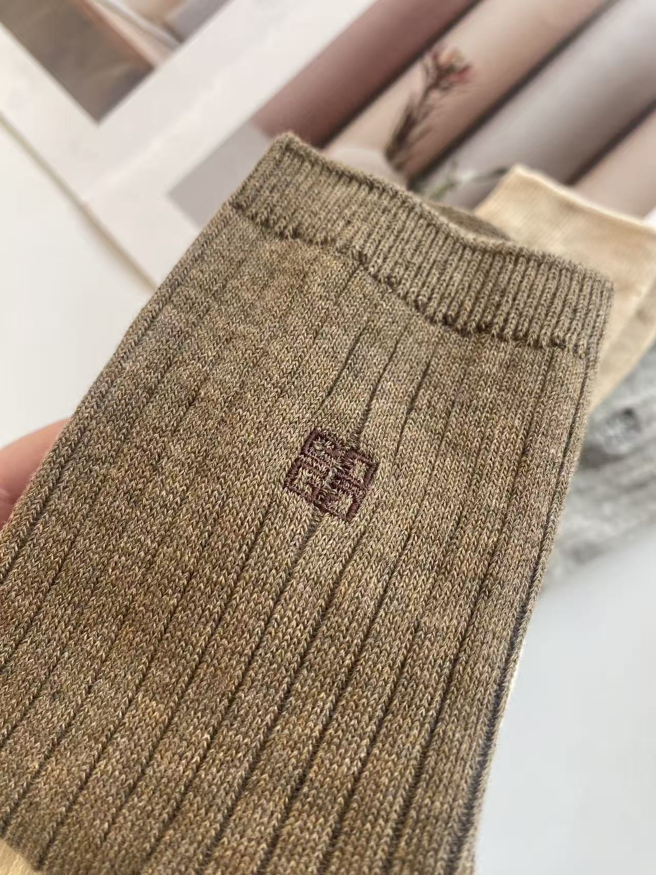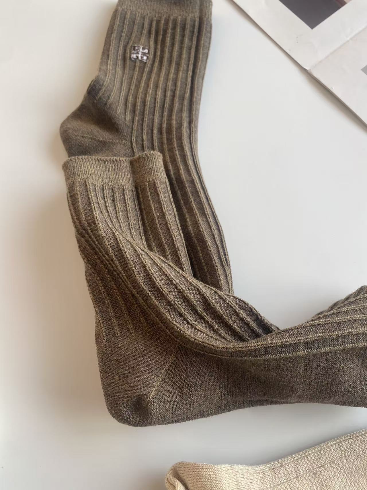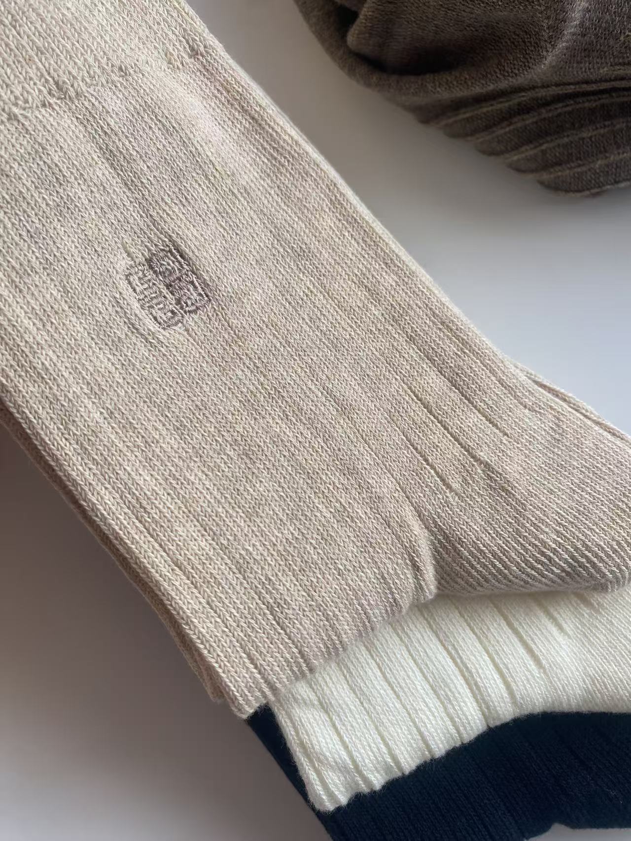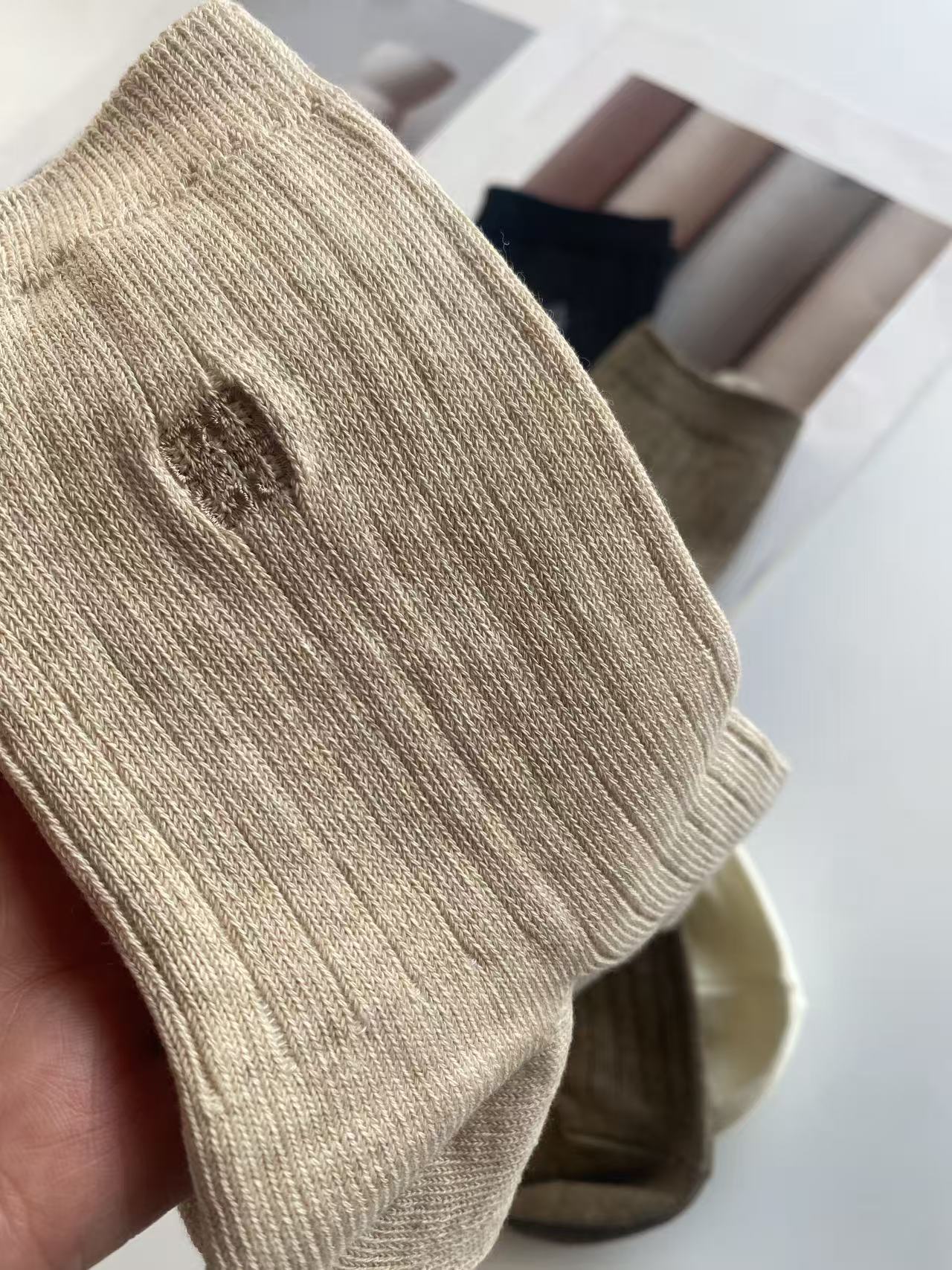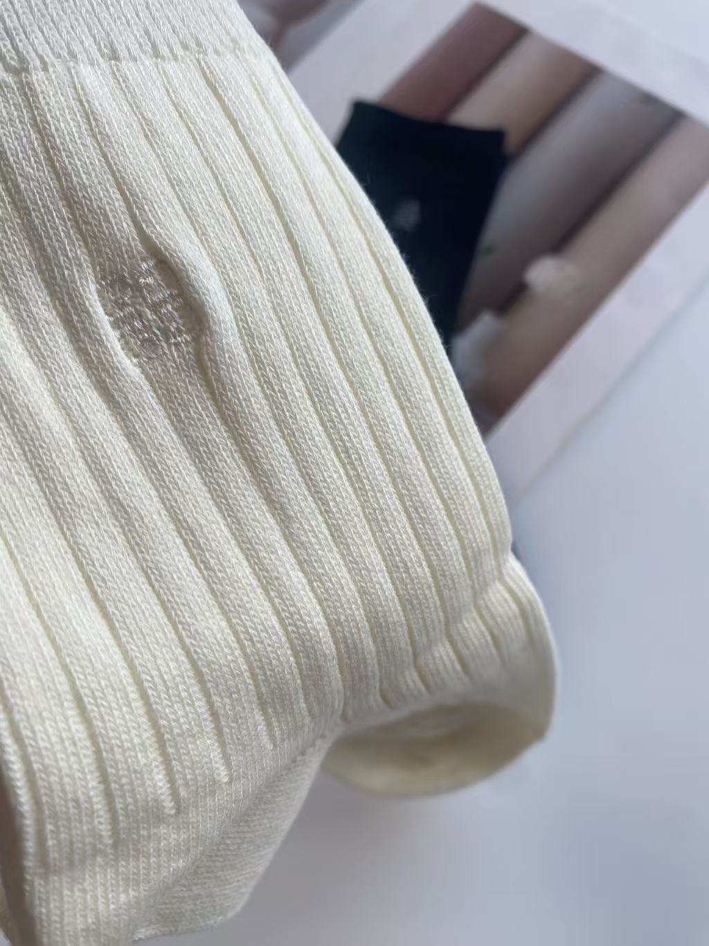 刺绣,也是非常的精致,用的最细的线,最密的针数,简单又高级。双针工艺的袜子,就是经典款,结实耐穿又厚实。