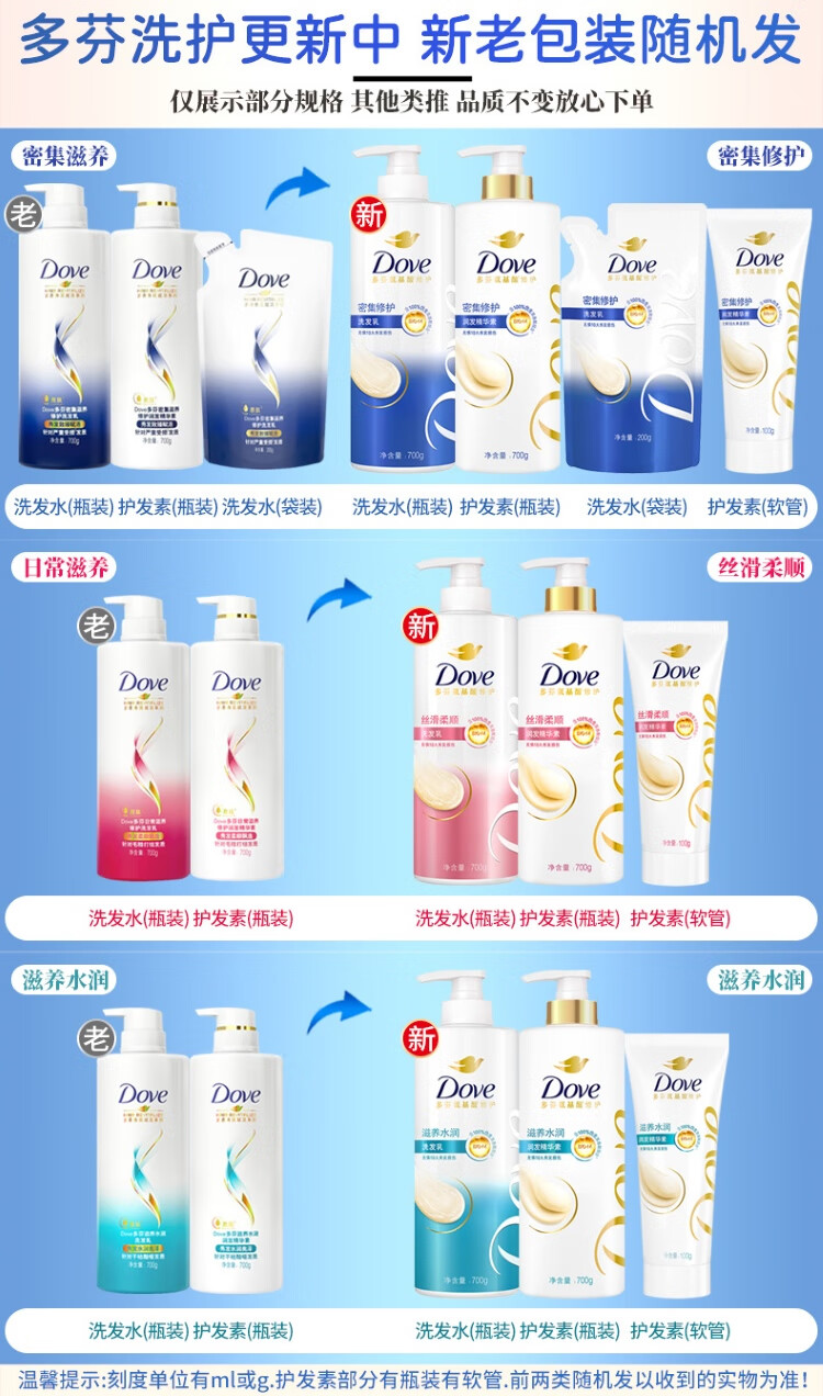多芬(Dove)洗发水 净透滋润洗护洗发乳滋养水润零硅油 水漾赋活改善干枯分叉 密集滋养洗发水700ml