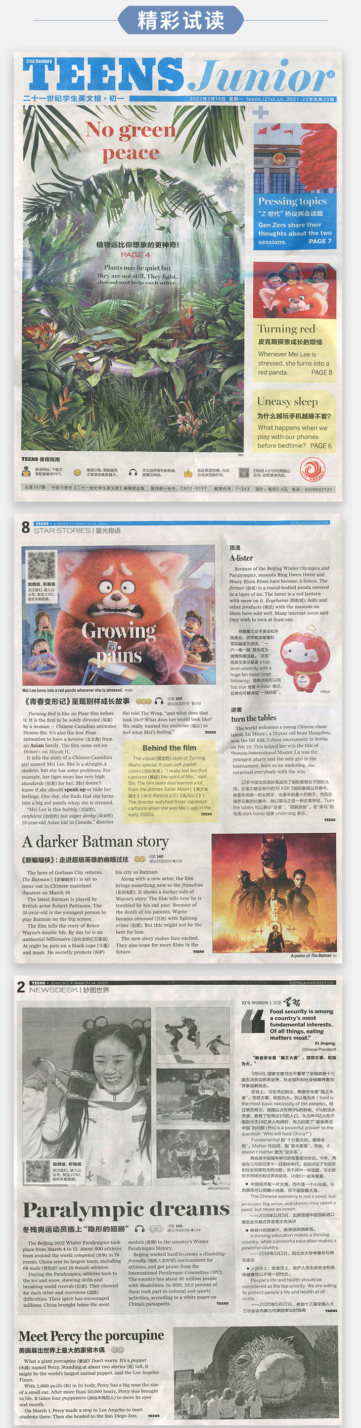 【专享】【年级自选】二十一世纪学生英文报(21世纪英语报)少儿画刊/小学/初中/高中 (每月发货一次)