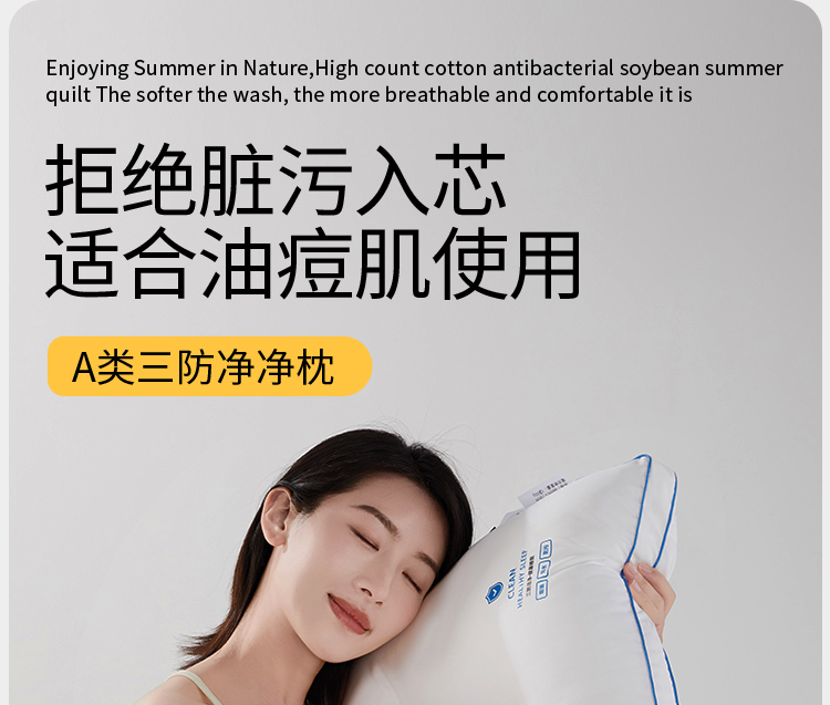 佳丽斯A类三防枕芯成人家用护颈椎助睡眠枕头可水洗单个装防油汗