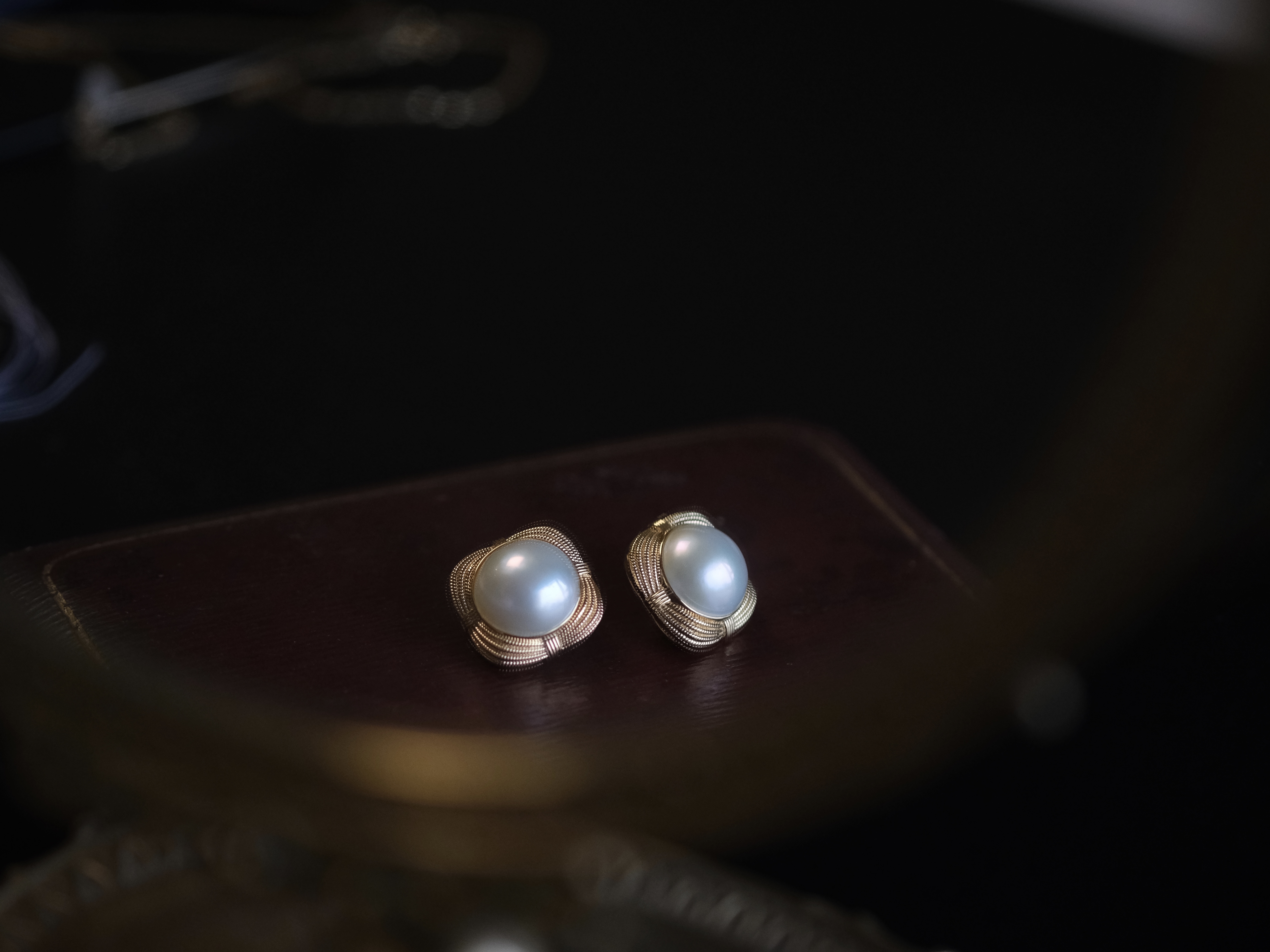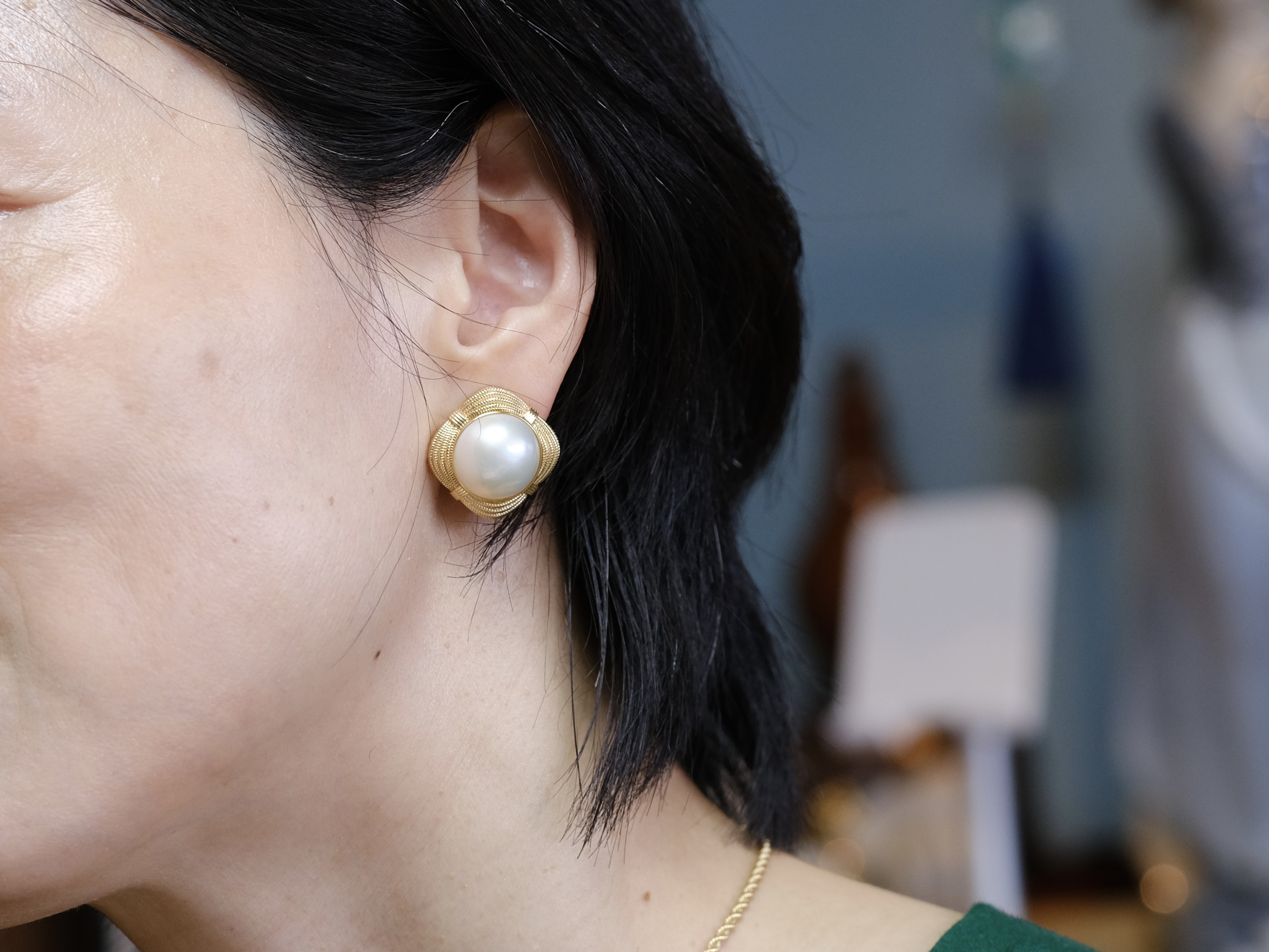 18K黄 马贝珠 耳钉