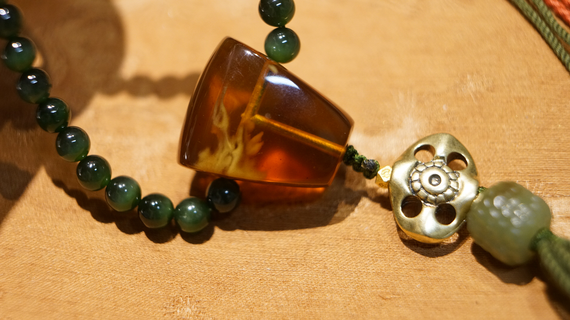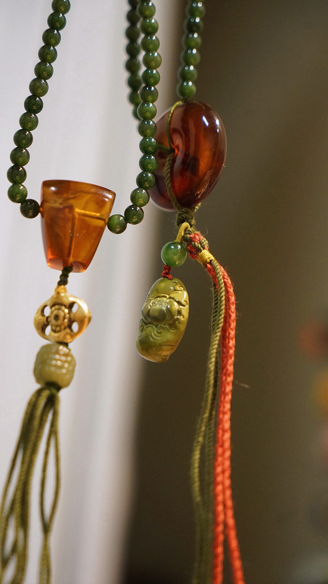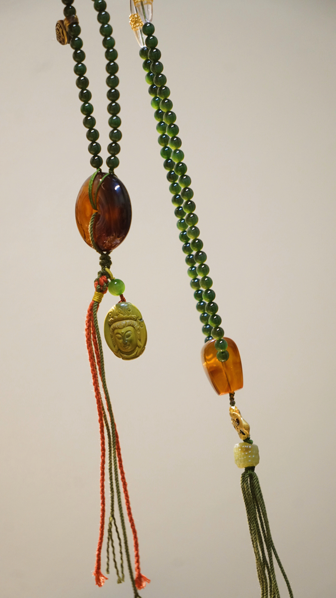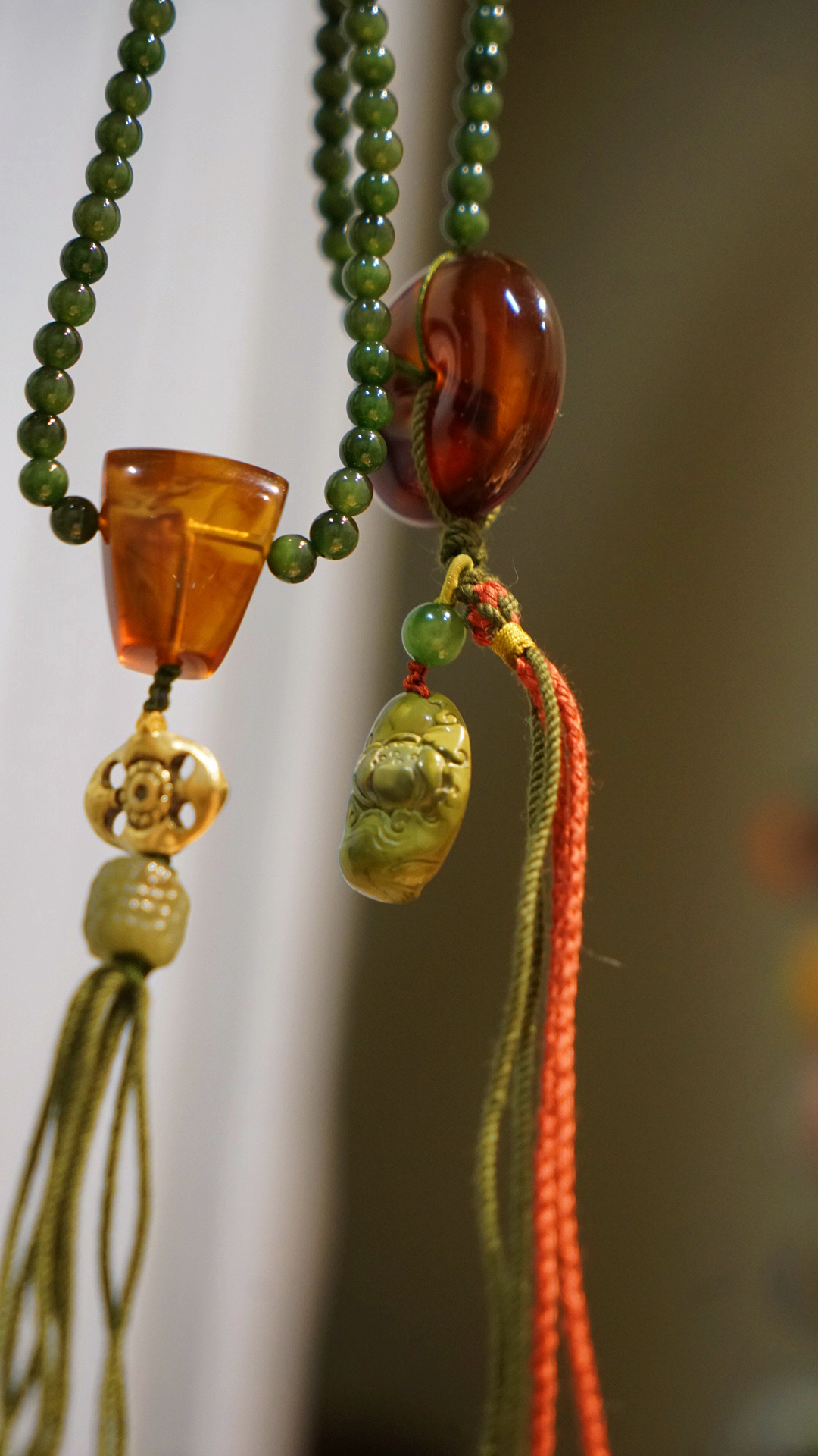 缅甸琥珀全套三通、平安扣设计…~腰珠是白水晶镶嵌的黄金拉丝工艺宫廷华丽感拉满~