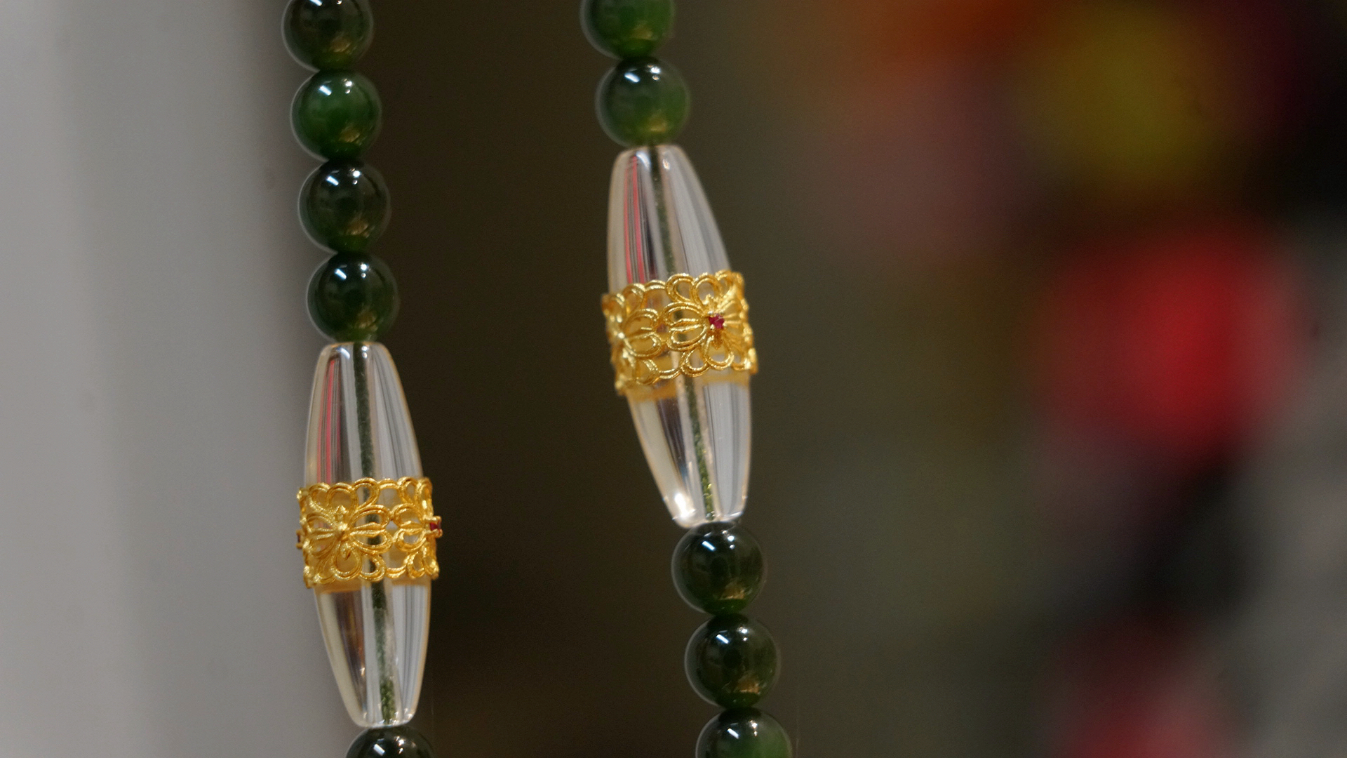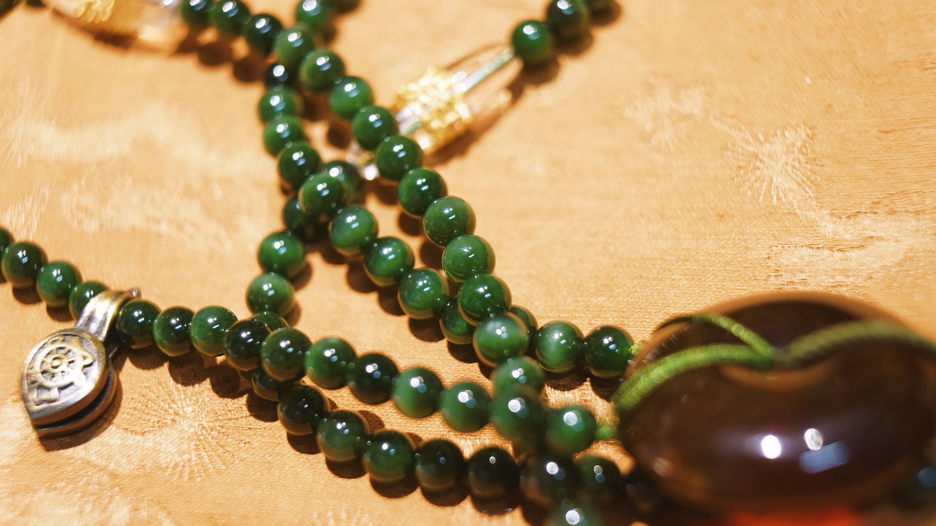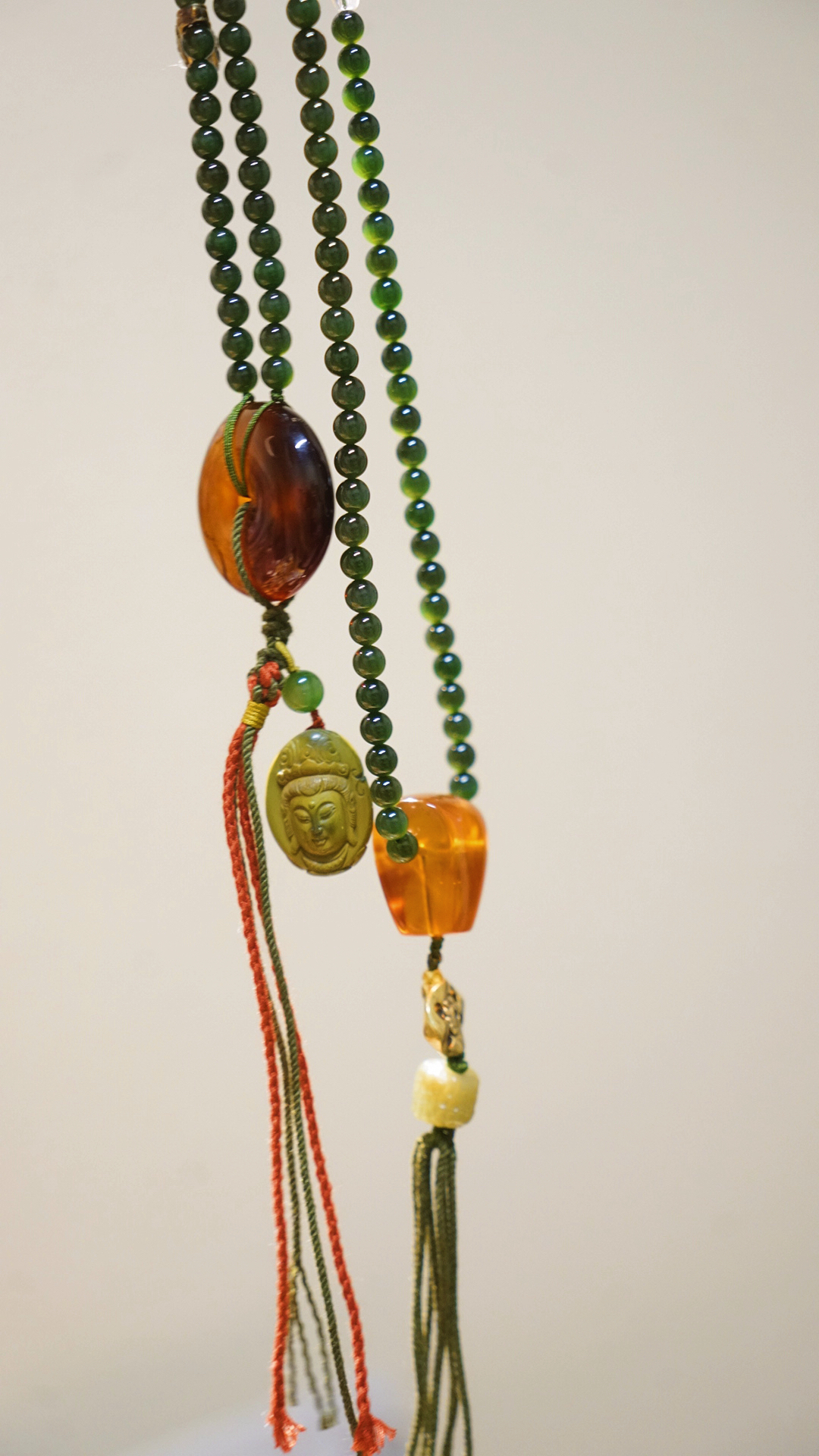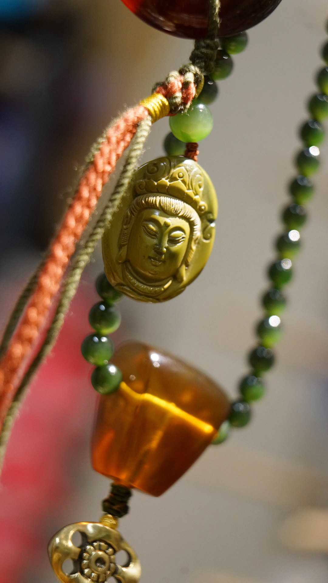 缅甸琥珀全套三通、平安扣设计…~腰珠是白水晶镶嵌的黄金拉丝工艺宫廷华丽感拉满~