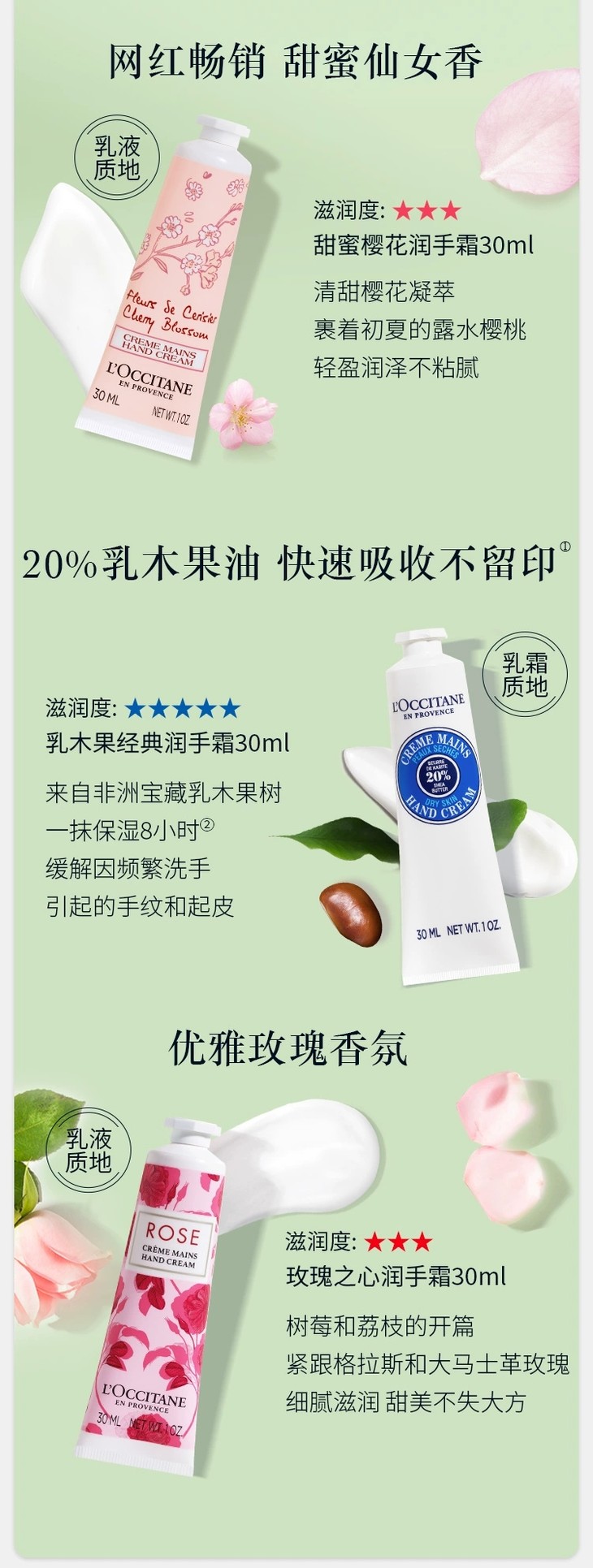 【春日限定 限时特惠】【送礼袋】 L'occitane欧舒丹 烫金六件套礼盒礼袋(樱花30ml*2+乳木果30ml*2+玫瑰30ml*2)