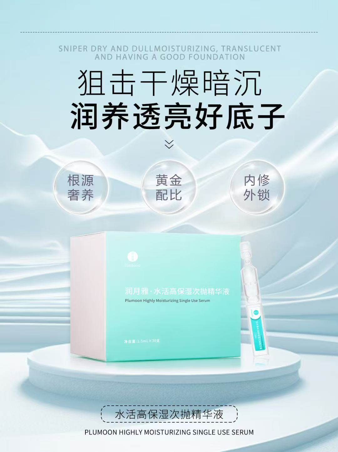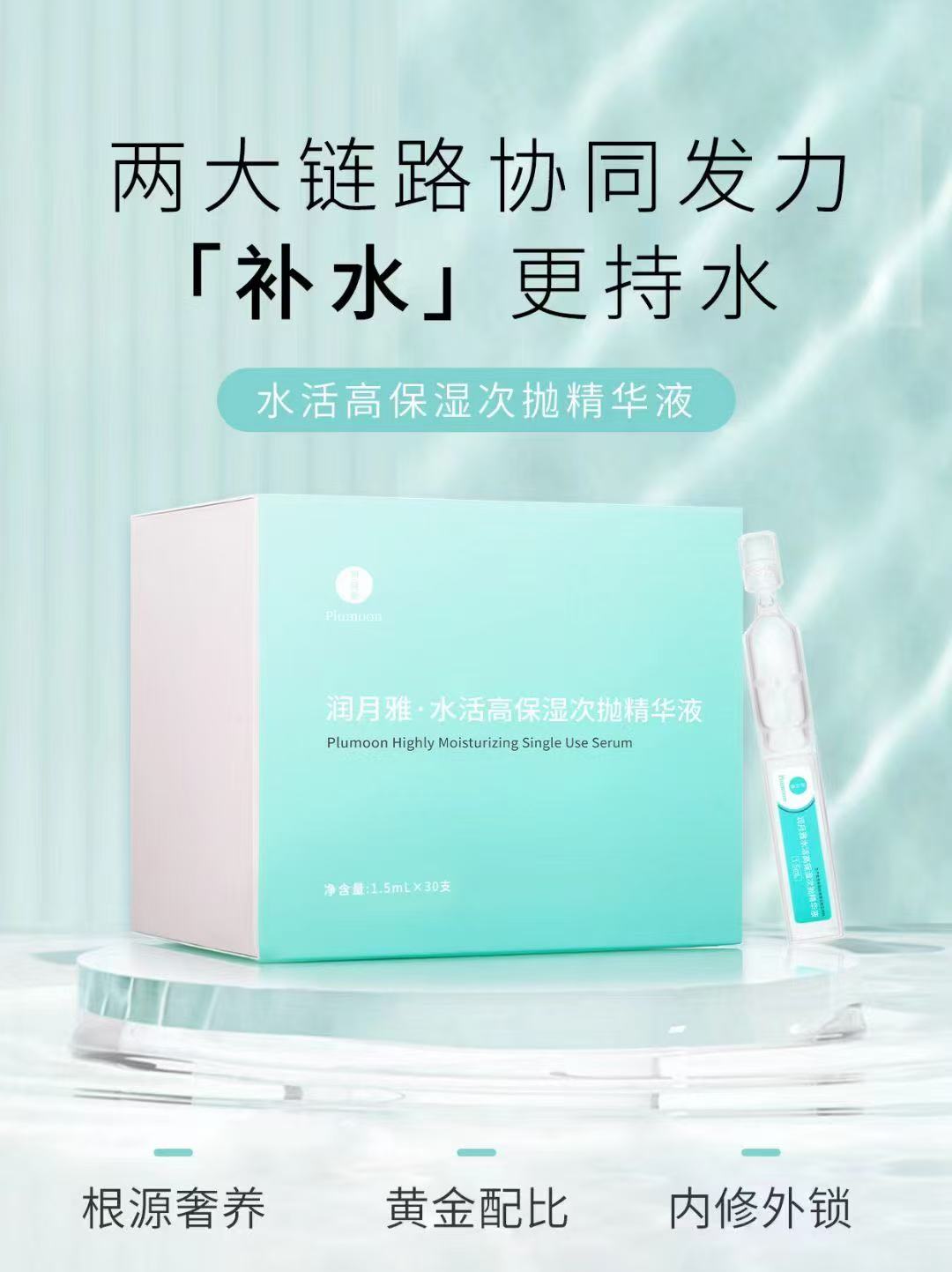 lkc【积分抵现10%】次抛买1赠1 润月雅水活保湿次抛精华30支/盒 直播加赠正装1盒