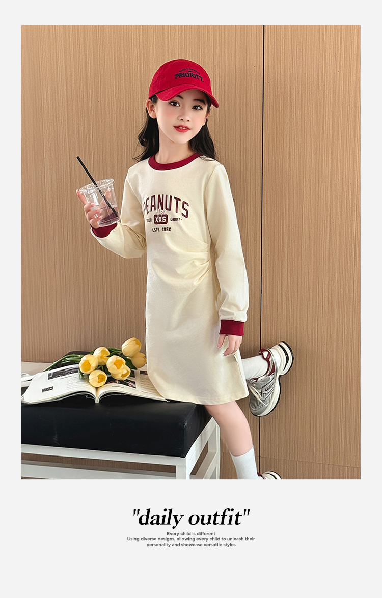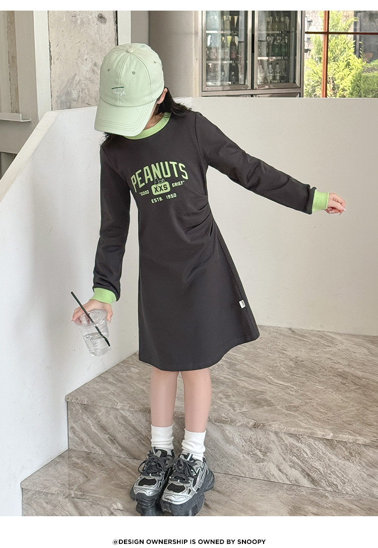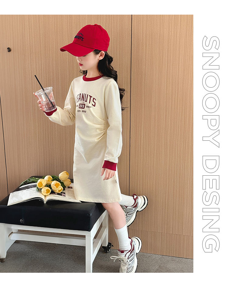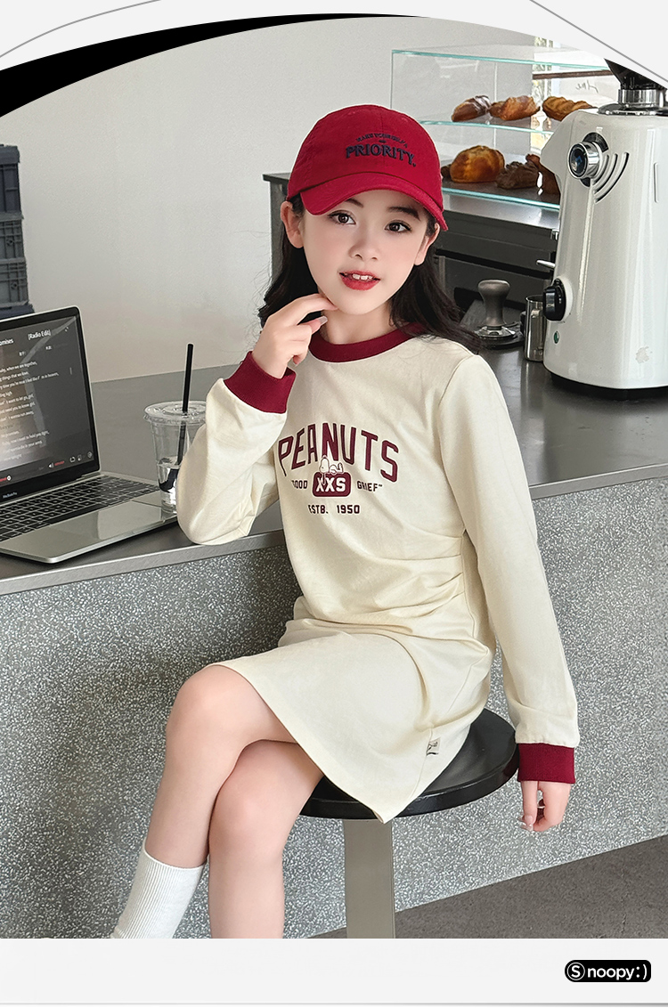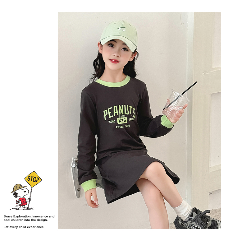 【清仓捡漏】【史努比】【100%棉】【110-130】女童春秋长袖收腰连衣裙