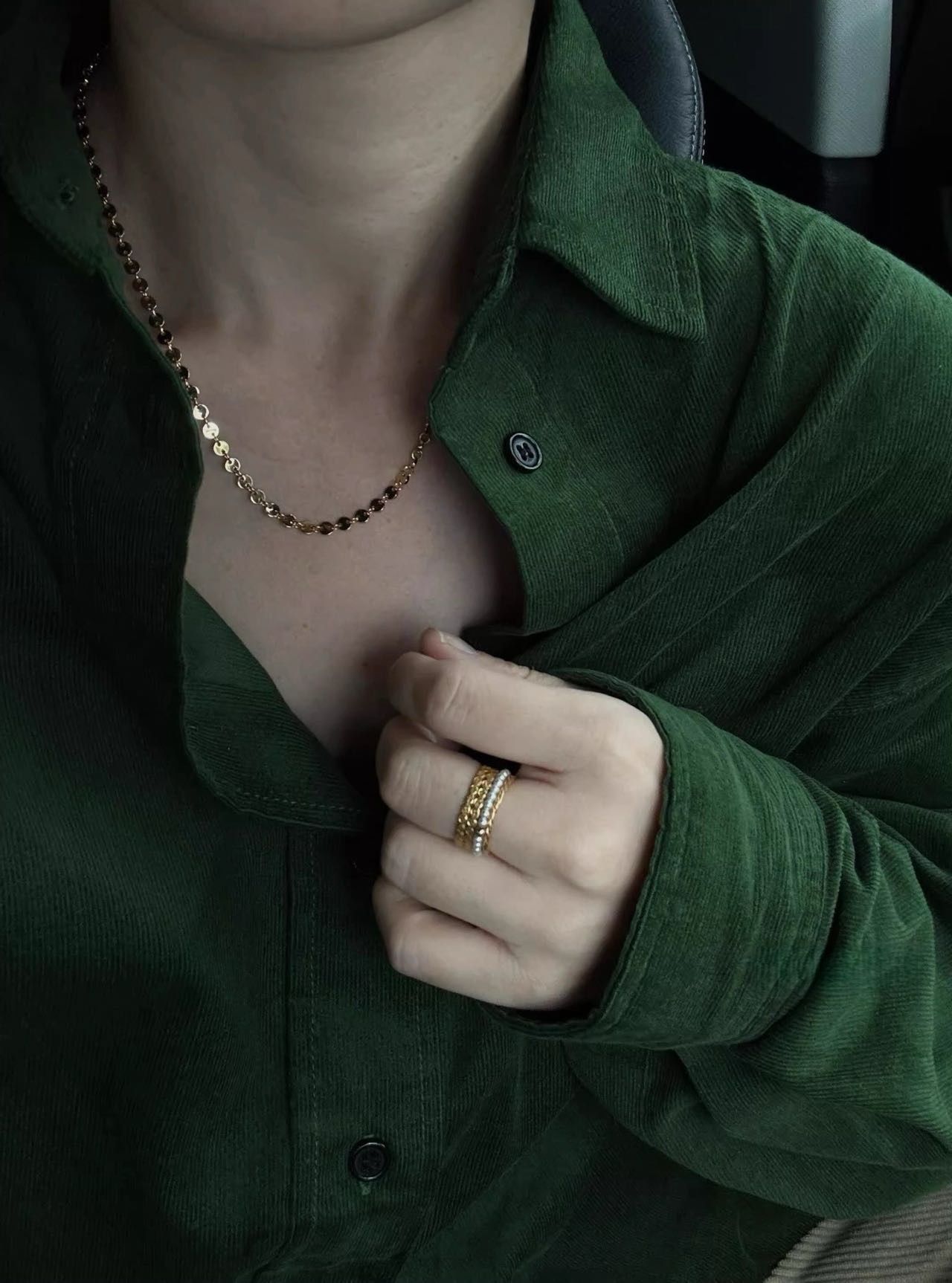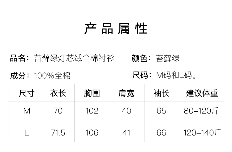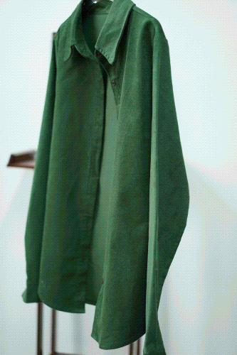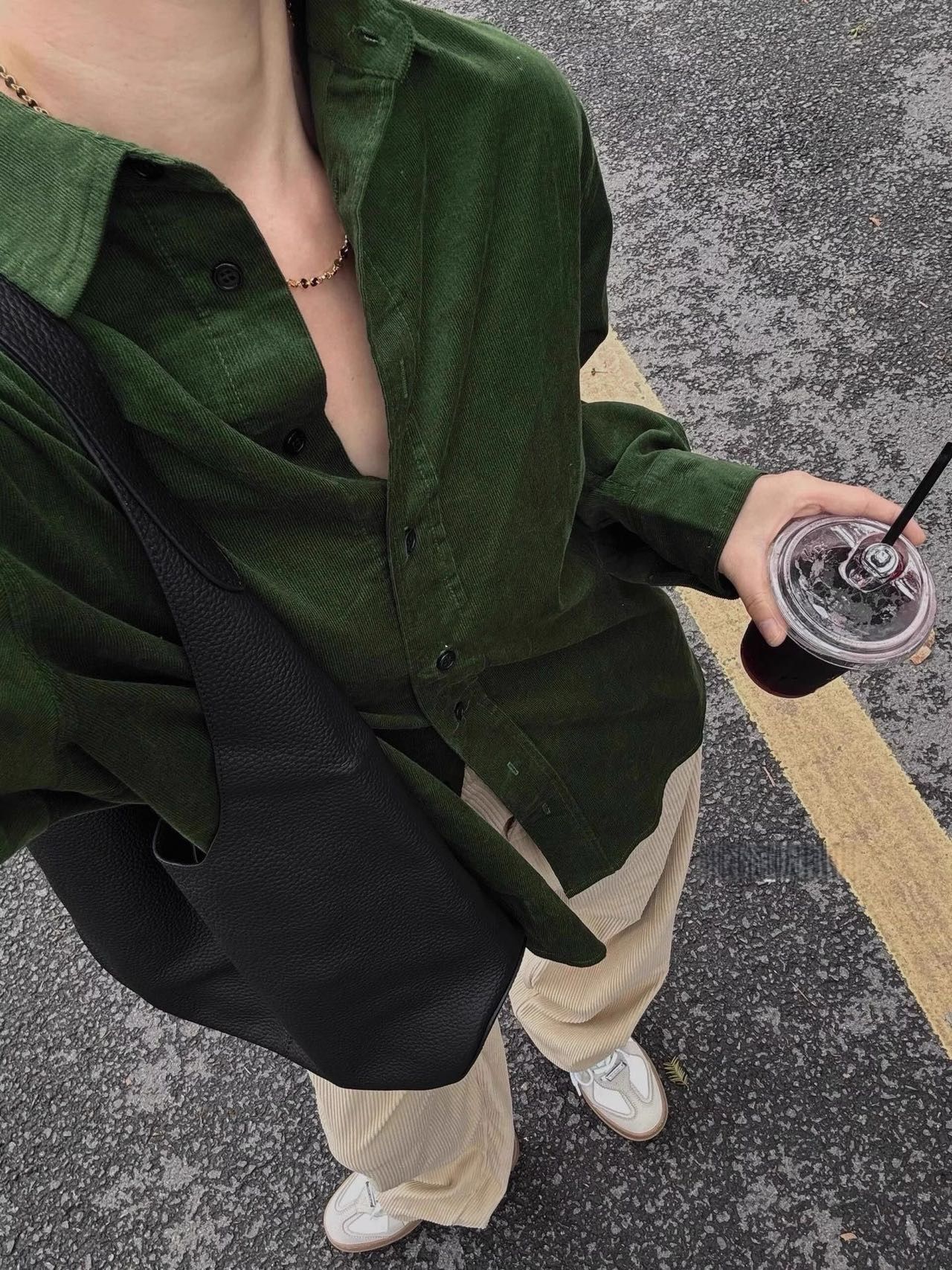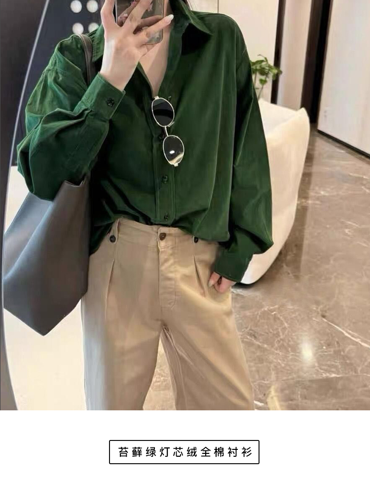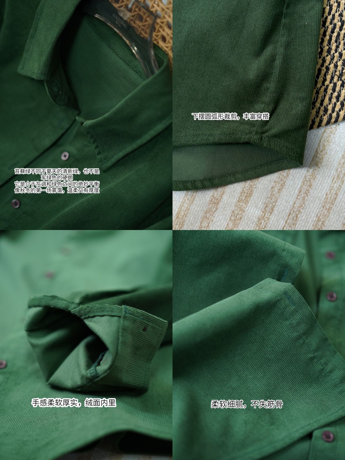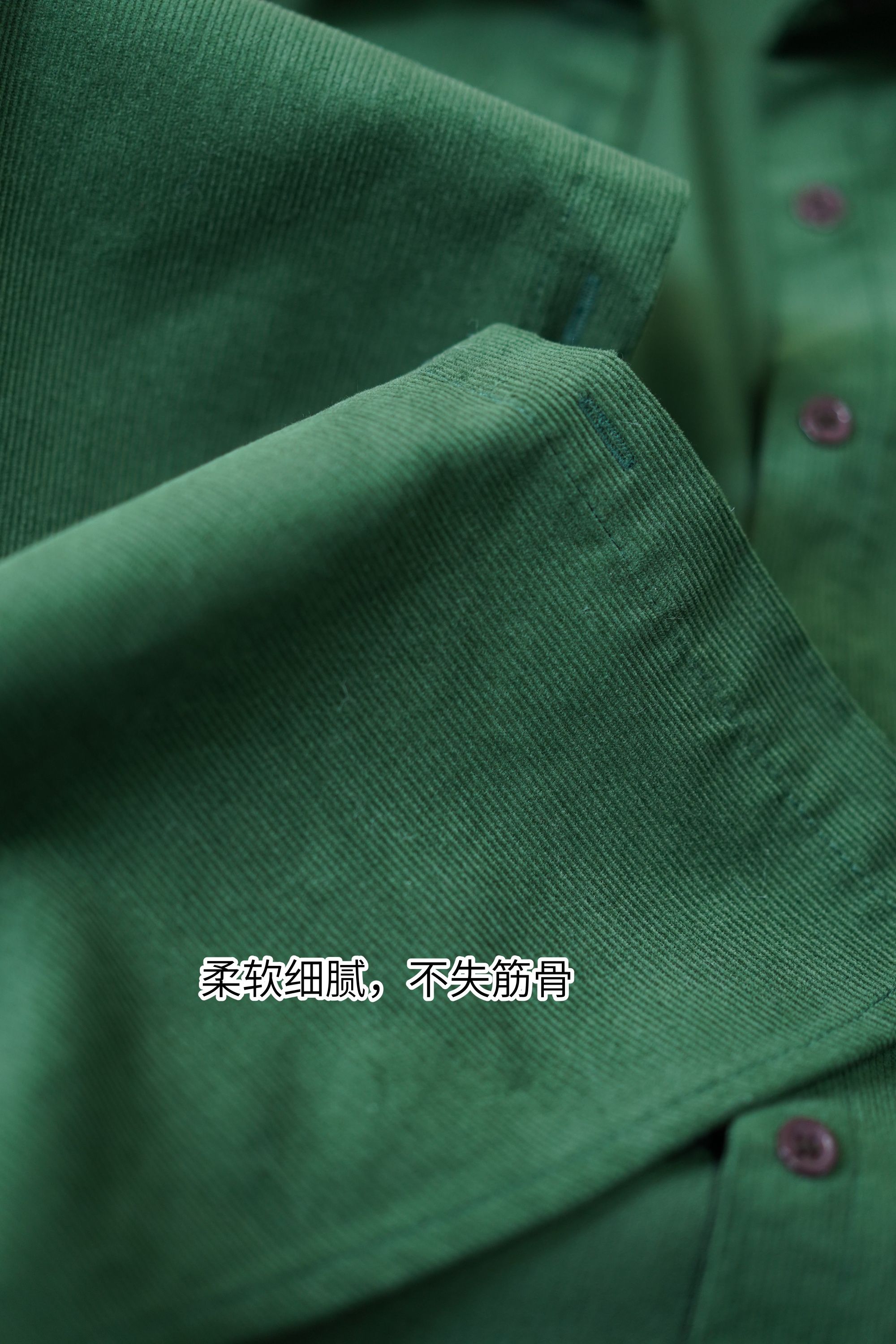 今天给大家找来一件——苔藓绿灯芯绒全棉衬衫。