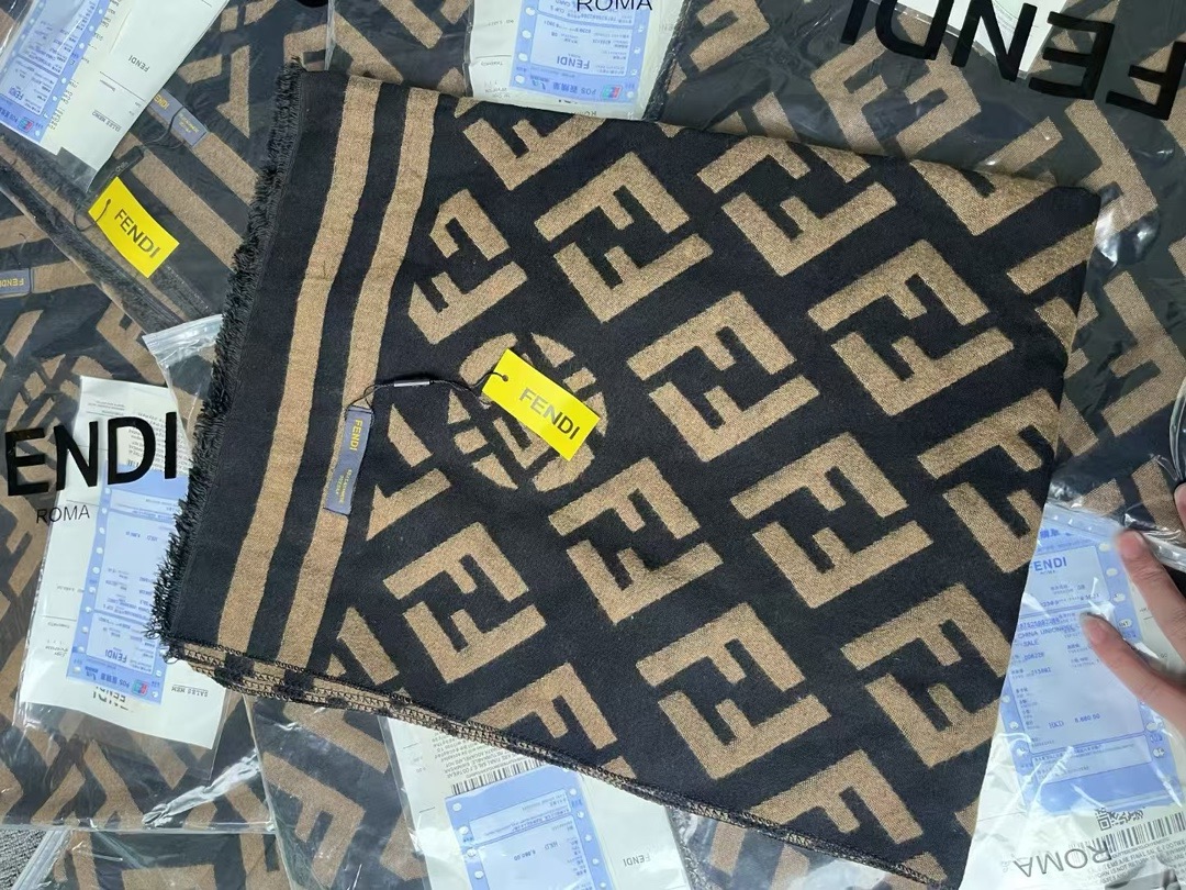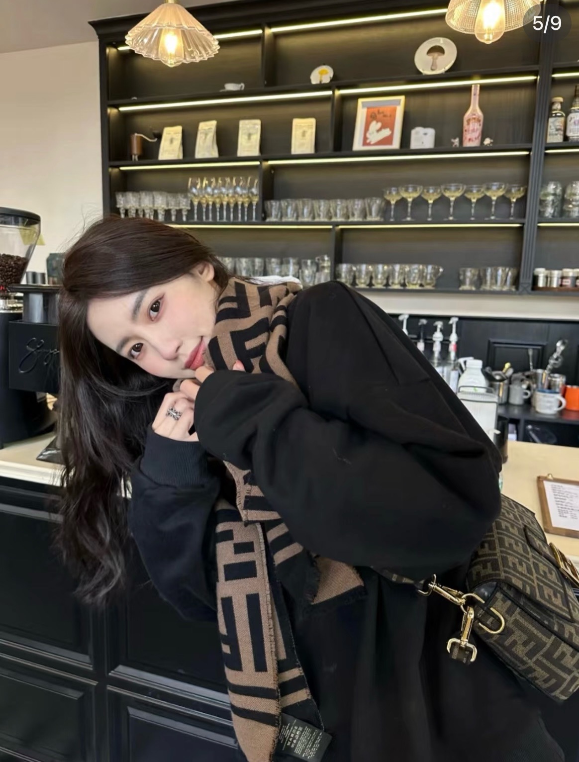 FENDI老花FF经典围巾当红炸子鸡还没到冬天专柜官网就到处断货真的太太太好看了时髦气质款很有质感的咖色底色搭配经典LOGO 一点儿也不老气男女同款双 都能佩戴低调又气质