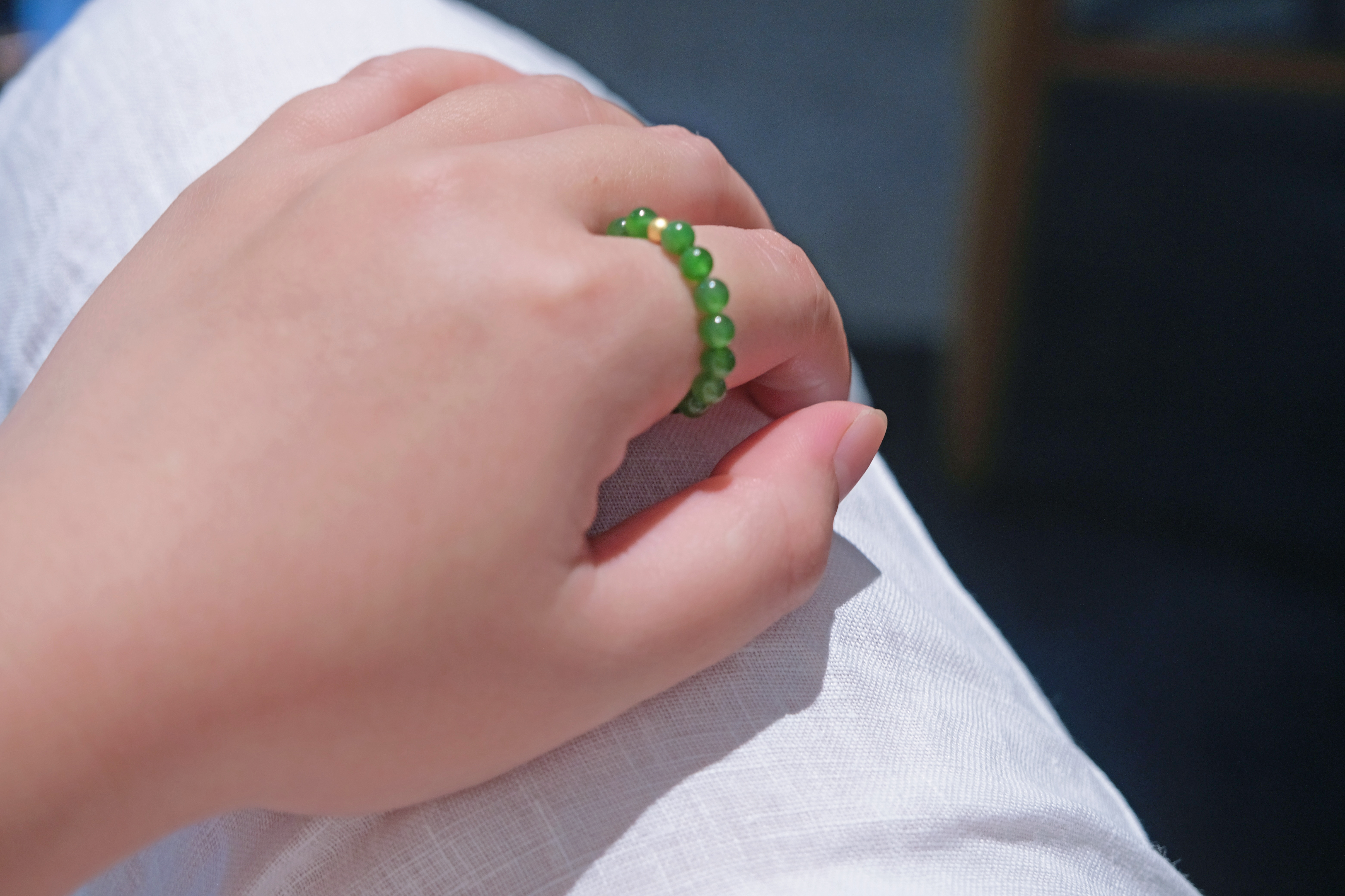 1、尺寸:4mm 碧玉+3mm 足金珠