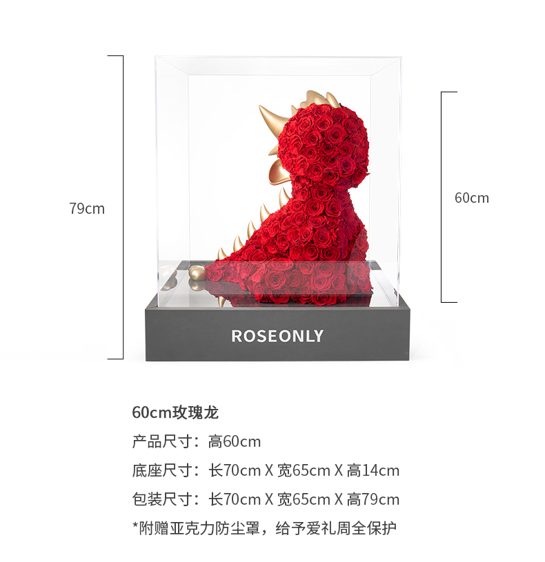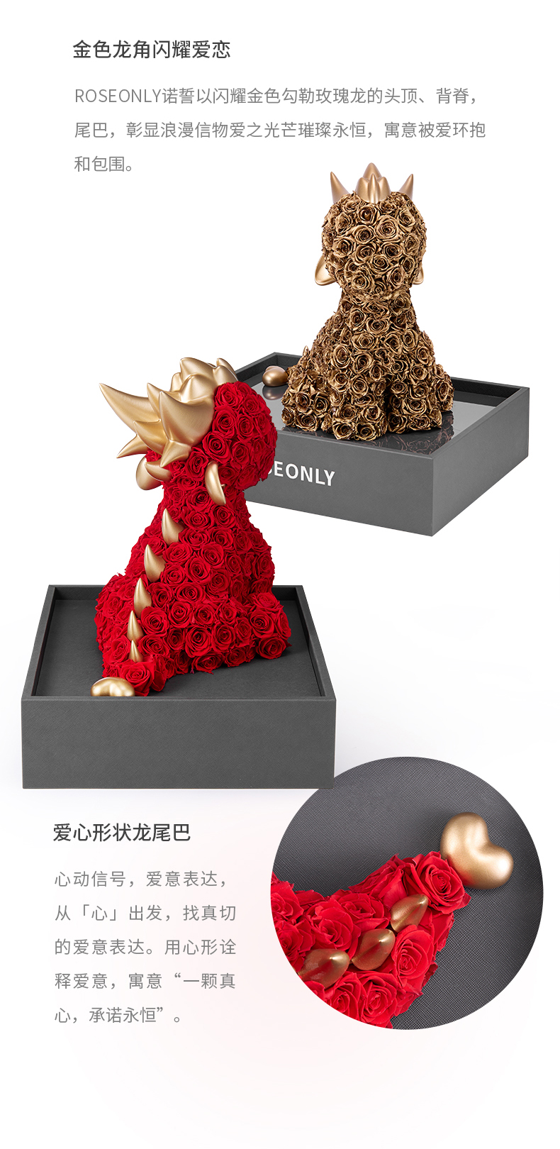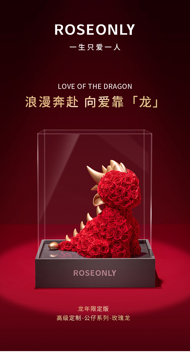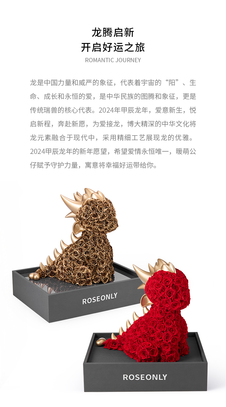 【告白神器】ROSEONLY诺誓 高端定制 永生玫瑰 生肖特别款 生肖龙 红色玫瑰龙 金色玫瑰龙