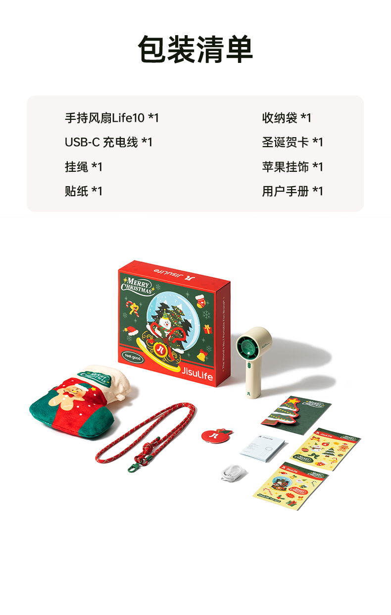 【圣诞限定礼盒】几素小风炮手持小风扇高速节能usb迷你便携式充电大风力轻音户外手拿挂电风扇学生儿童吹辅食电扇小型life10