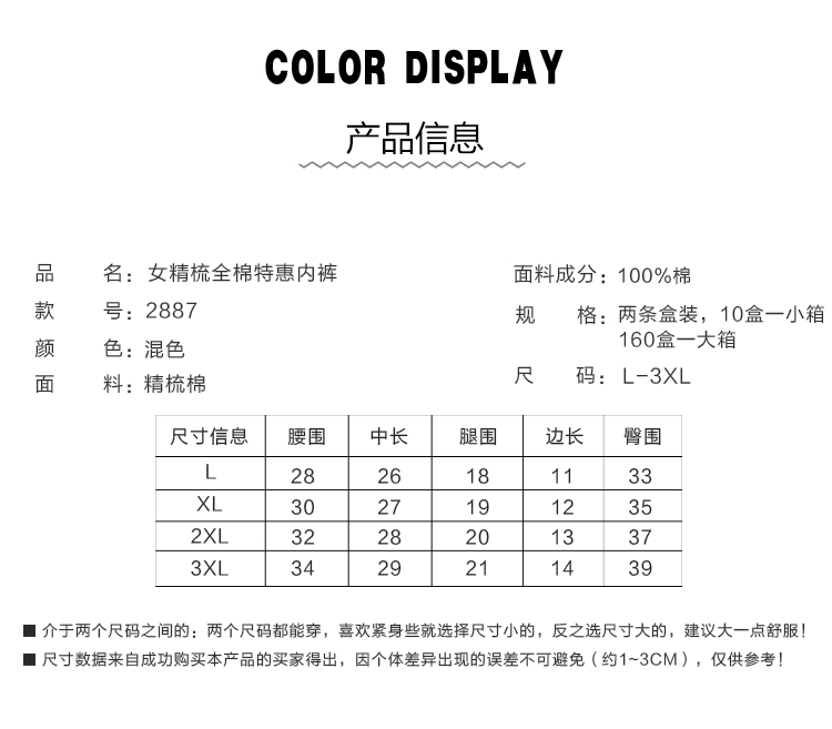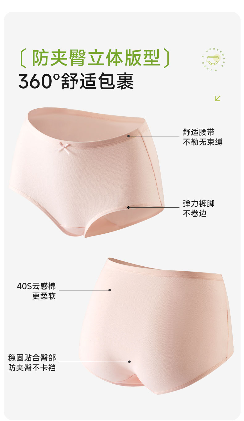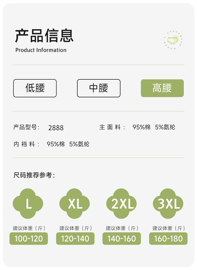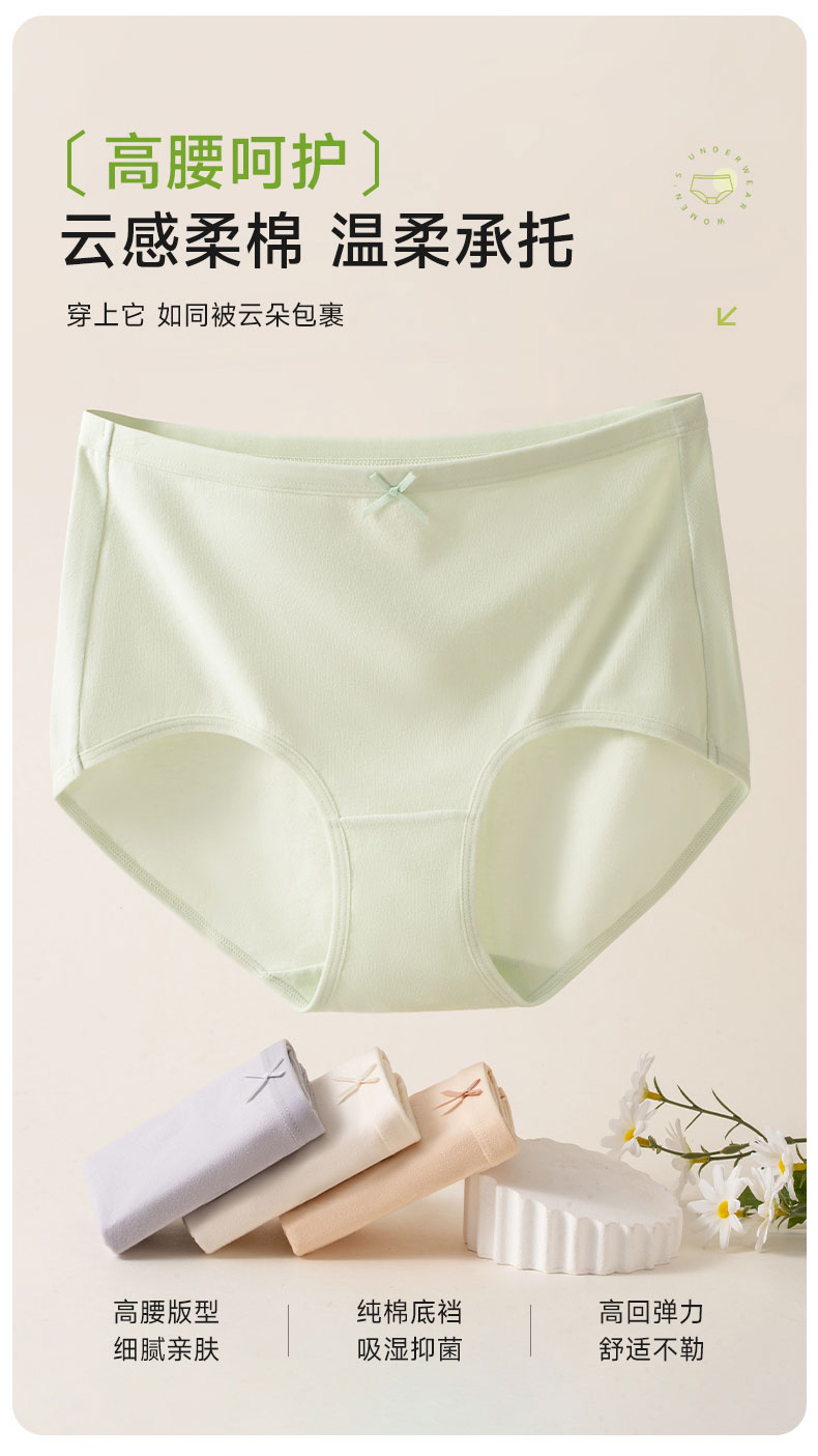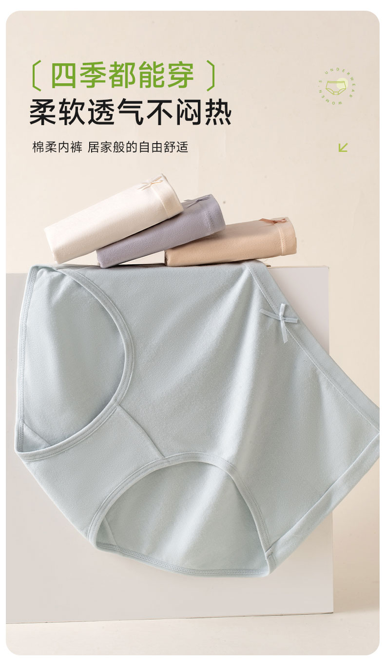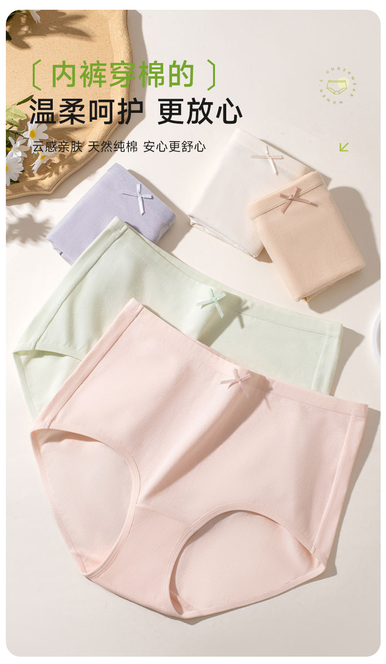 云感棉精梳棉净色大版中高腰女士三角内裤2862/2888/2887