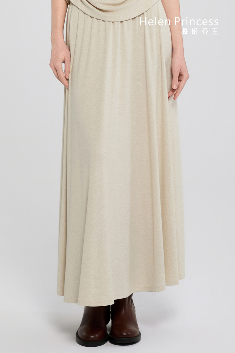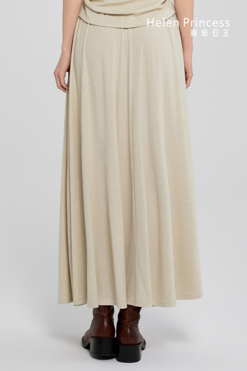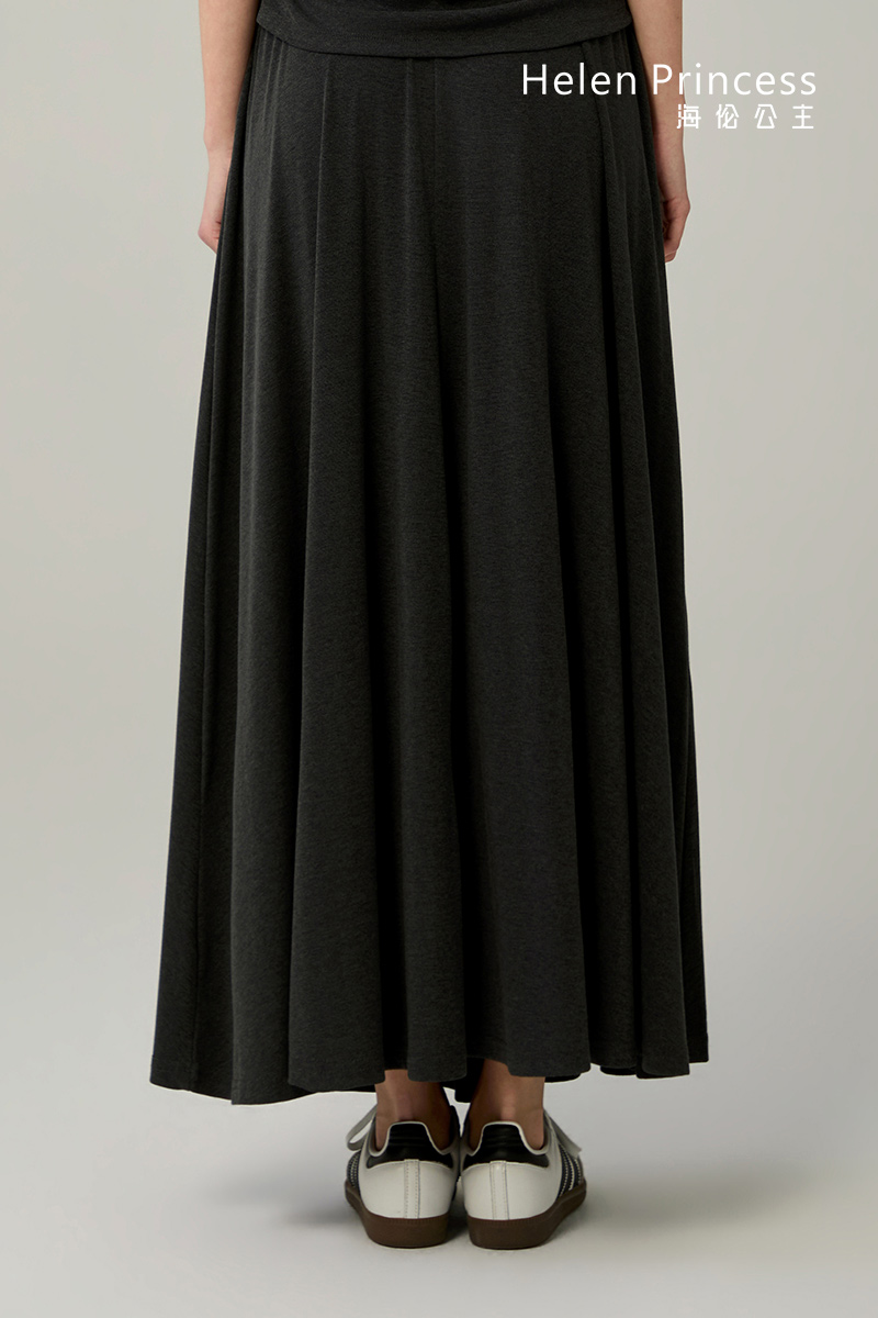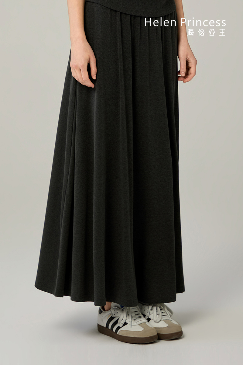 均匀压褶的宽边松紧腰头,贴合身体曲线,亲肤舒适不紧绷。垂顺自然的裙身线条,巧妙修饰胯宽曲线,使腿部更显修长美观。