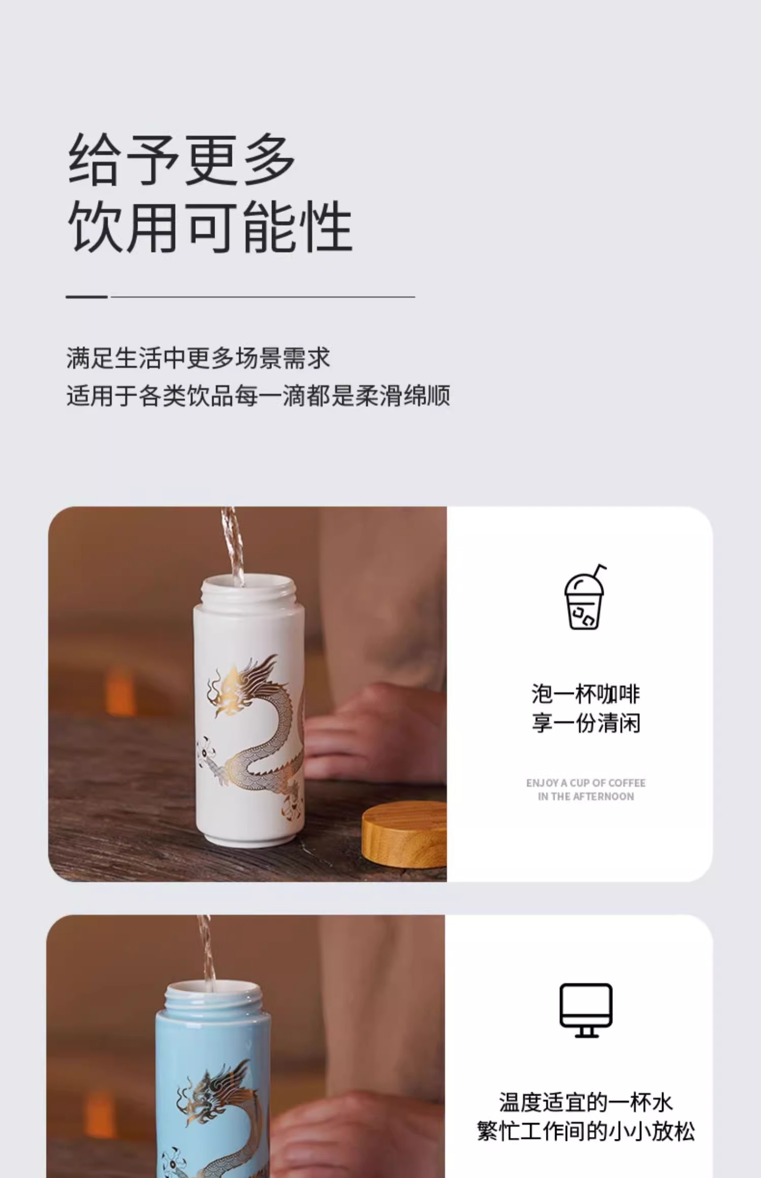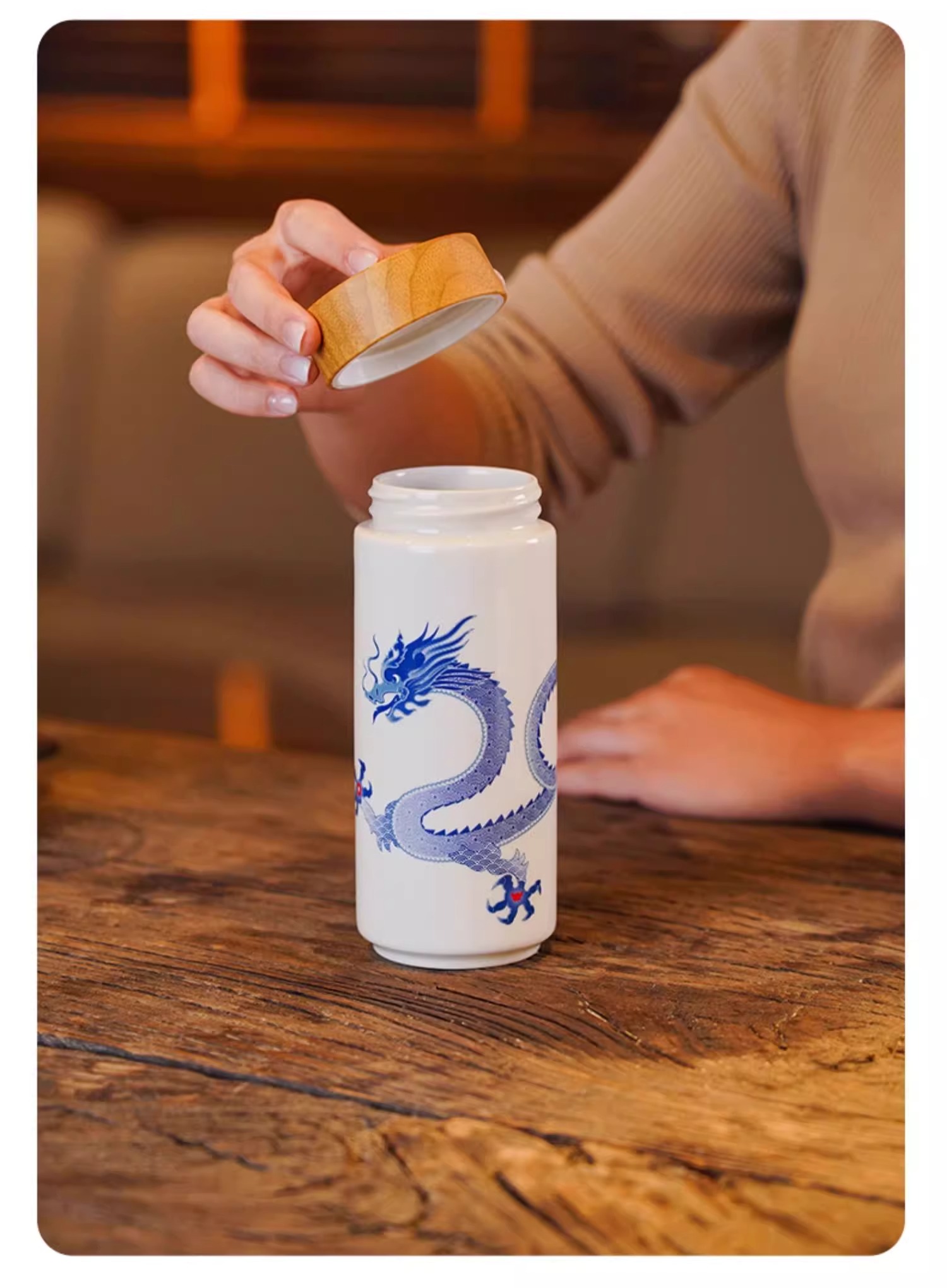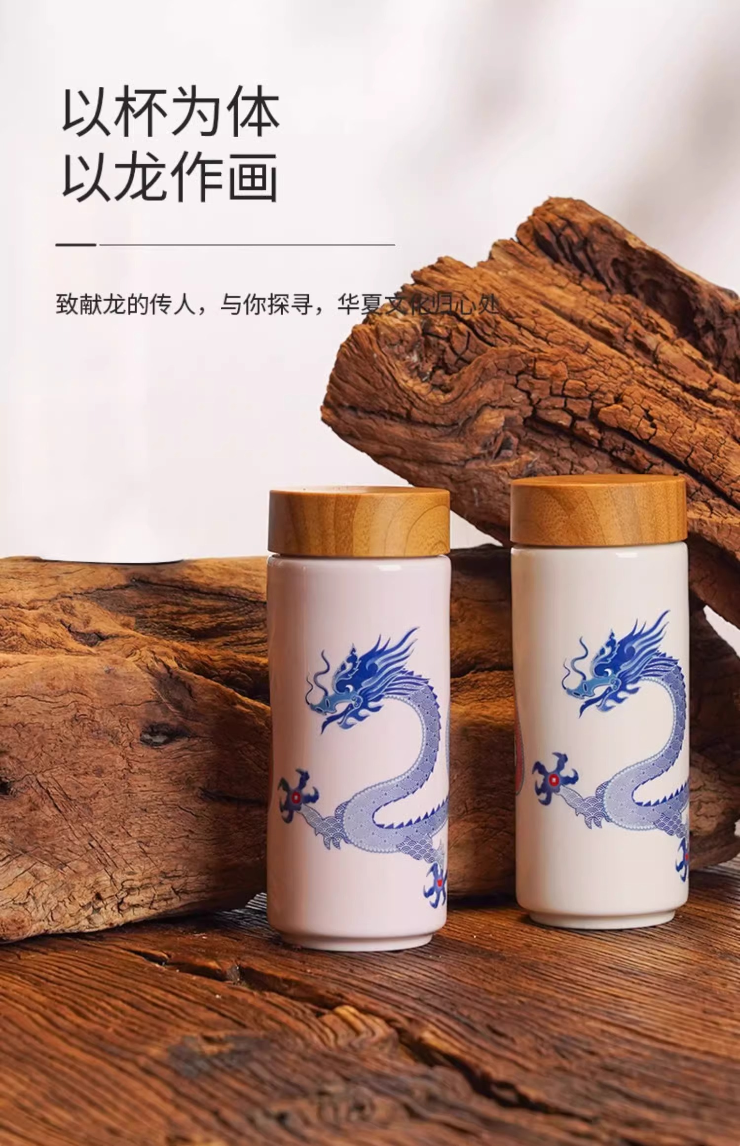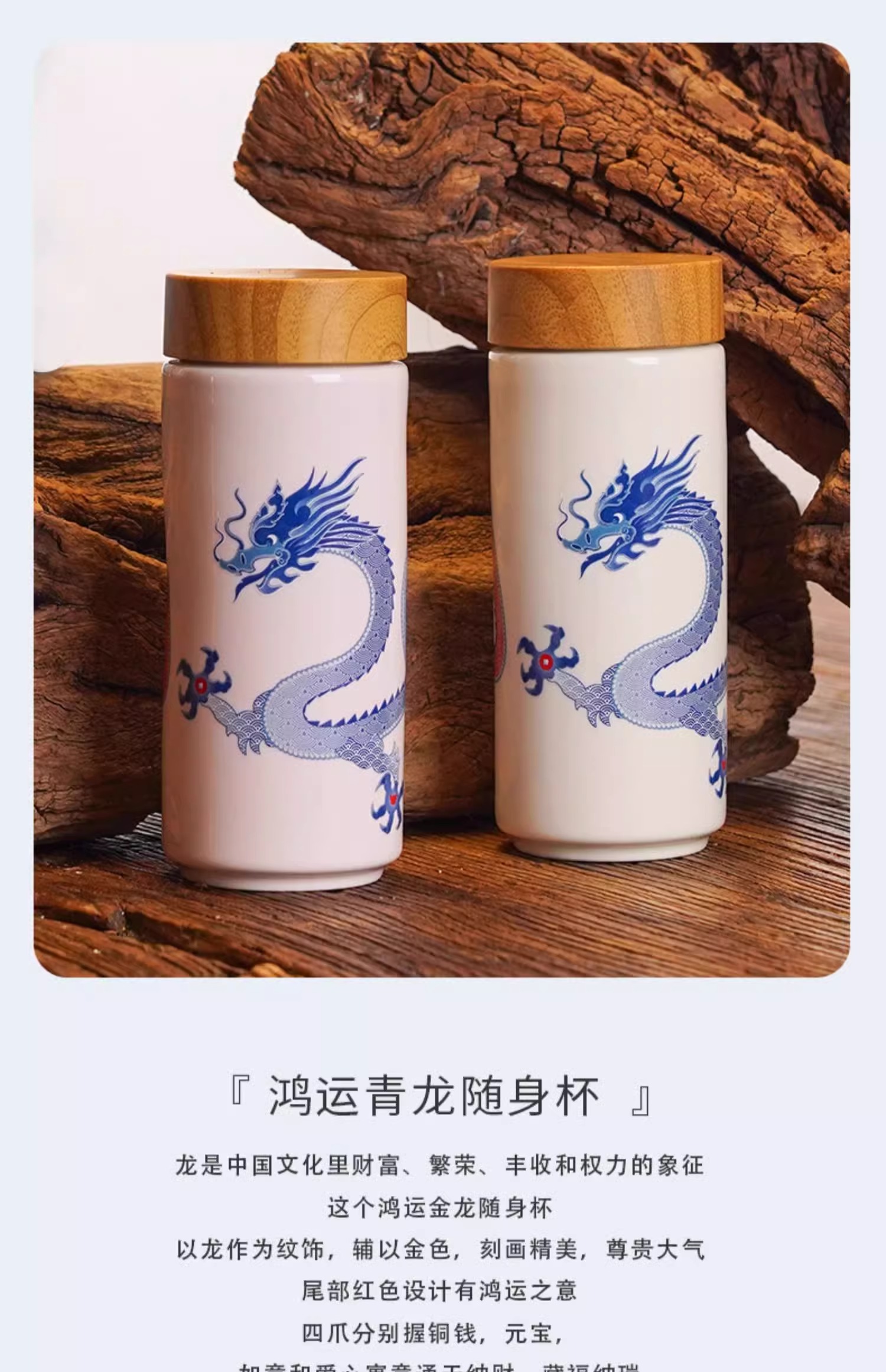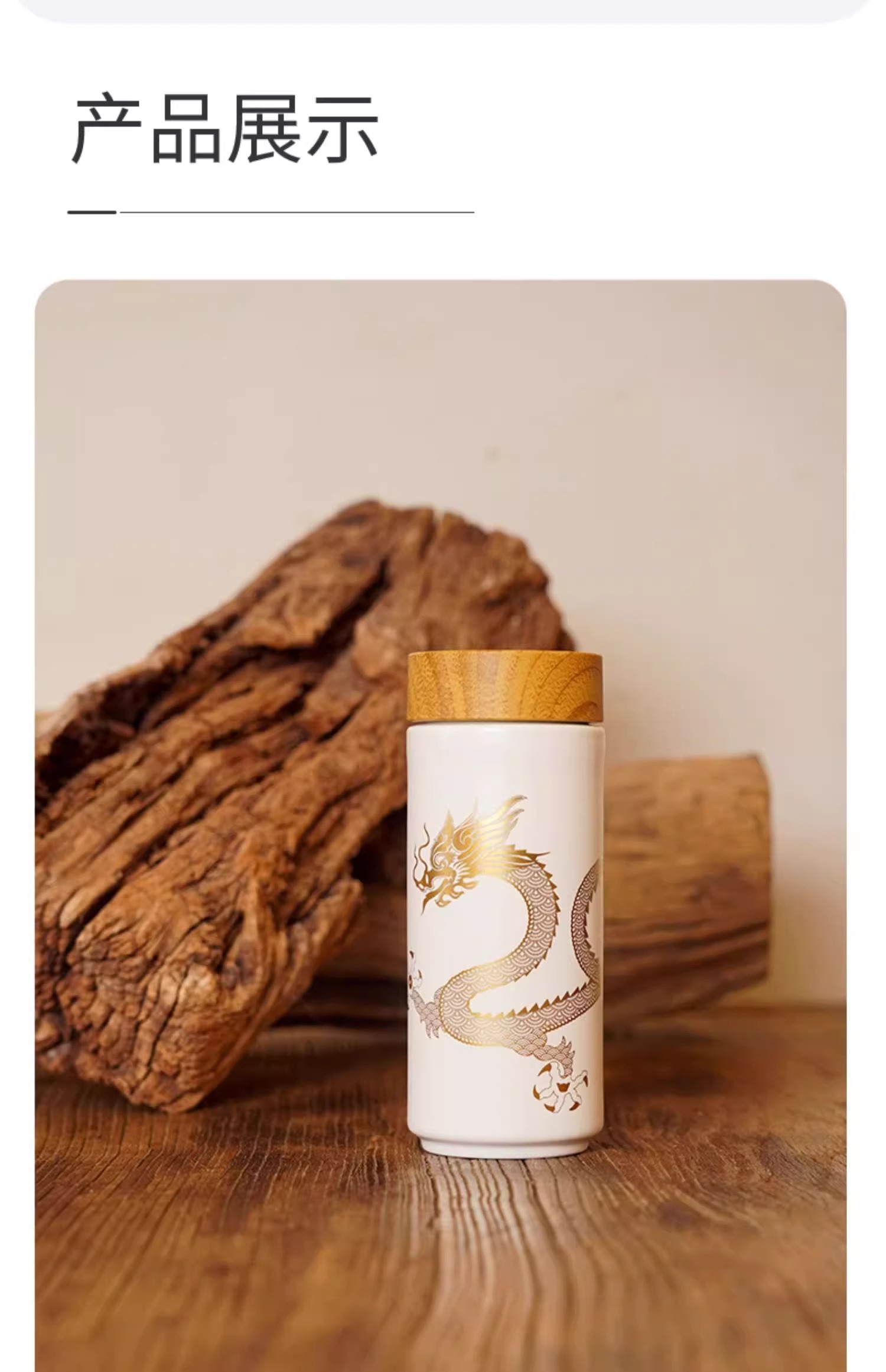 【样品特惠4折,仅1个无原包装,无货退款】乾唐轩鸿运金龙随身杯(木纹盖)无光黑活瓷杯330ml