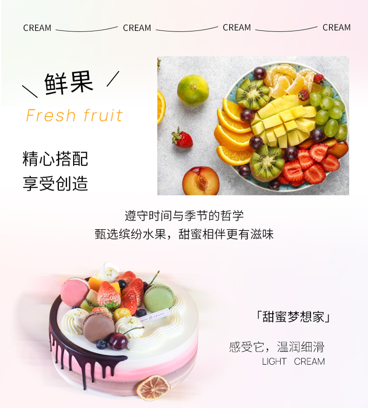 【甜蜜梦想家】新款特色生日蛋糕—纯乳脂与牛奶奶油混合,夹层口味升级,细腻香甜