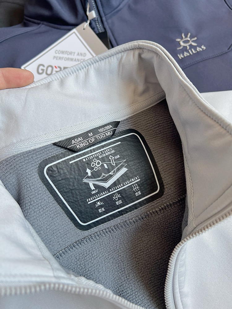 -专业的户外三防硬壳材质,致密梭织哑光肌理,防泼、抗风、耐脏、抗皱。里面有一层透气孔面料!厚实并且亲肤性很好