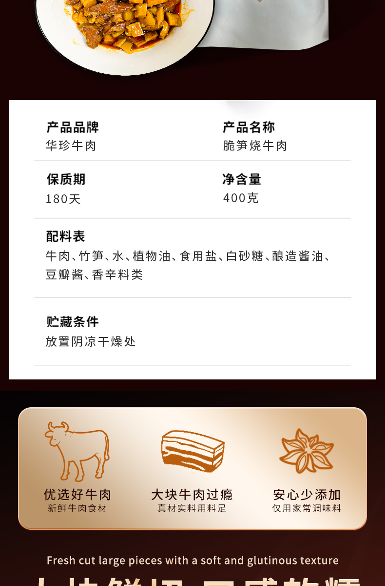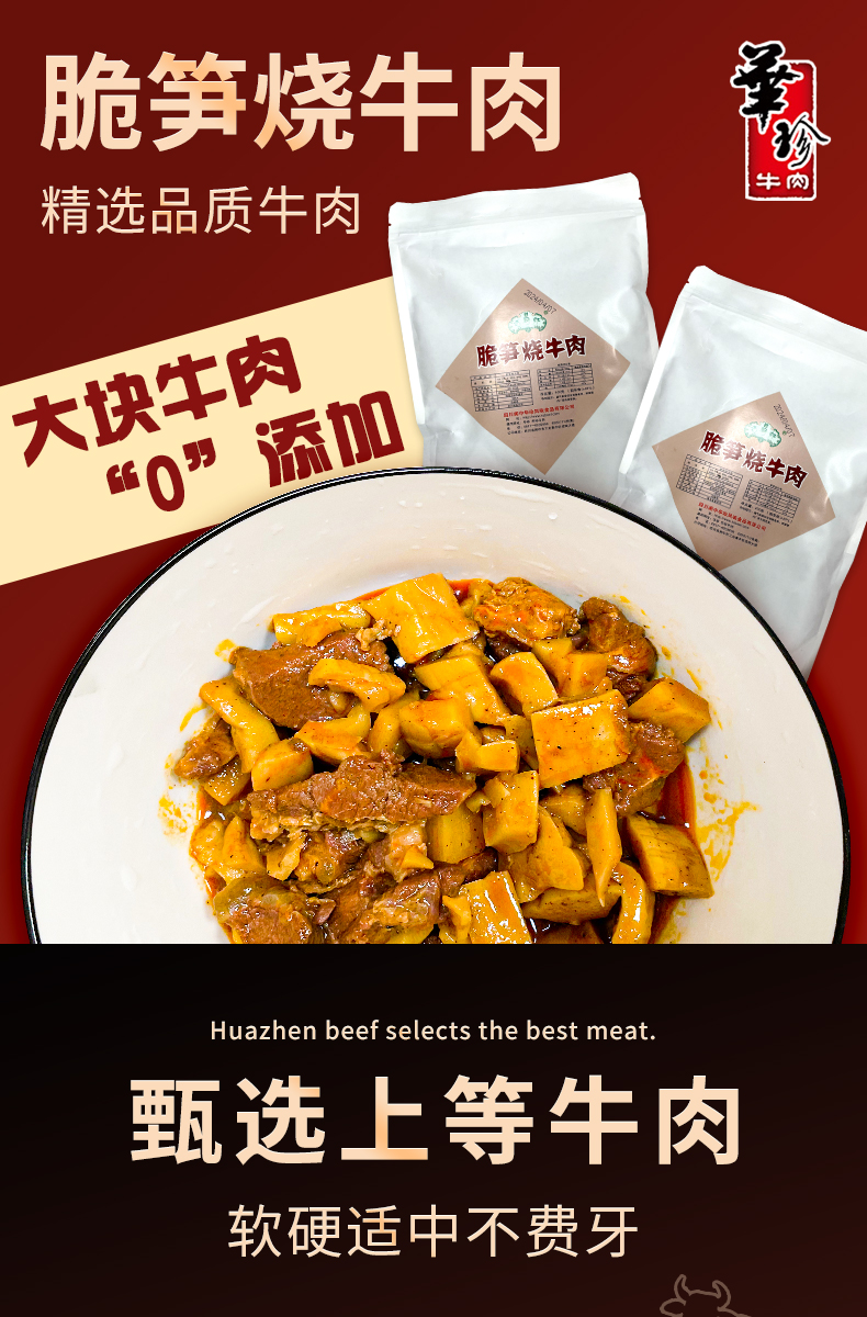 华珍牛肉四川特产脆笋竹笋丁红烧牛肉预制菜成品熟食加热即食阆中特产