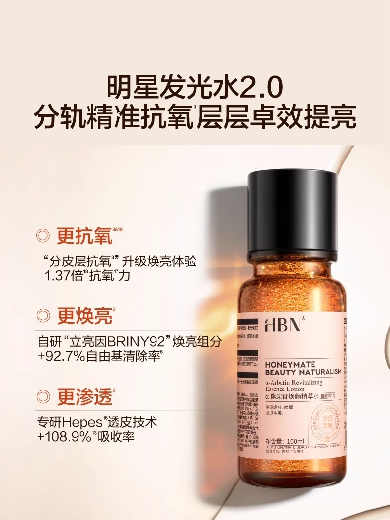 【明星发光水+口碑洁面】到手正装量! HBNa-熊果苷焕颜精萃水30ml/臻润安颜云感洁面20g