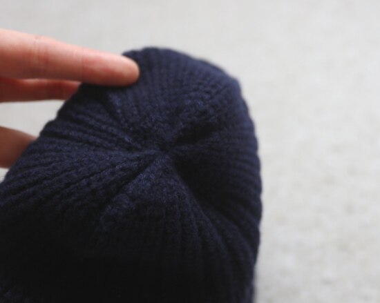 戴起来纱线撑开 脑顶更密的纹路 会形成一个往下凹 上面示范图我做了标注