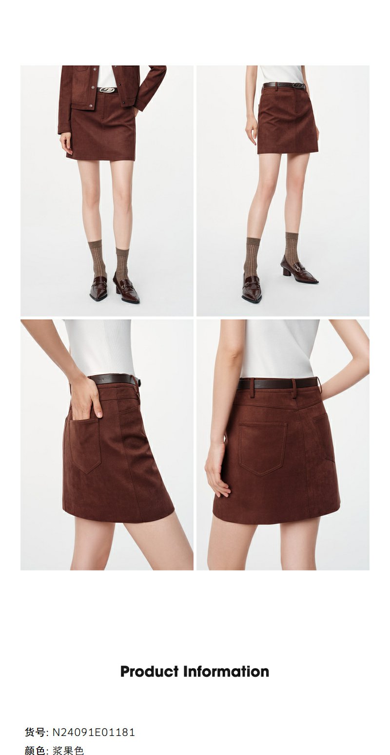 NEELLY纳俪2024秋商场同款安可拉红显瘦短裙女新款通勤复古半身裙N24091E01181