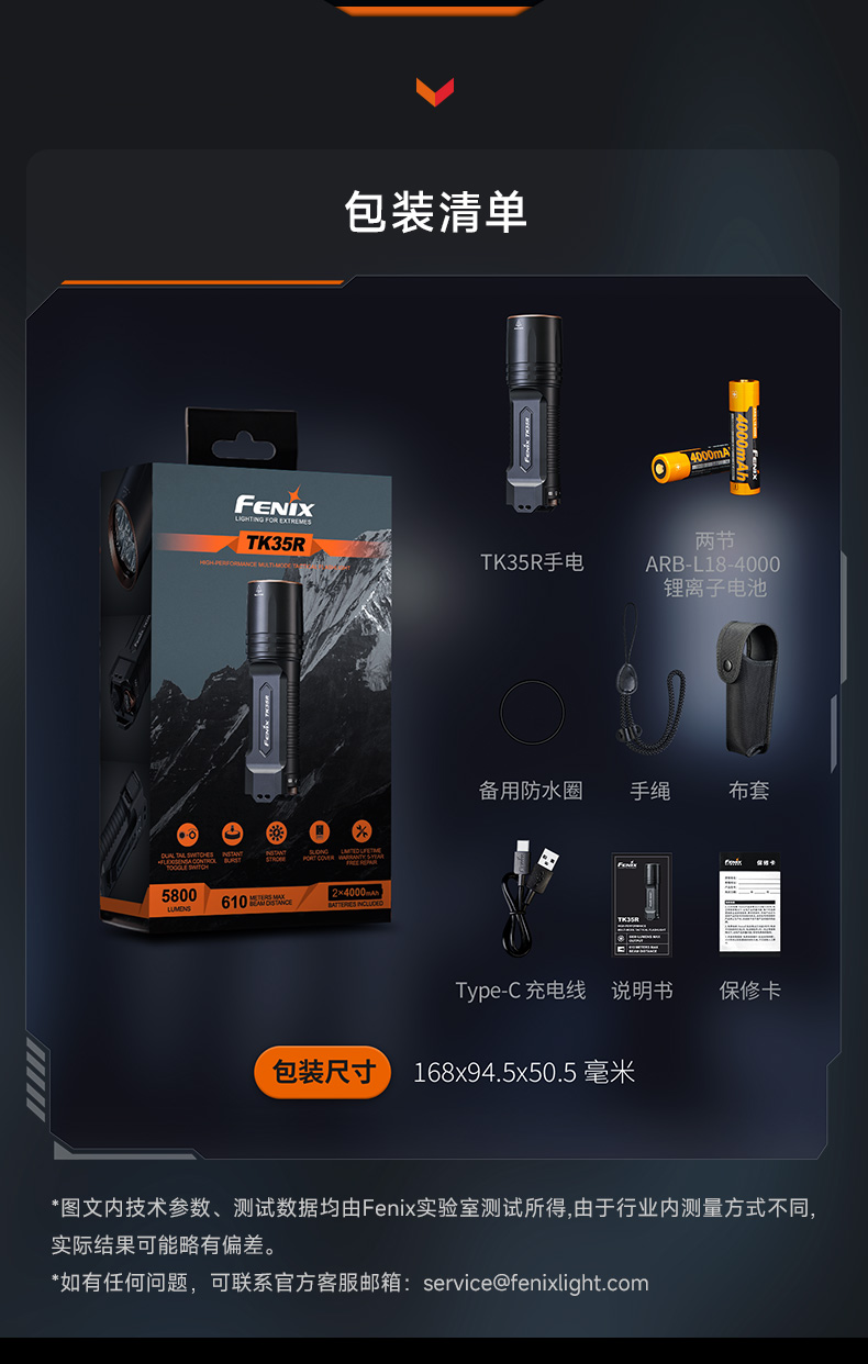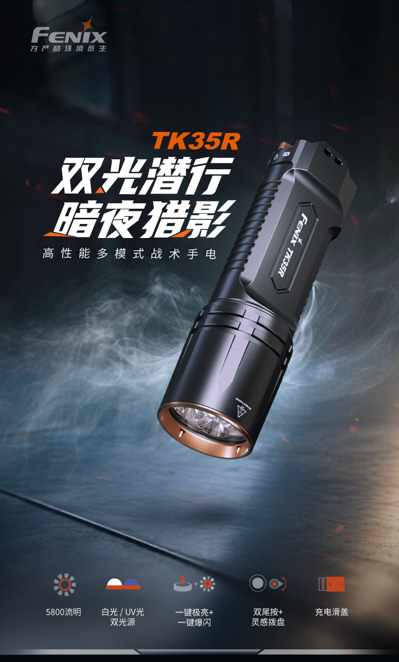 FENIX菲尼克斯TK35R 5800流明强光可鉴酒UV光户外多功能便携防水手电筒