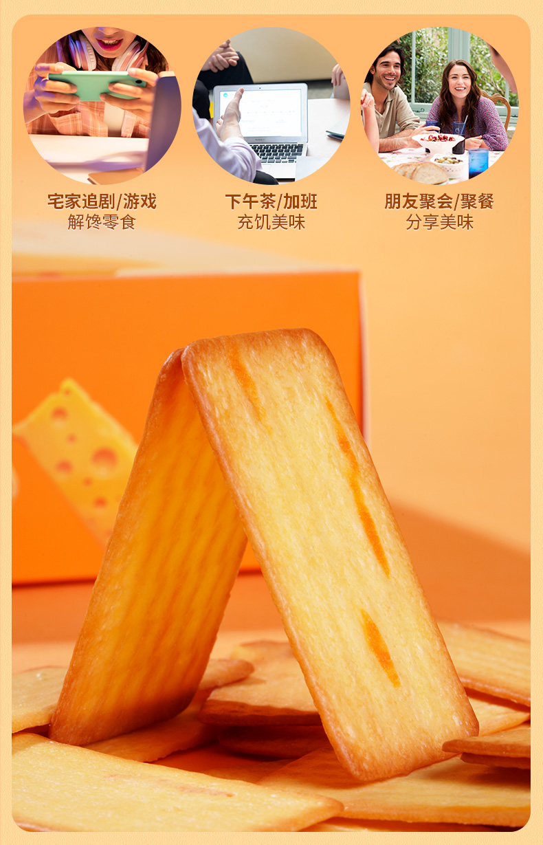广州酒家 黑金岩烧芝士薄脆饼干三盒装休闲零食下午茶嘴馋小吃美食