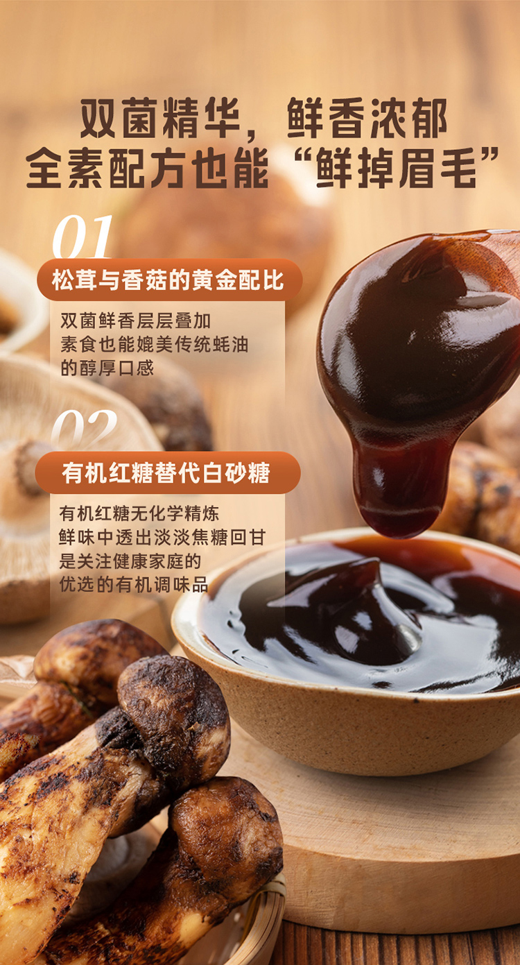 有机松茸素蚝油 鲜咸倍增 西藏高原有机松茸 0脂肪 纯酿造调味酱 火锅蘸酱 禾然有机调味 纯素食品 家庭厨房健康料理 有机认证20+年 助农帮扶 援藏公益