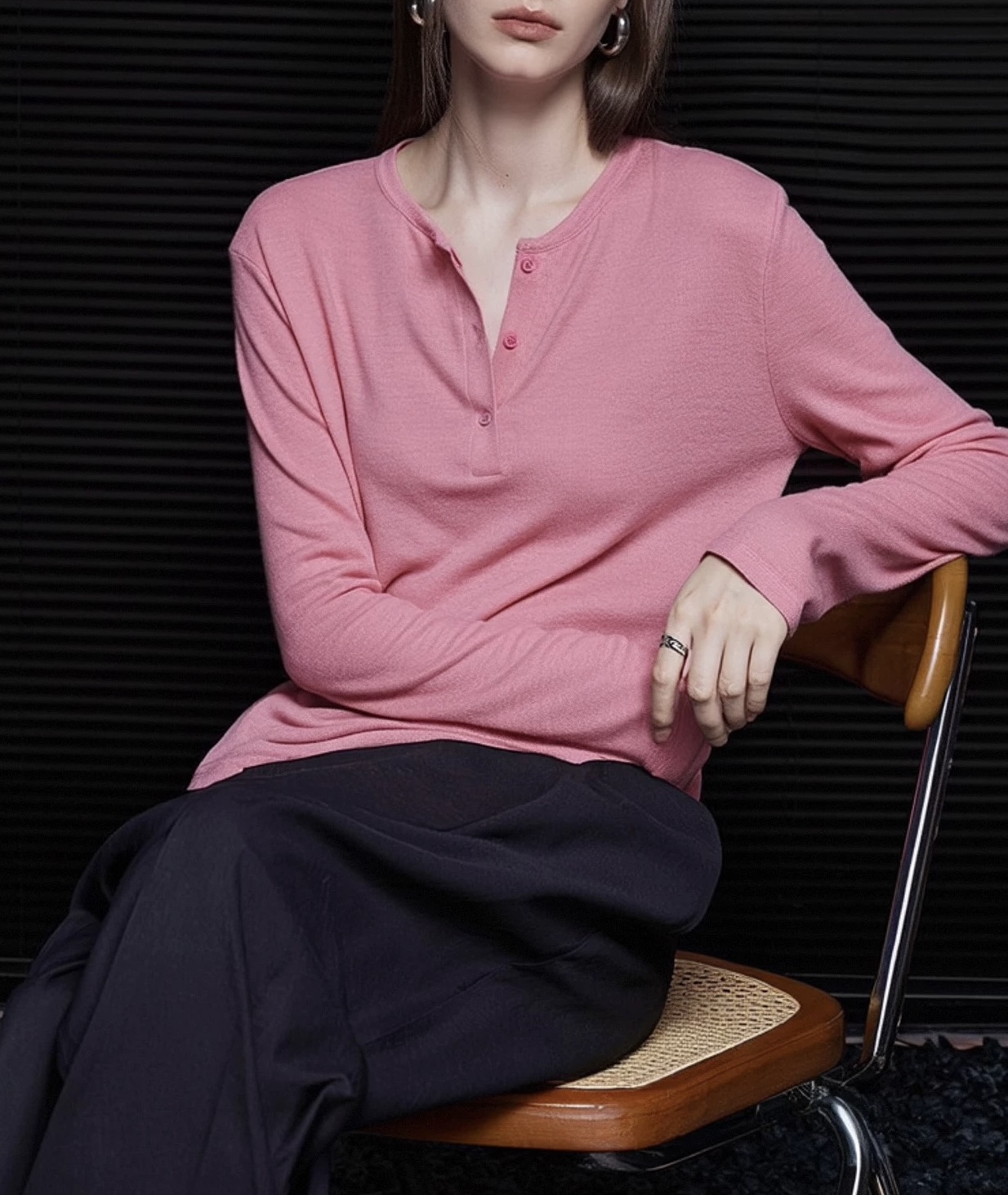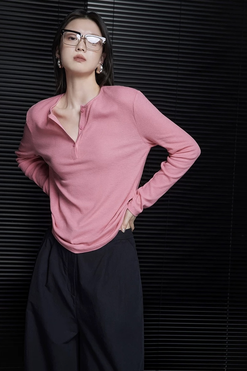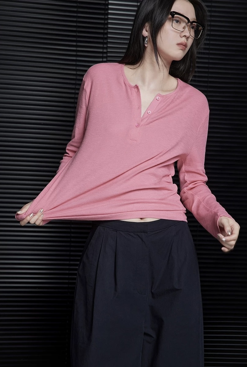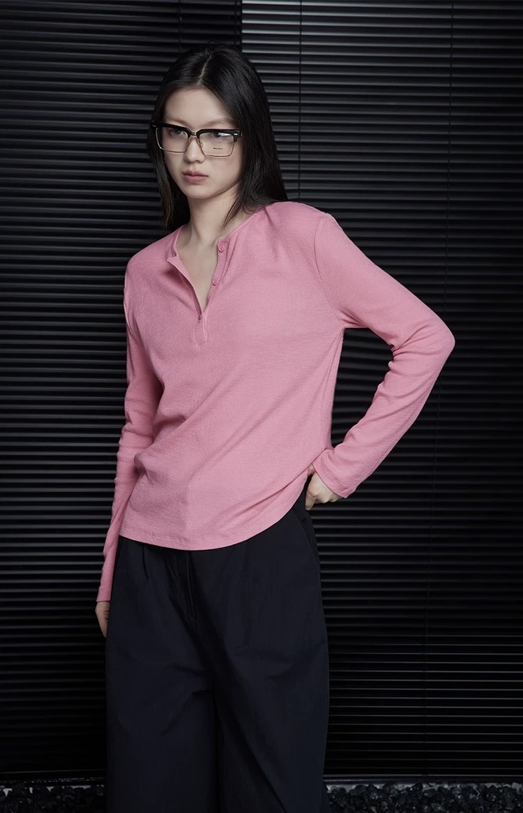 经典小圆领+半开襟设计,是早秋穿搭的小心机。