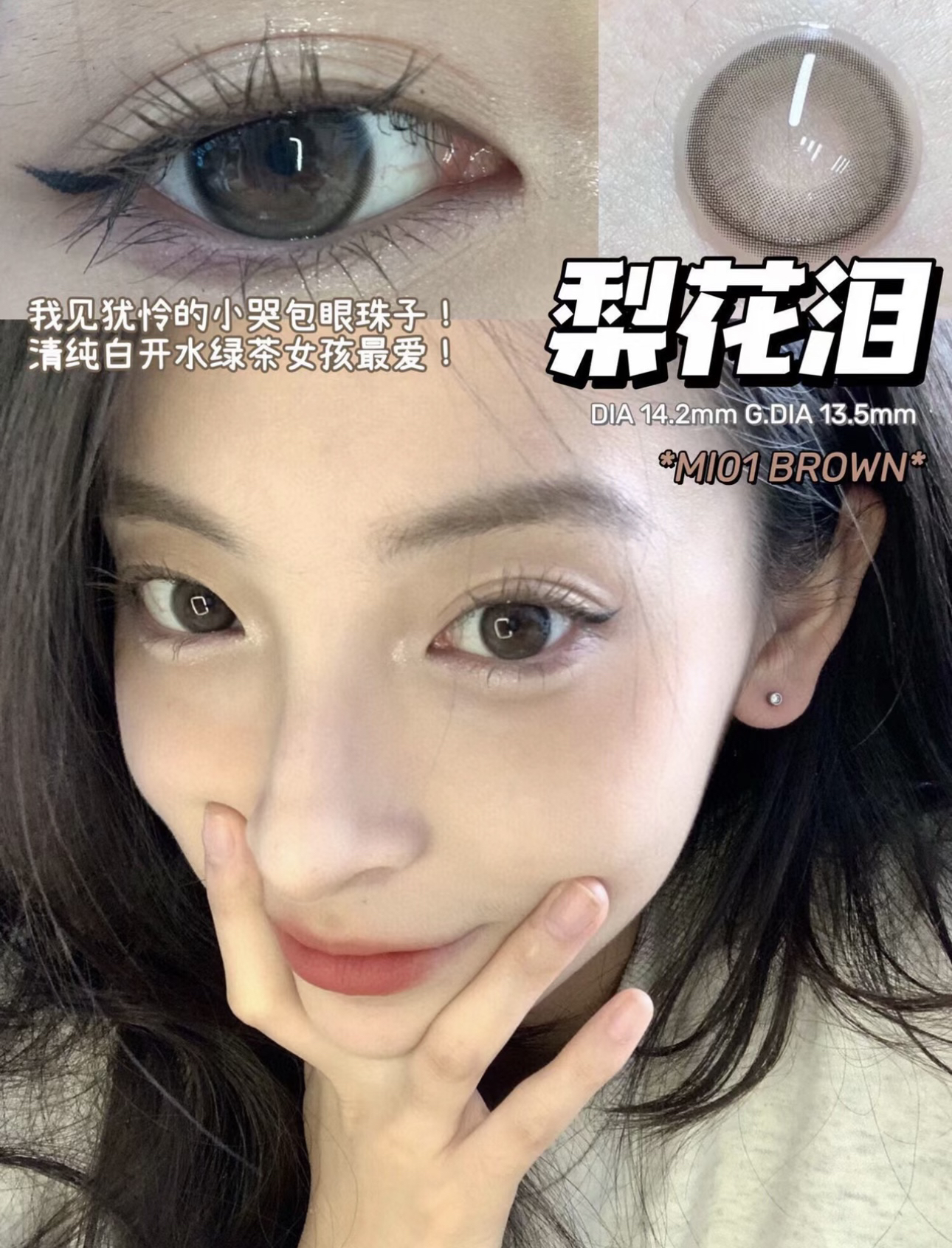 Mixlook·年抛 纯欲天菜【梨花泪】补货到!日系水光瞳 整一个水汪汪拿捏住;染色13.5mm/备注双眼度数
