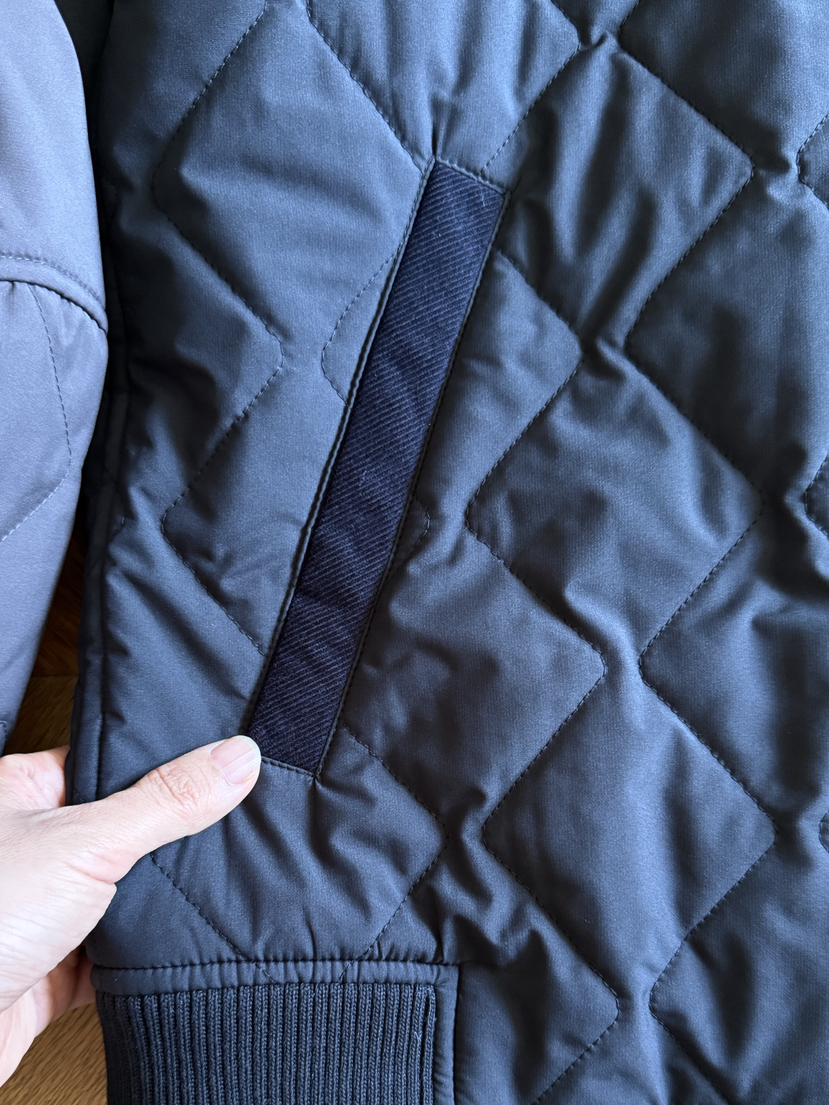 这款棉服采用立体菱格绗缝,它既能让保暖材料更均匀持久,又能塑造出利落的版型,告别传统棉服的臃肿。经典耐看,叠穿利器。灵感源于经典,革新在于细节,保留飞行员夹克标志性的左侧手臂上的笔袋,这是其功能性和辨识度的关键,撞色设计,打破单调,增加视觉焦点,提升时尚度和设计感。将灯芯绒的复古和现代的潮流面料撞击,并且两者在颜色上有明显的区别,下摆罗纹做在两侧,是一种极具功能性和造型感的设计选择。前后下摆没有任何束缚,可以让面料完全依靠自身的重量自然垂坠, 棒球罗纹领自带一种青春、活力、休闲的基因,更有卓越的防风保暖性,它不仅是御寒的衣物,更是您游刃于商务与休闲之间的风度之选,舒适百搭