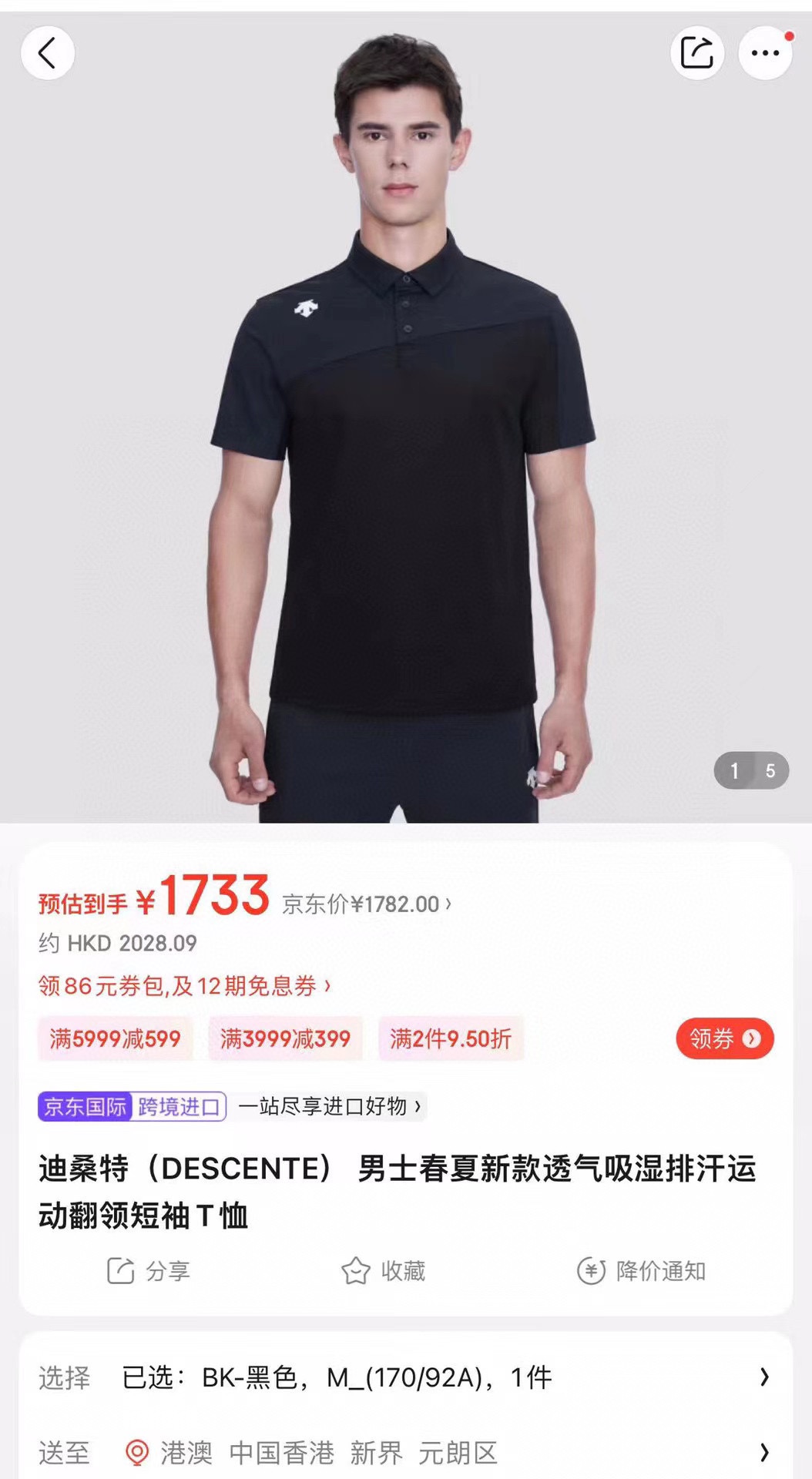 118 货号095783118 daxu DESCENTE迪桑特 男士夏季新款透气吸汗拼色短袖翻领POLO衫