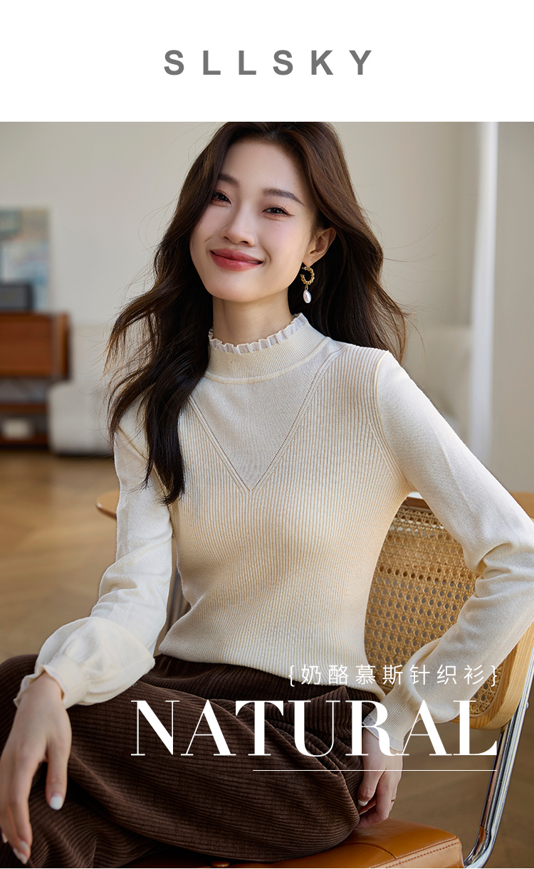 【双𝟭𝟭特卖】熙世界优雅淑女羊毛针织衫女半高领打底针织毛衫