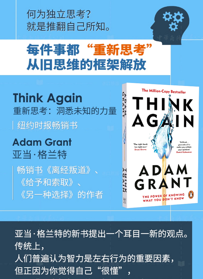 【中商原版】重新思考 洞悉未知的力量 Think Again 英文原版 Adam Grant 亚当 格兰特 沃顿商学院教授