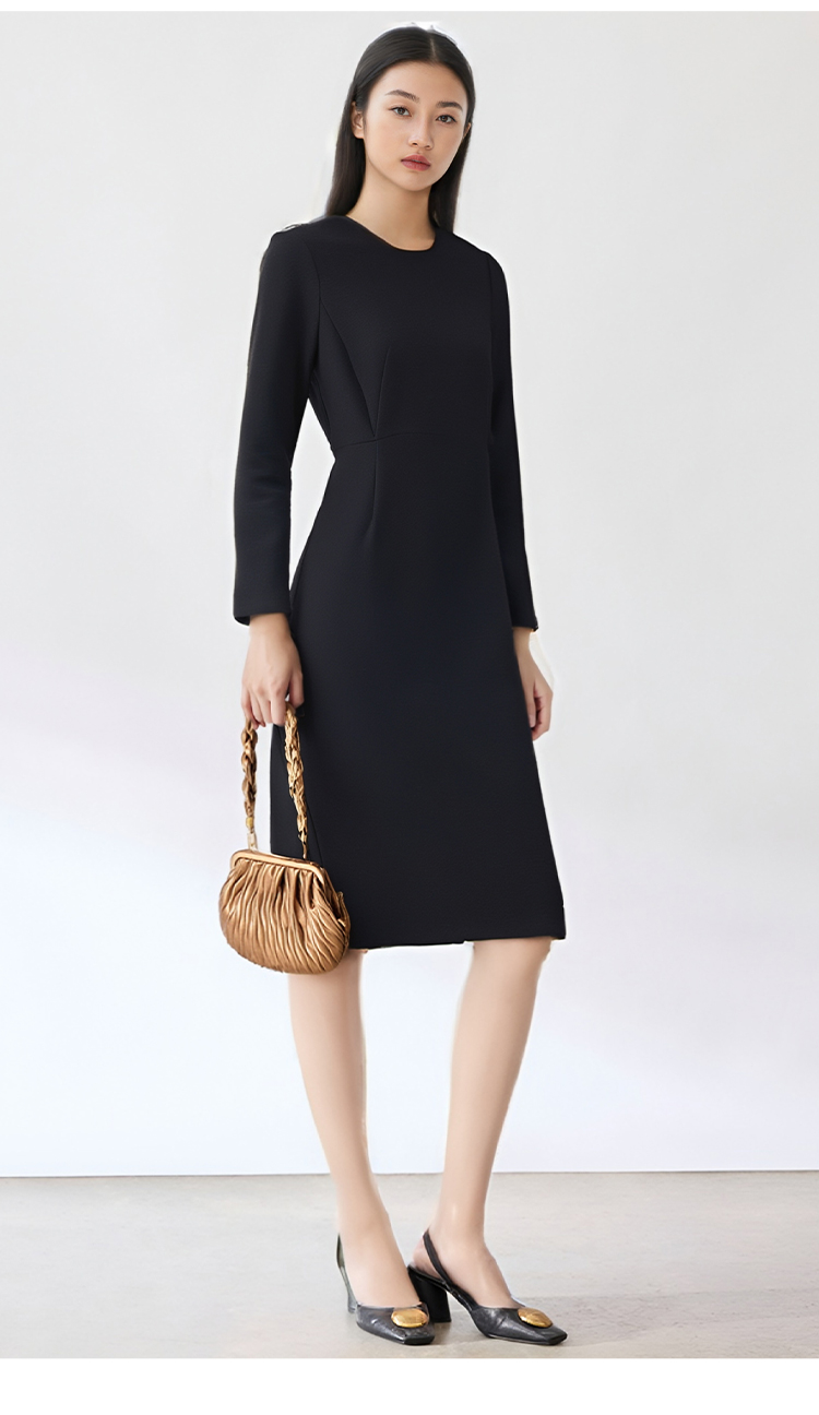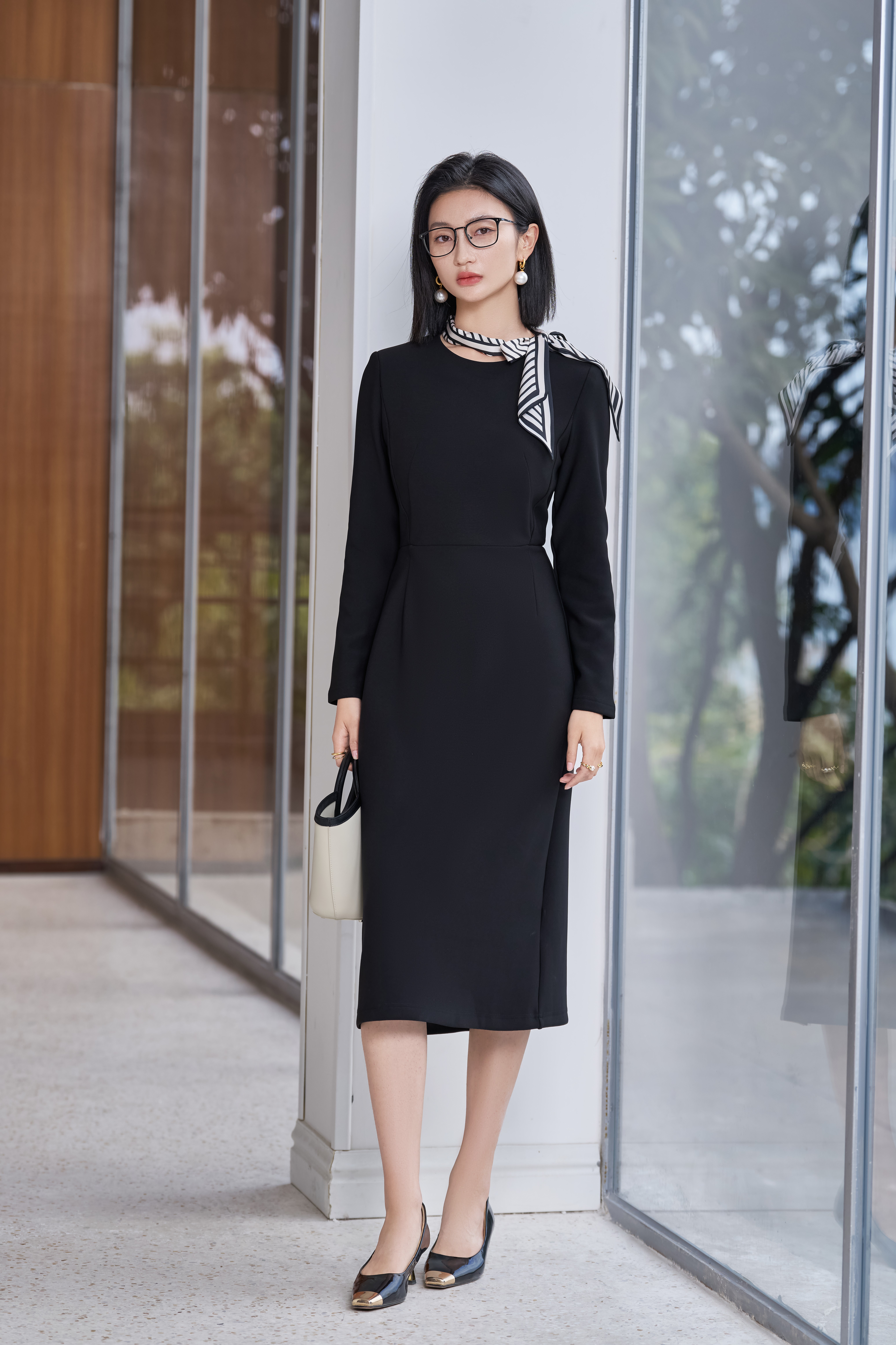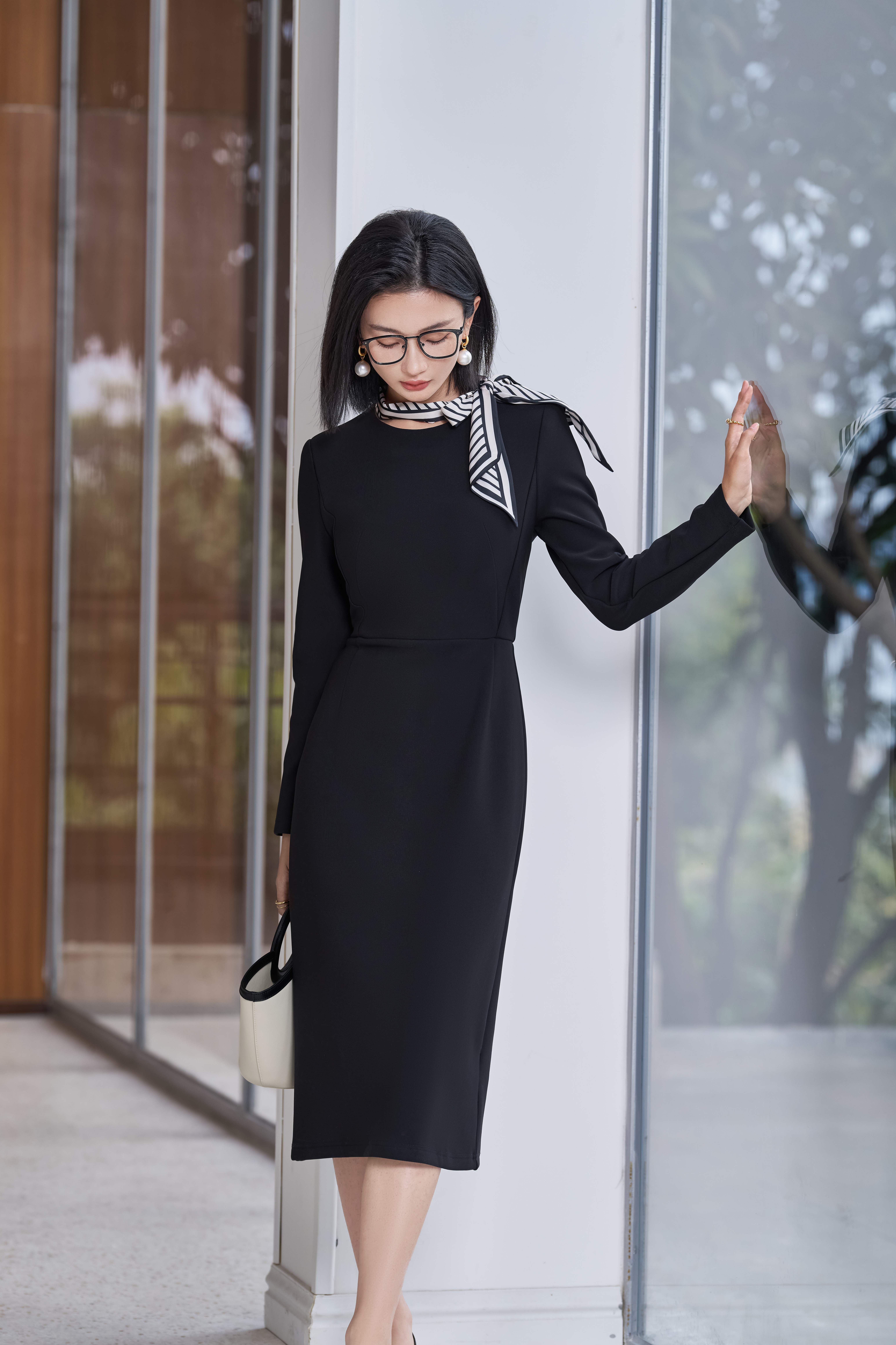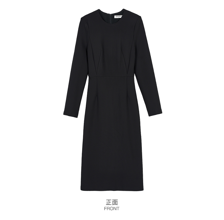 米思阳2025冬季 内里亲肤一体绒 小黑裙通勤优雅气质修身显瘦连衣裙女4957/5159