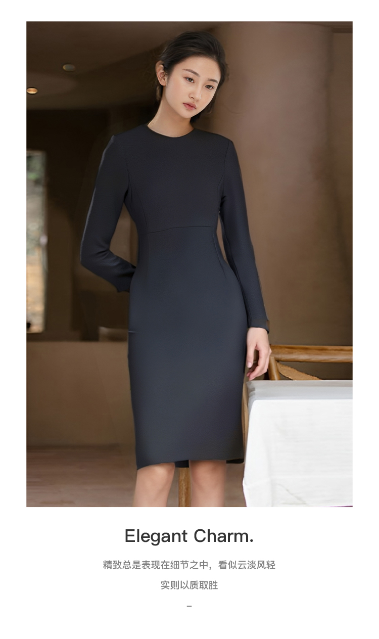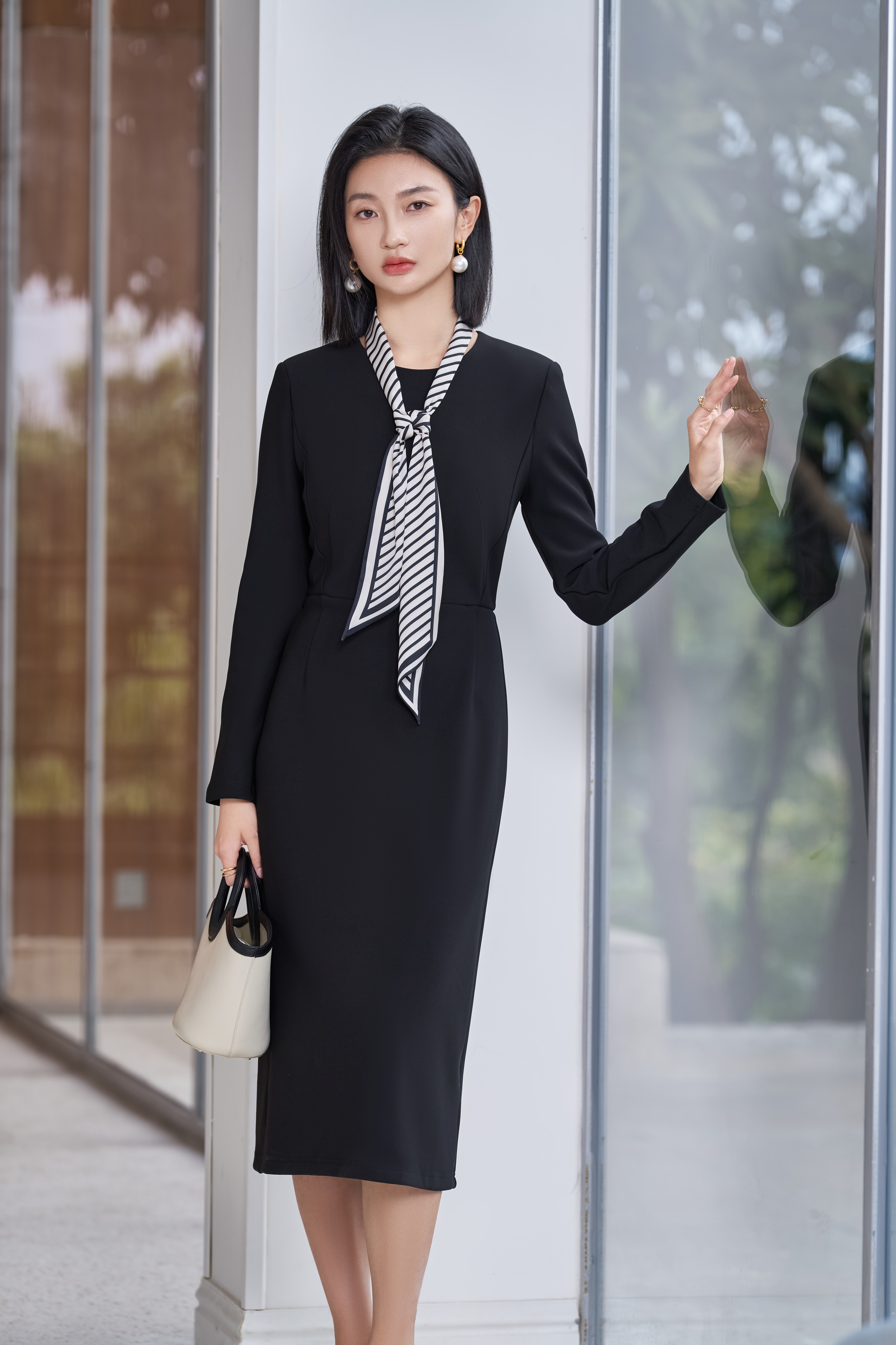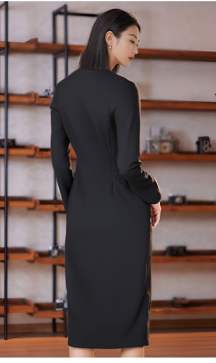 米思阳2025冬季 内里亲肤一体绒 小黑裙通勤优雅气质修身显瘦连衣裙女4957/5159