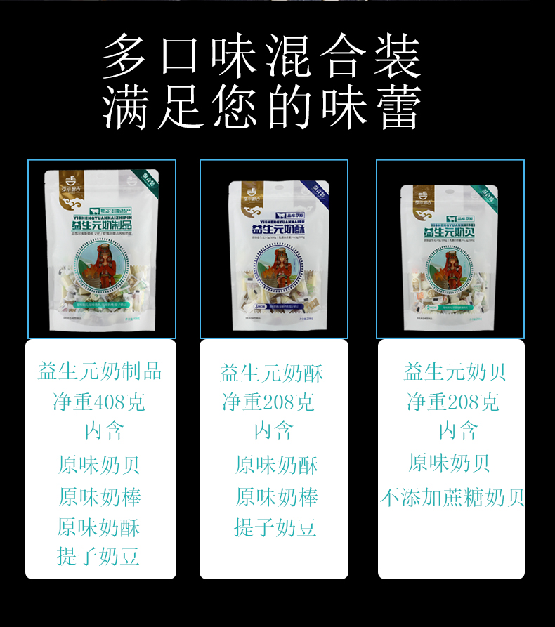 【鄂尔德吉】益生元208g混装蒙古奶酥、208g混装奶片