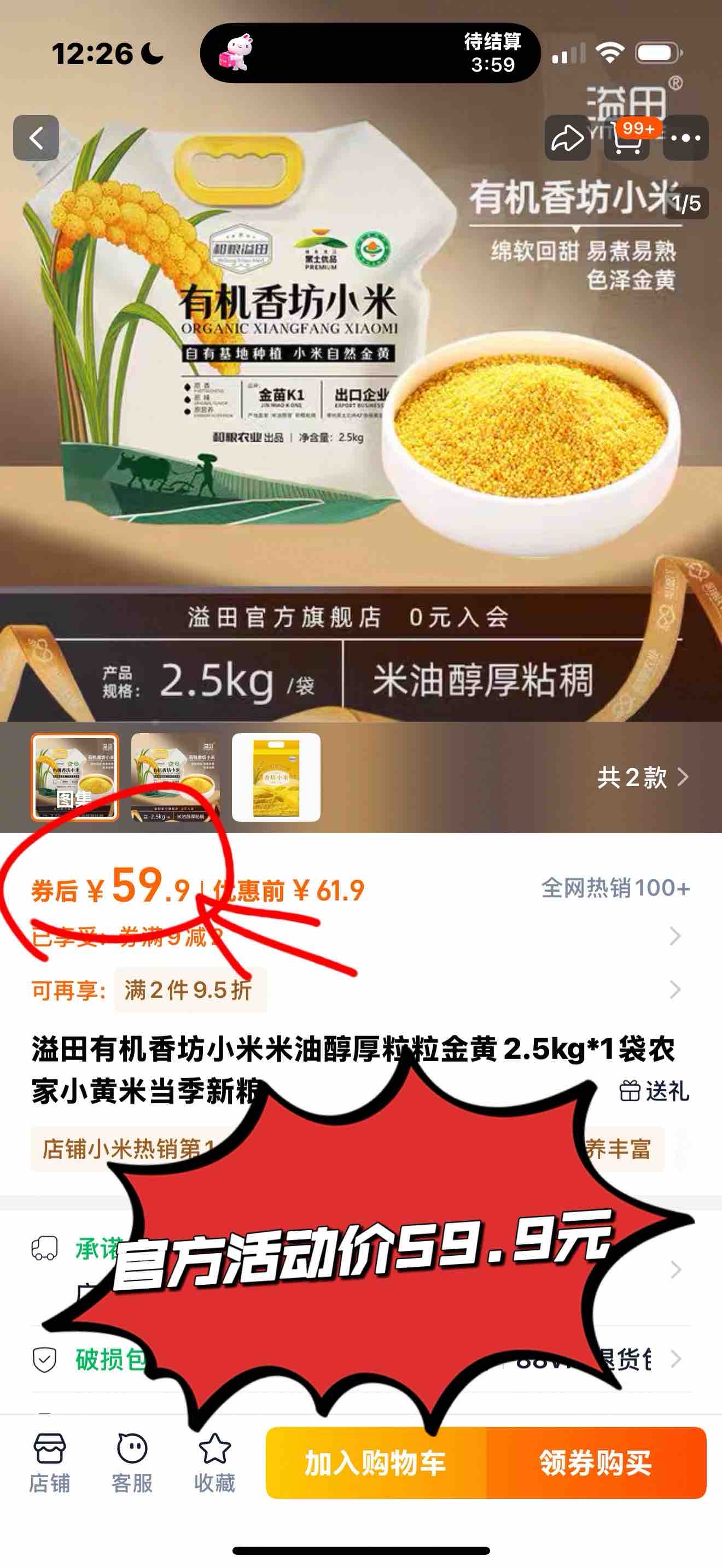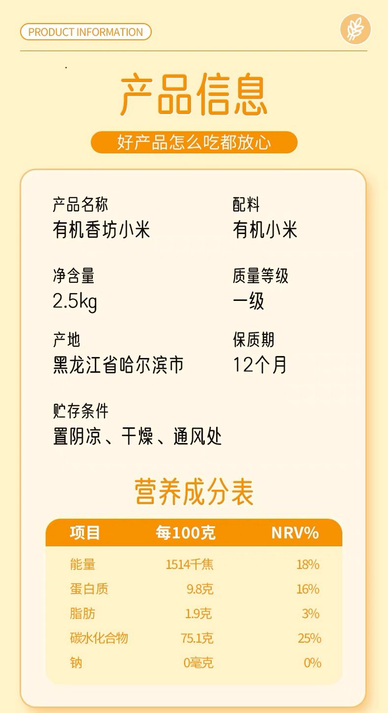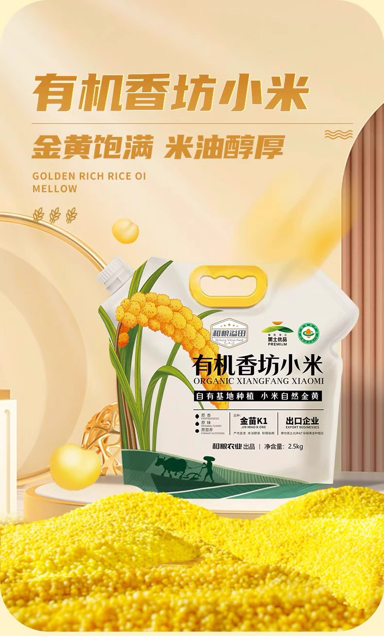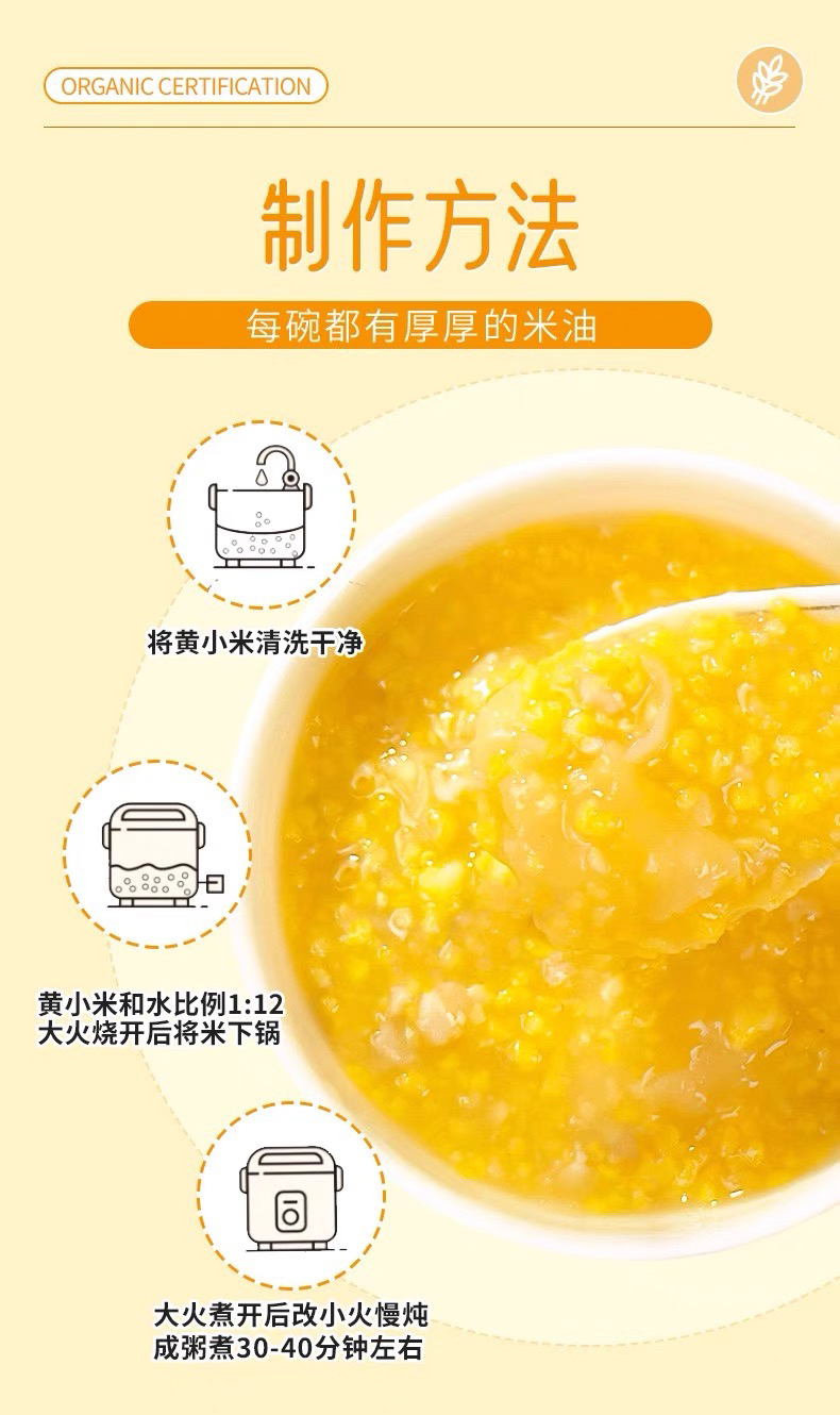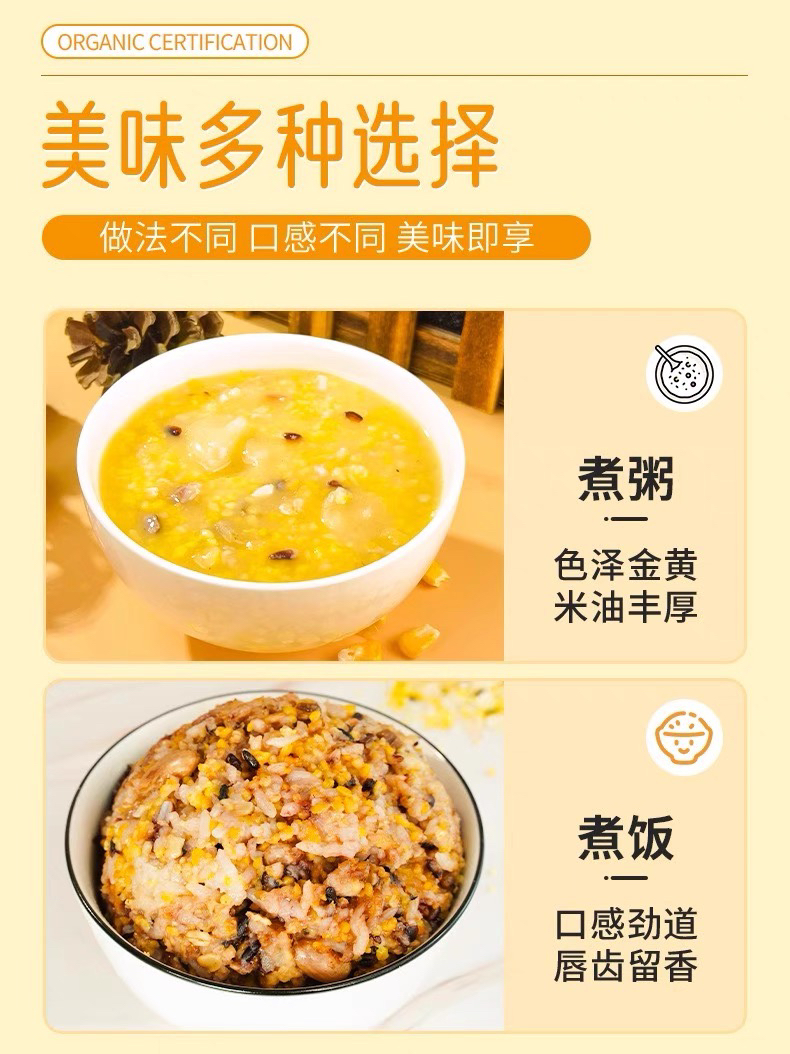 《老友专享:立减20》来自东北黑土地的有机黄小米5斤,有机认证米香浓郁,米油丰富,有粘性煮粥做饭的理想小米