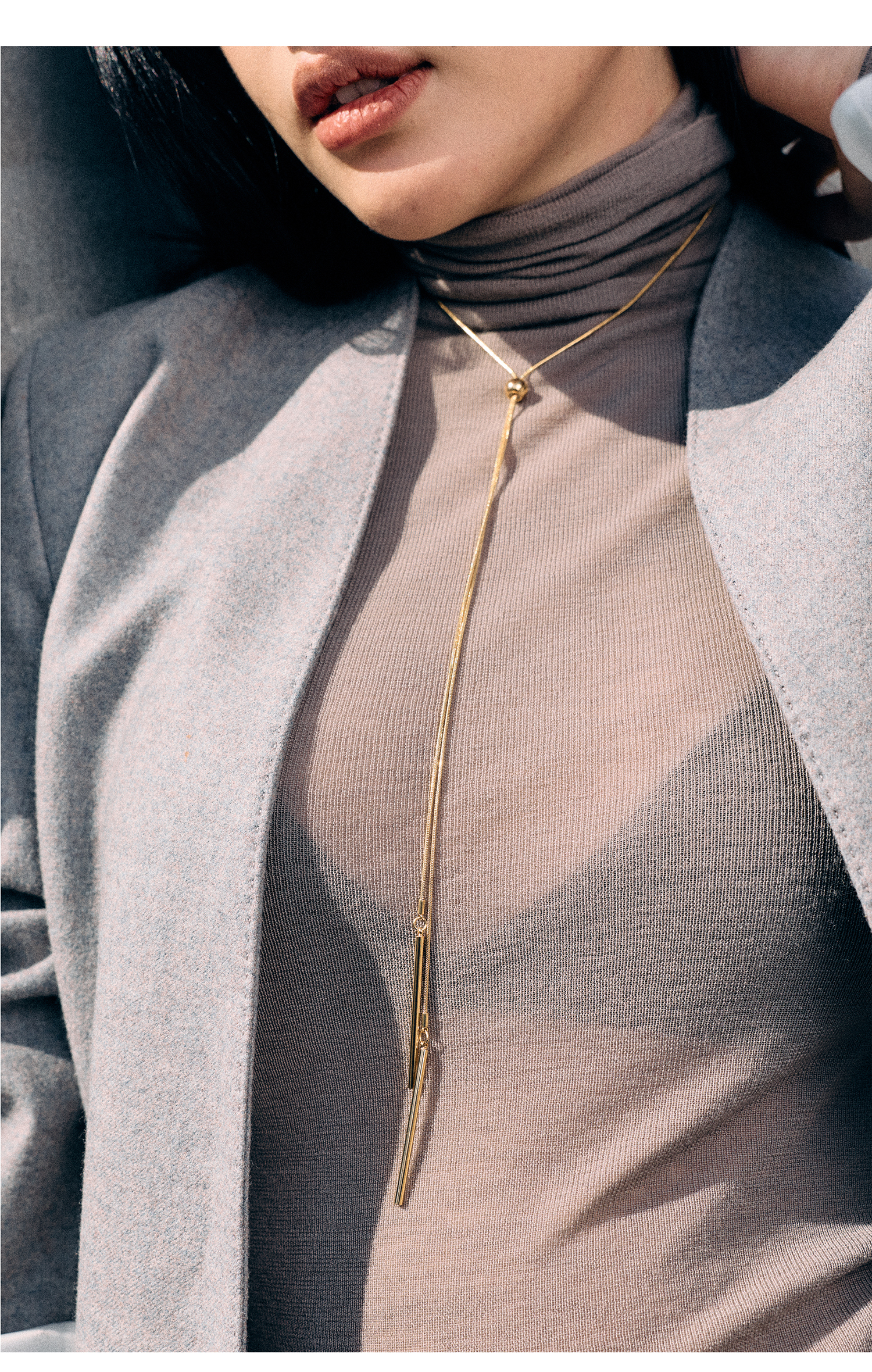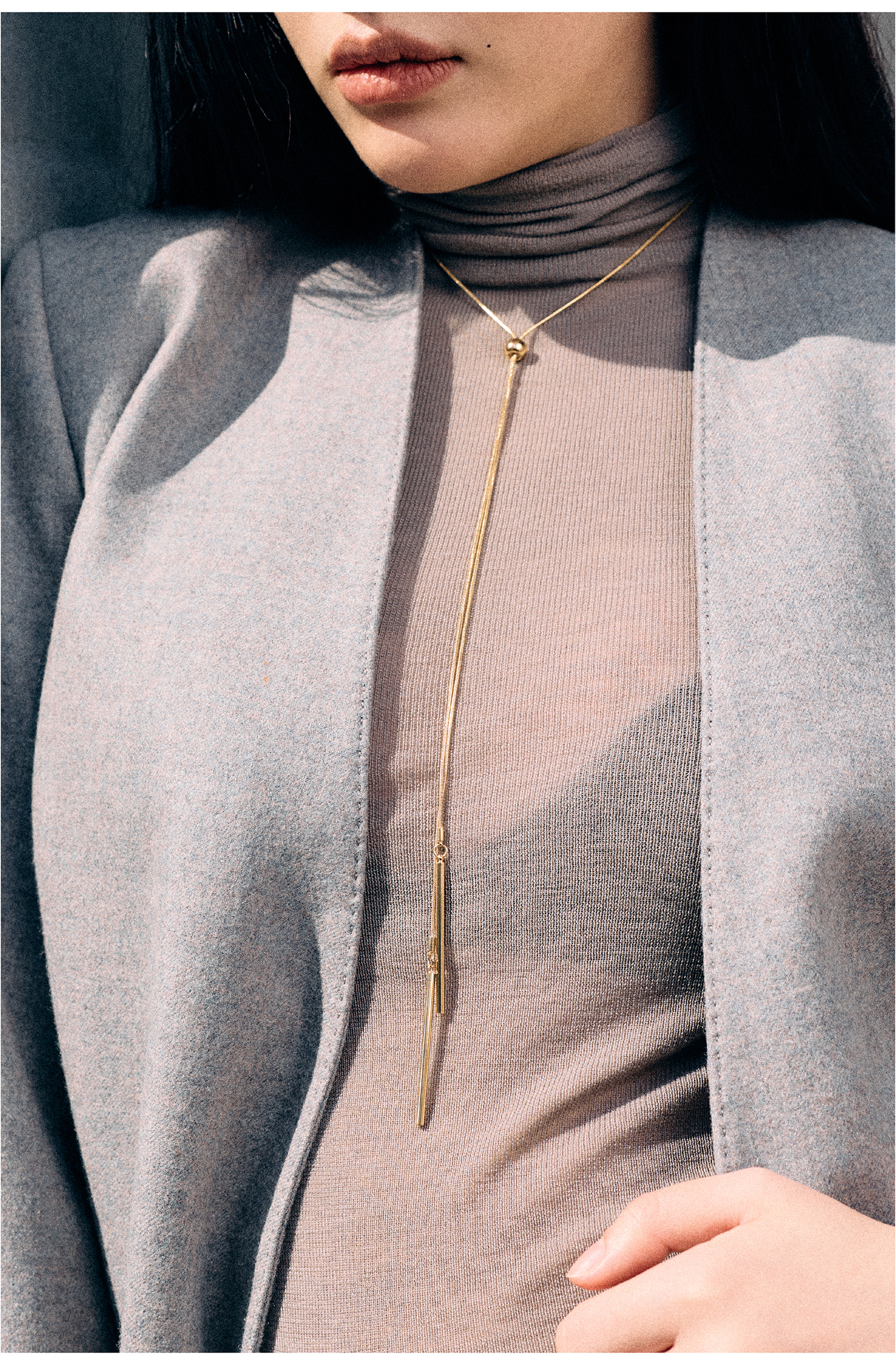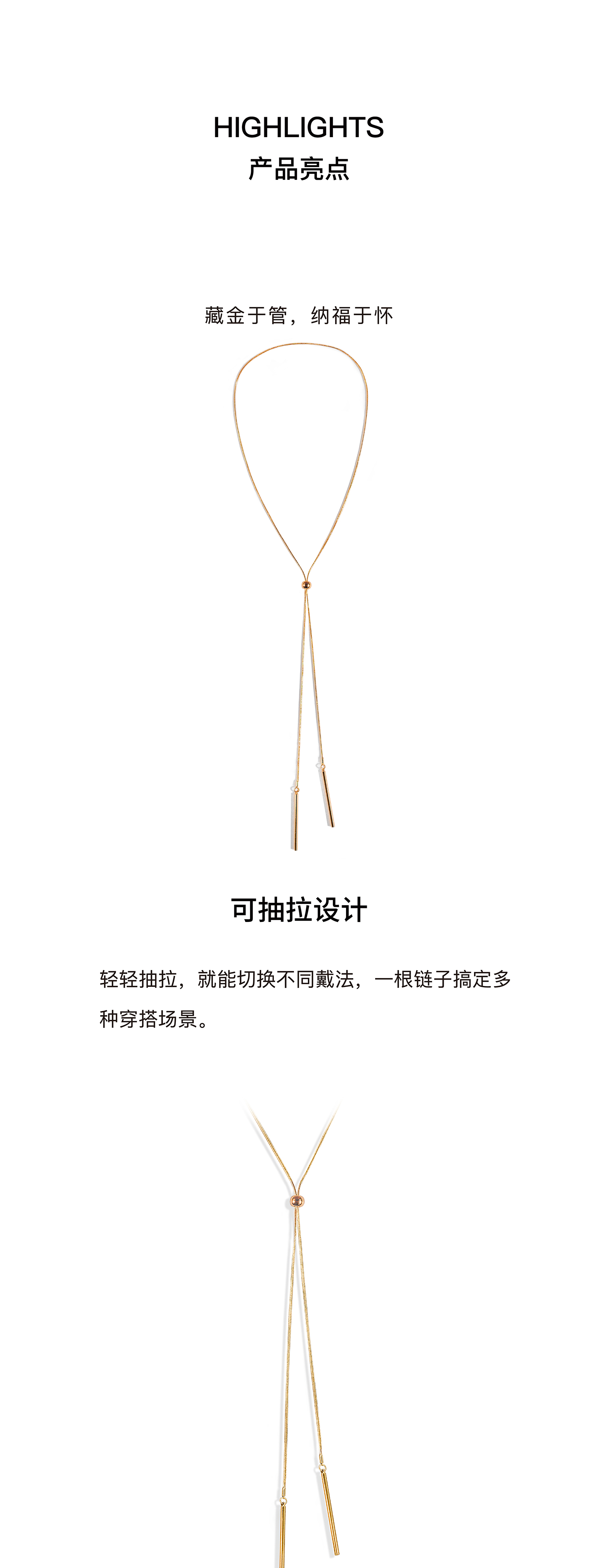 【新年礼物】alodia.co 品牌直发 循序极简金色圆管抽拉毛衣链多戴项链 高级感长期主义百搭