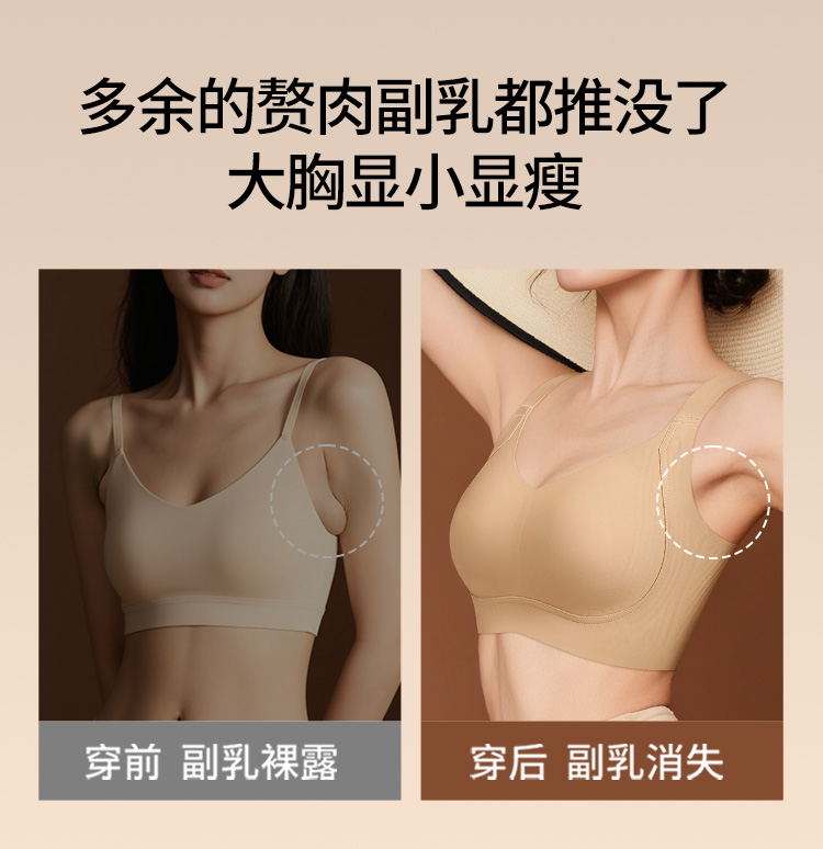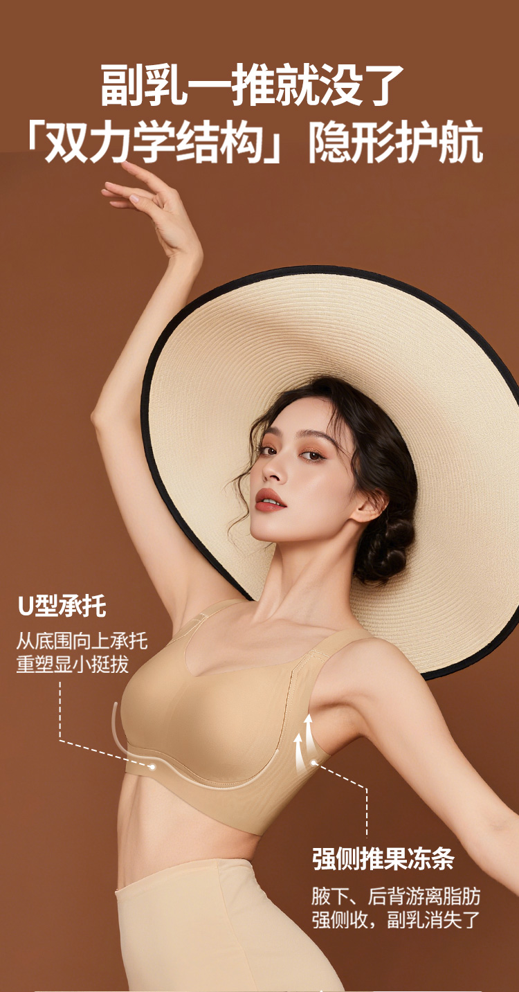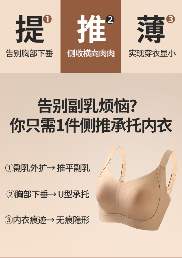 D1-【B-E】润微无痕提拉内衣大胸显小显瘦防下垂收副乳内衣【75-95底围】 星月青颜