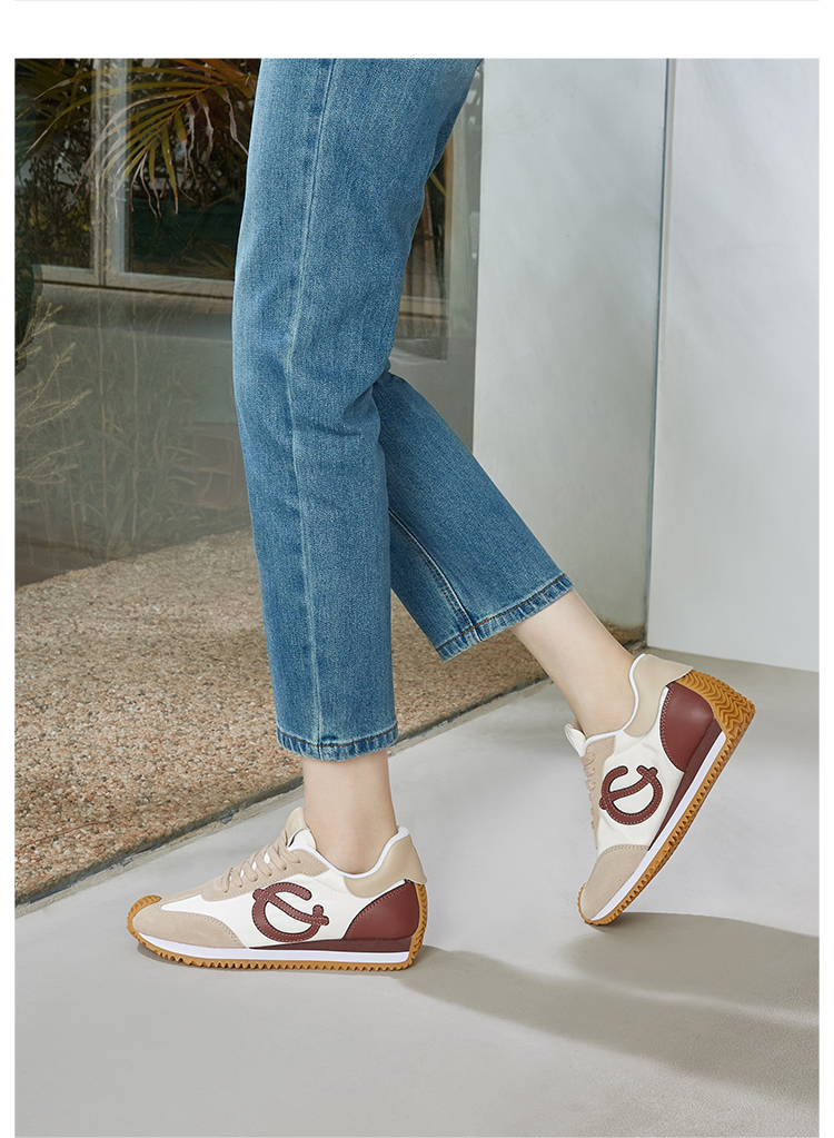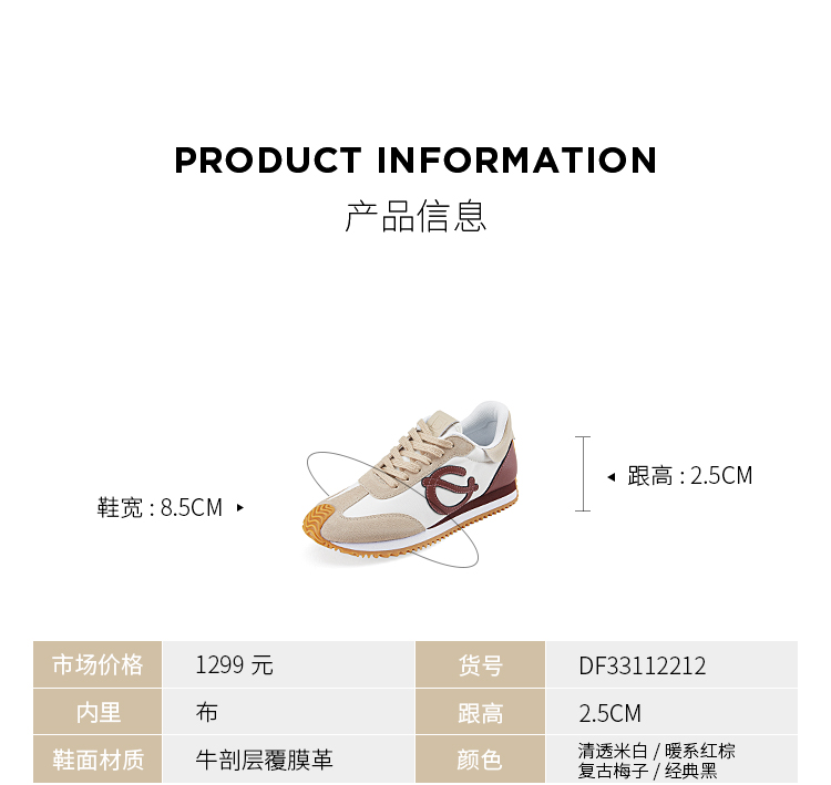 Dfuse迪芙斯秋季新款牛皮圆头休闲系带平底运动鞋DF33112212