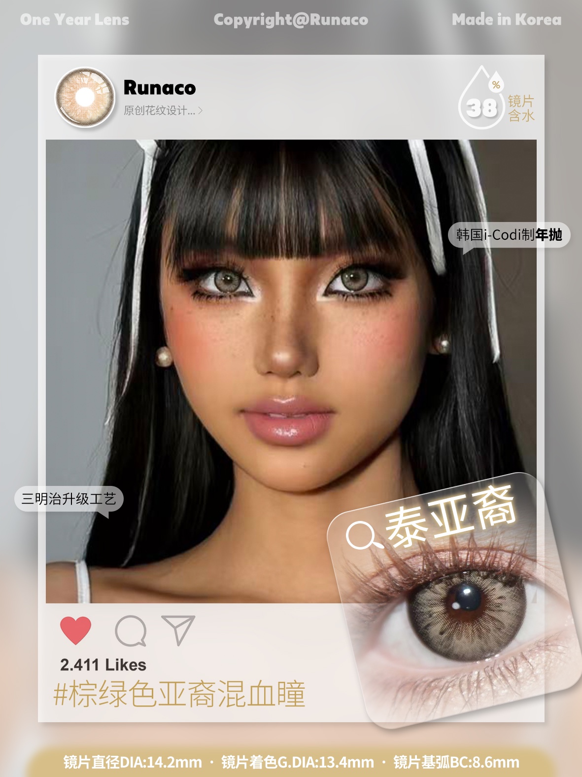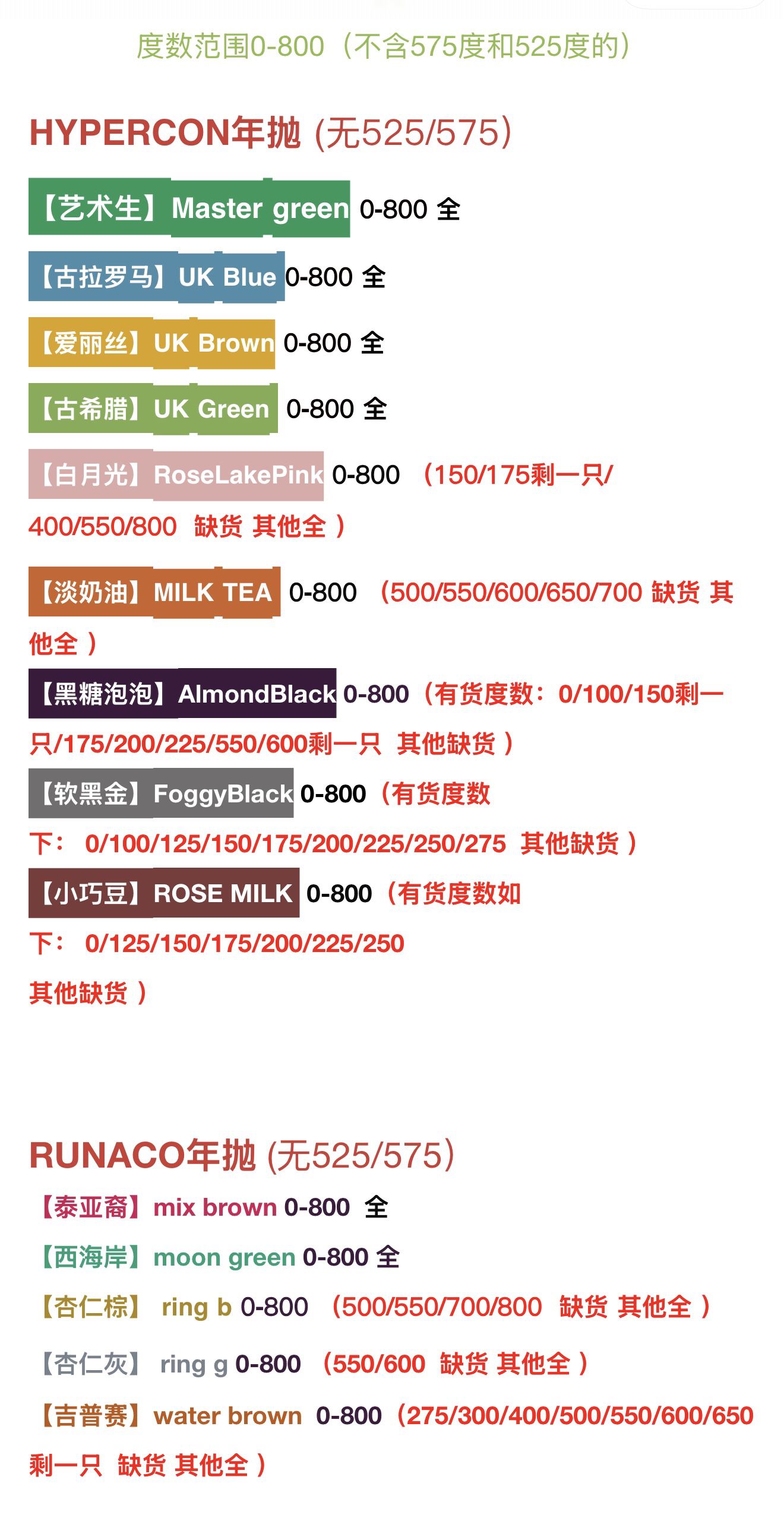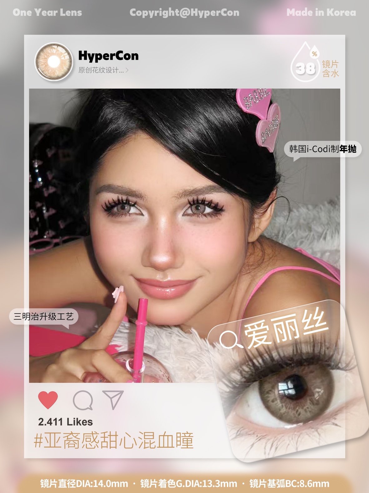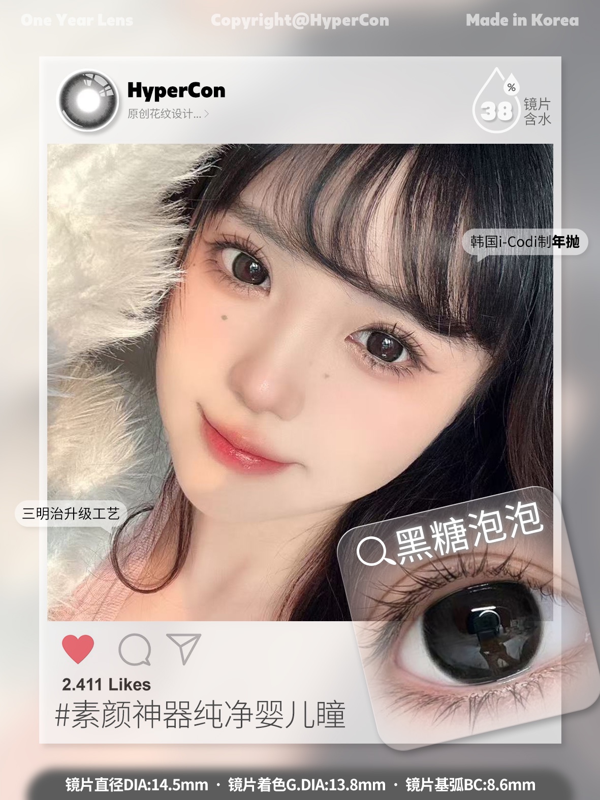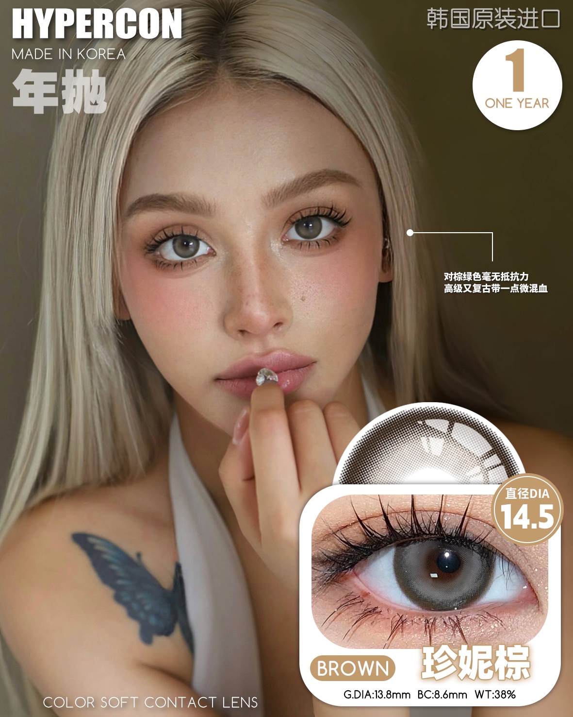 hypercon model/黑糖/xilii/bling棕/灰/绿小圆环/灰蓝硅水凝胶年抛美瞳