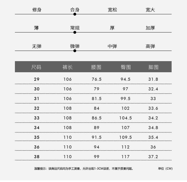3、规格、尺码等;